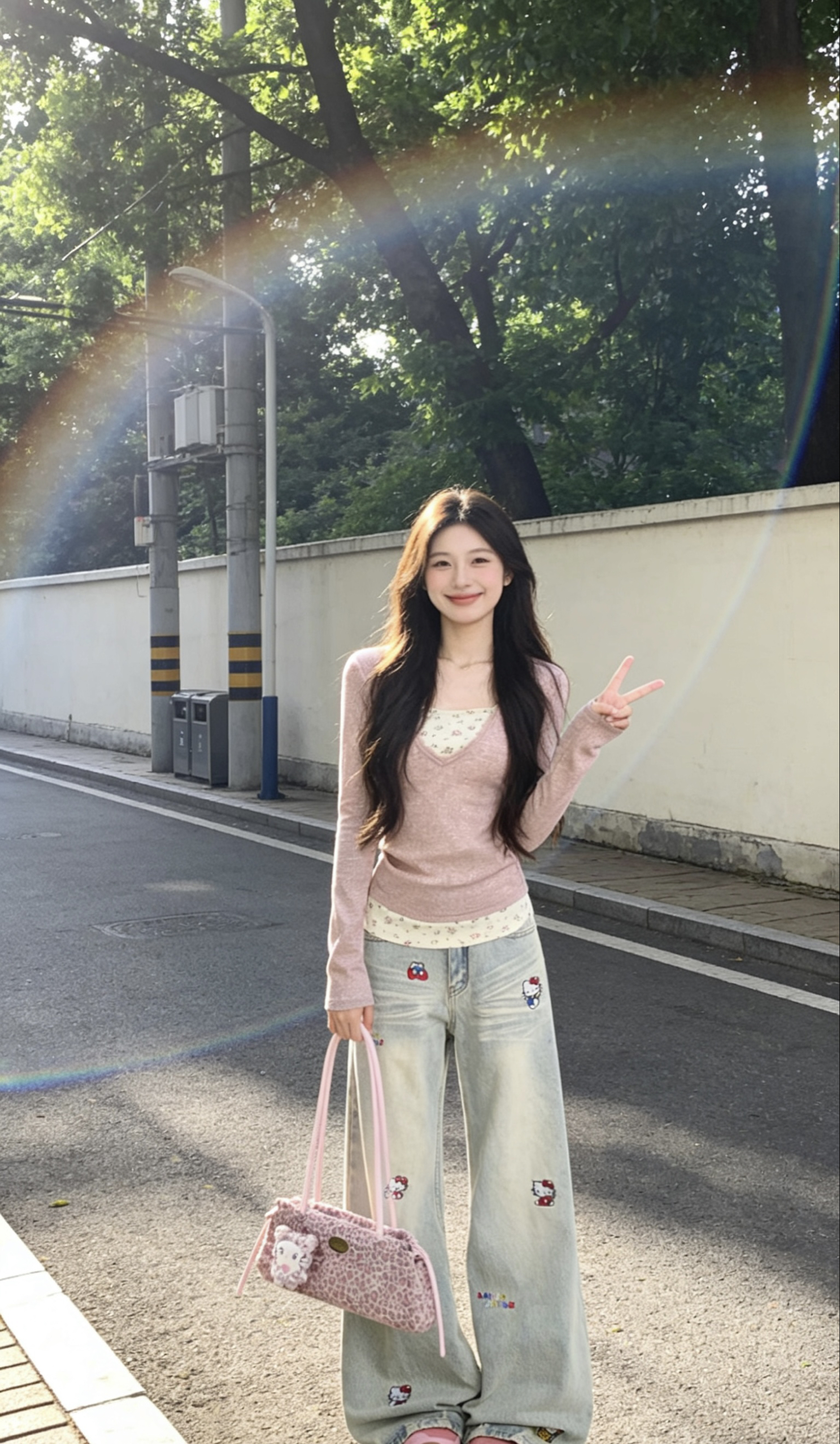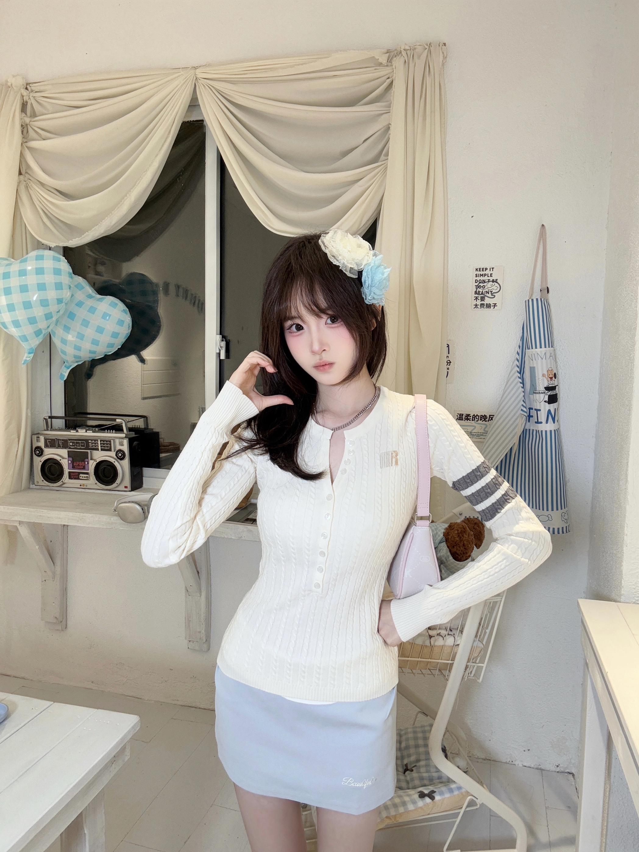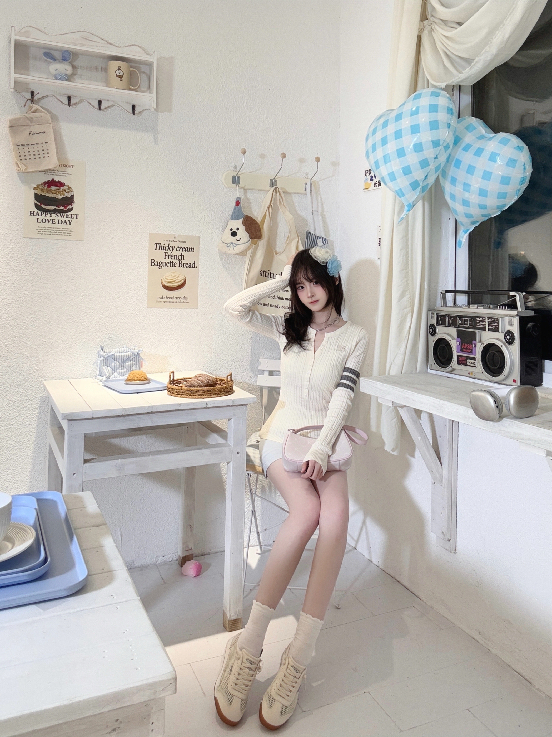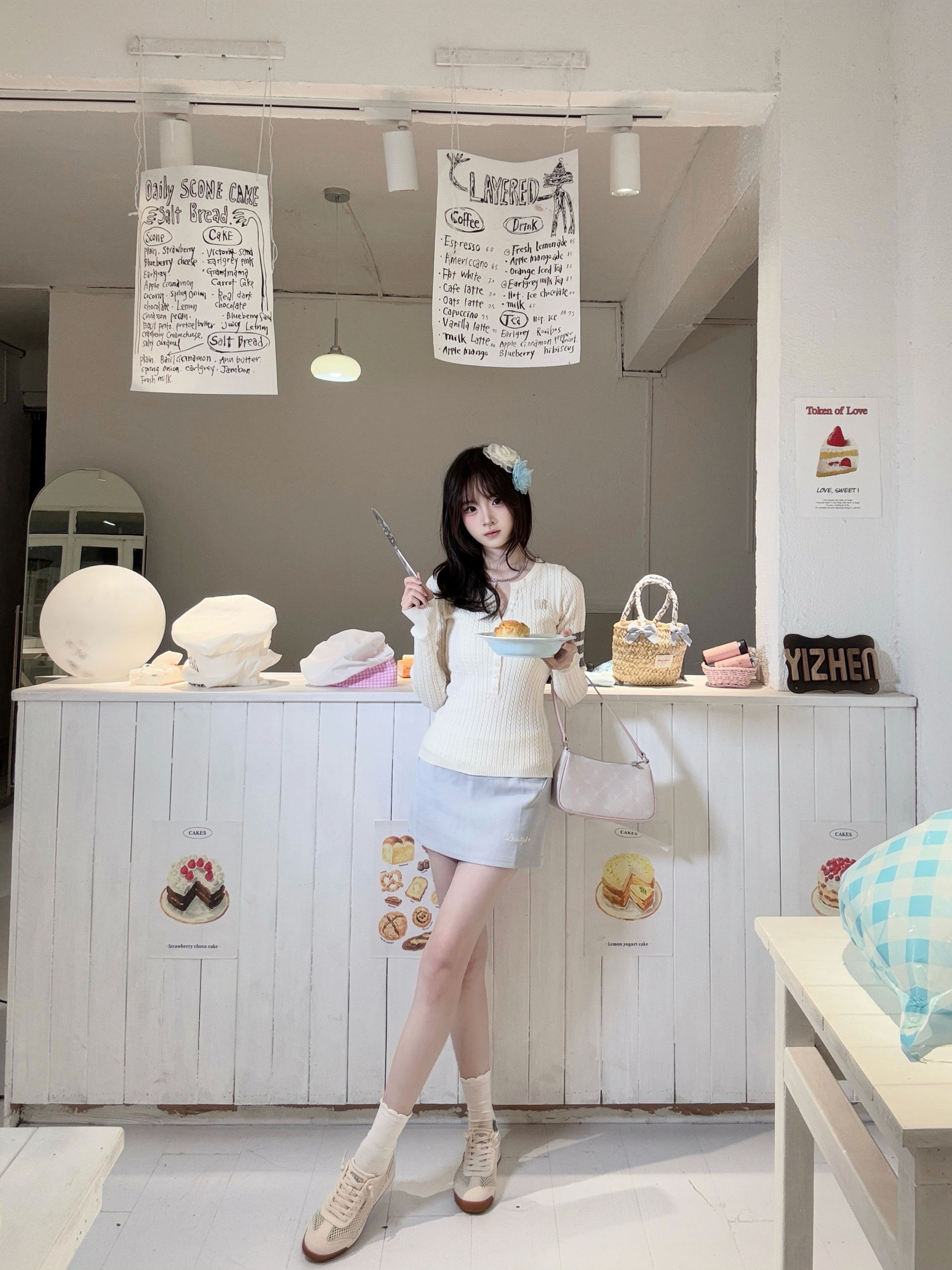 这套奶白+浅蓝🧊的搭配太戳少女心🎀了! 麻花针织衫👚软糯亲肤☁️ V领+侧边条纹🎗️显瘦又带点运动感🏂 浅蓝半裙🩵清新减龄🫧 整体温柔又干净💦 搭小白鞋👟和粉包👛 逛面包🥯店、citywalk都舒服🍃 是春日🌸出门不用动脑的懒人穿搭~