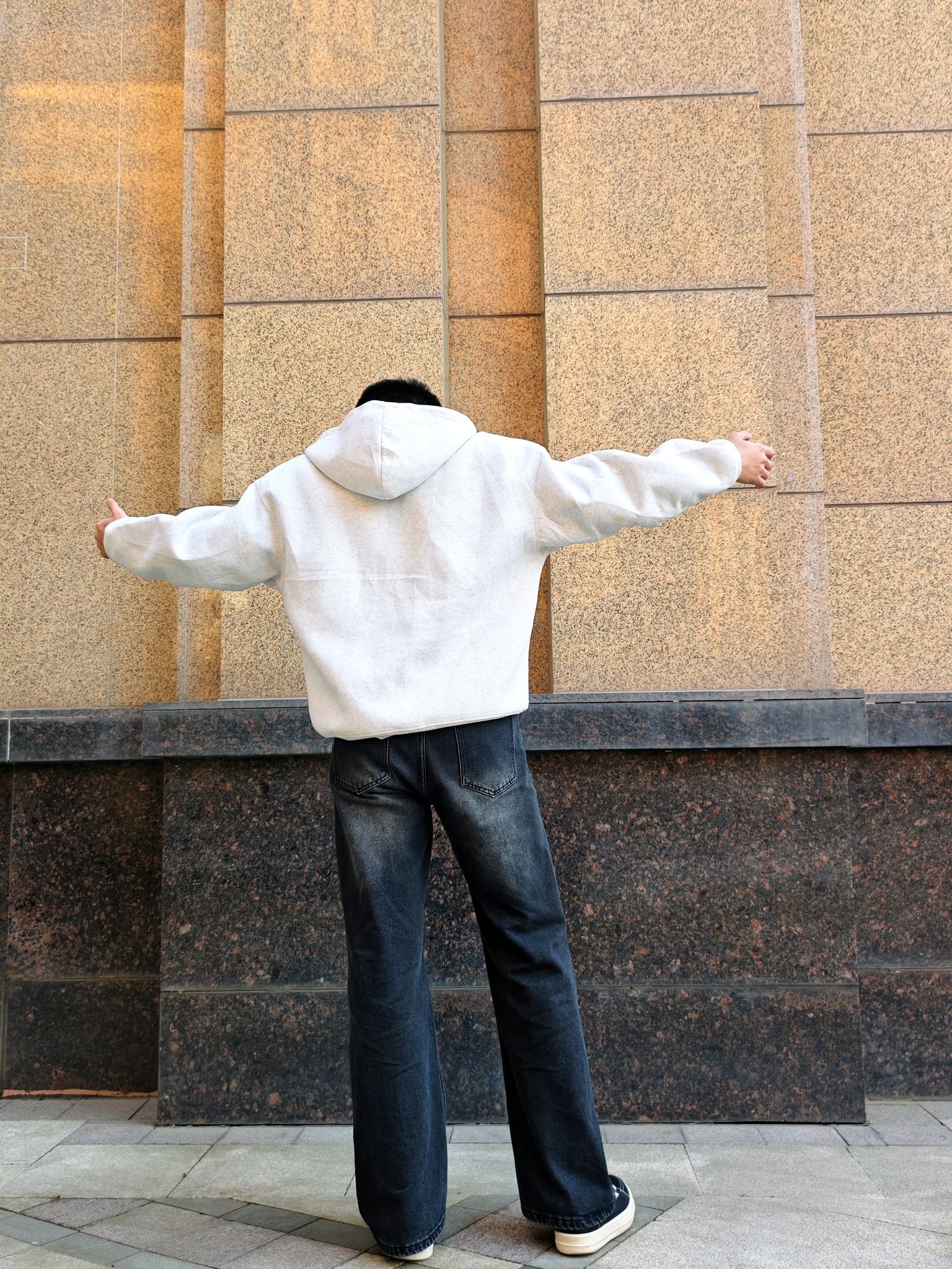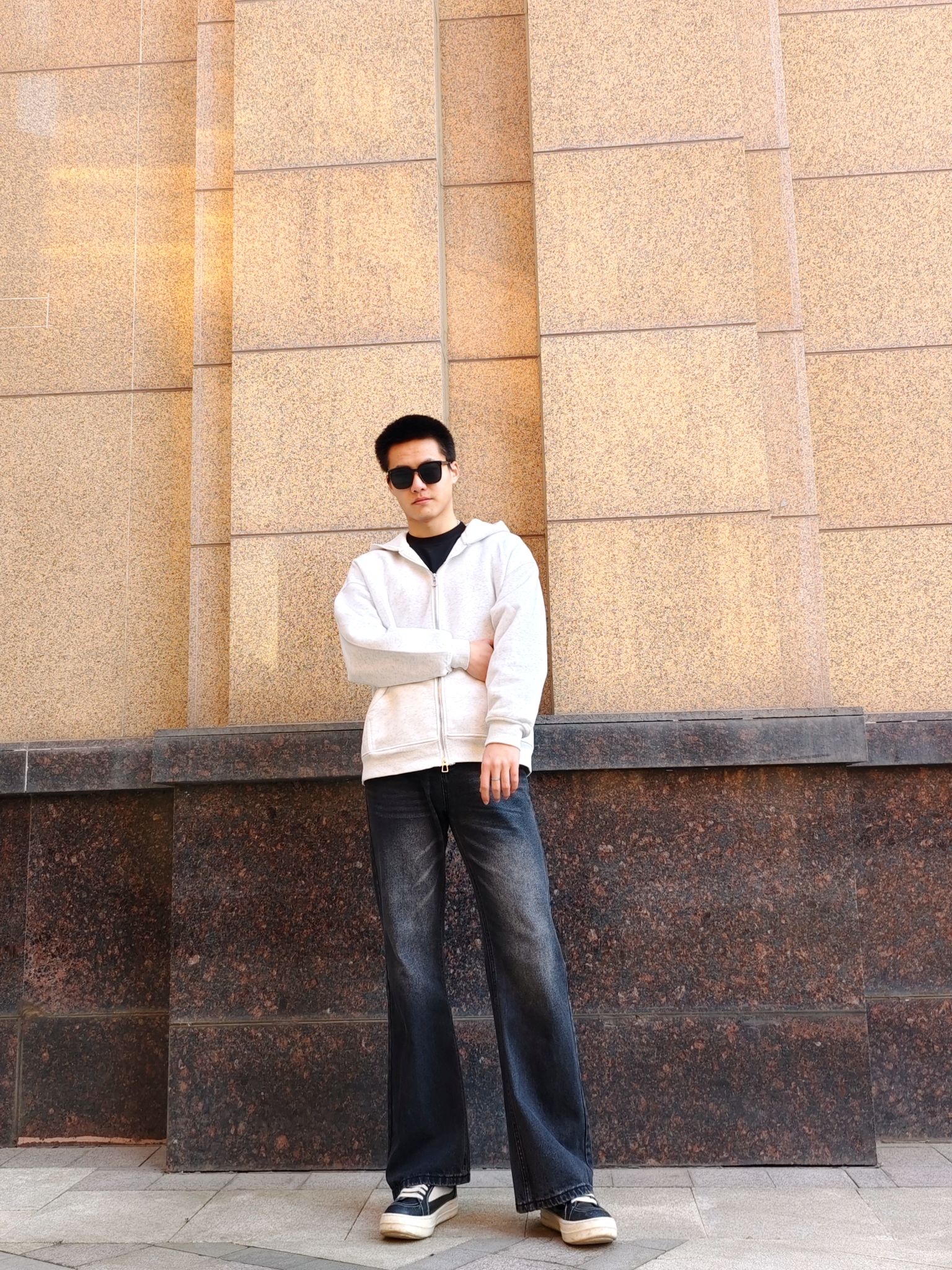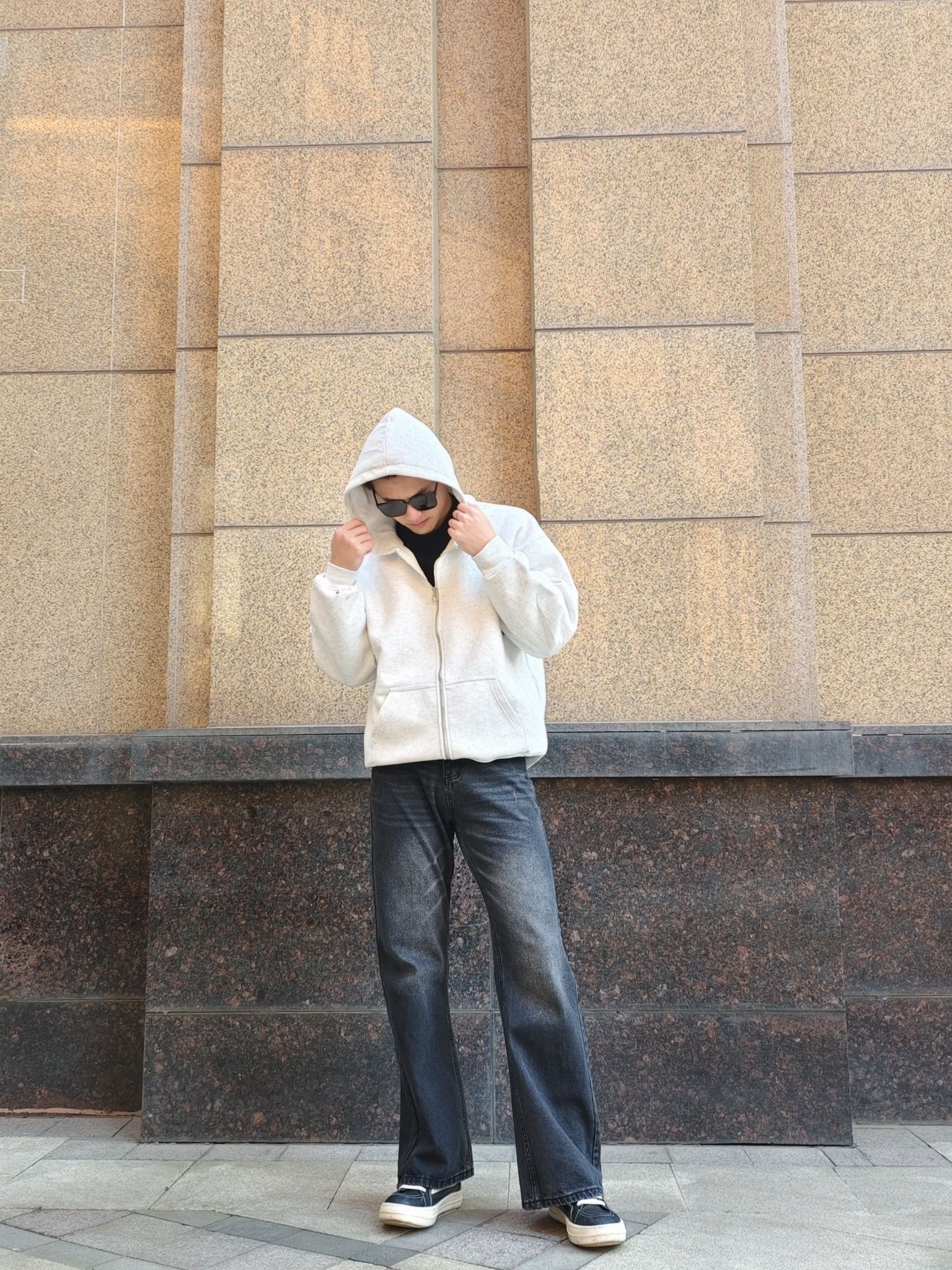 最近挖到的浅灰拉链卫衣真的绝了!面料软糯不闷汗,宽松版型对各种身材都超友好,内搭黑色打底衫,层次感直接拉满。 搭配的微喇牛仔裤更是本命!水洗做旧质感超耐看,微喇裤型悄悄修饰腿型,穿上腿线瞬间拉长,裤长刚好盖住鞋边,自带慵懒感 最后配上一双黑白板鞋,整套Cleanfit风就成了!鞋子轻便不累脚,黑白配色万能不挑衣,走哪都舒服。百元价位拿下这套穿搭,性价比真的超高!