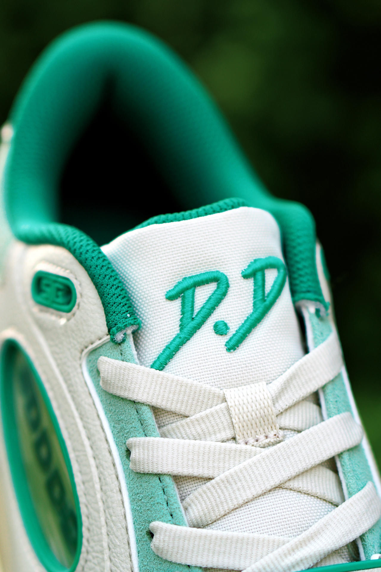 迪温琴佐PE配色的STG板鞋太惊艳了!低饱和的白绿撞色格外的清爽,复古中带着小清新,鞋子很耐看🍃#单鞋拿捏春日氛围感 鞋子上满是迪温的个人元素:魔术贴上的「BIG RAGU」,鞋舌刺绣「D.D」,后跟个人Logo 🌟最绝的还是内外侧都有闪卡格纹设计的「#DDDD」字样!细节满满💥 STG板鞋的脚感我去年就穿过了,非常舒服,这次用的还是巴斯夫鞋垫,脚感更软,包裹感恰到好处👍 作为迪温的PE,...