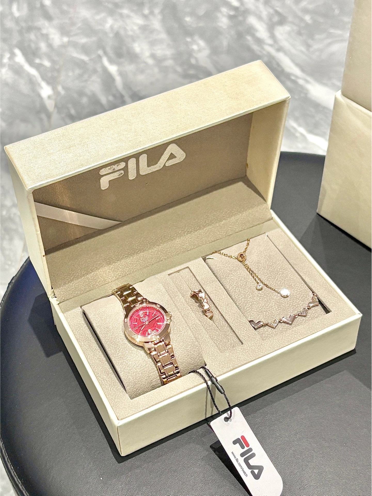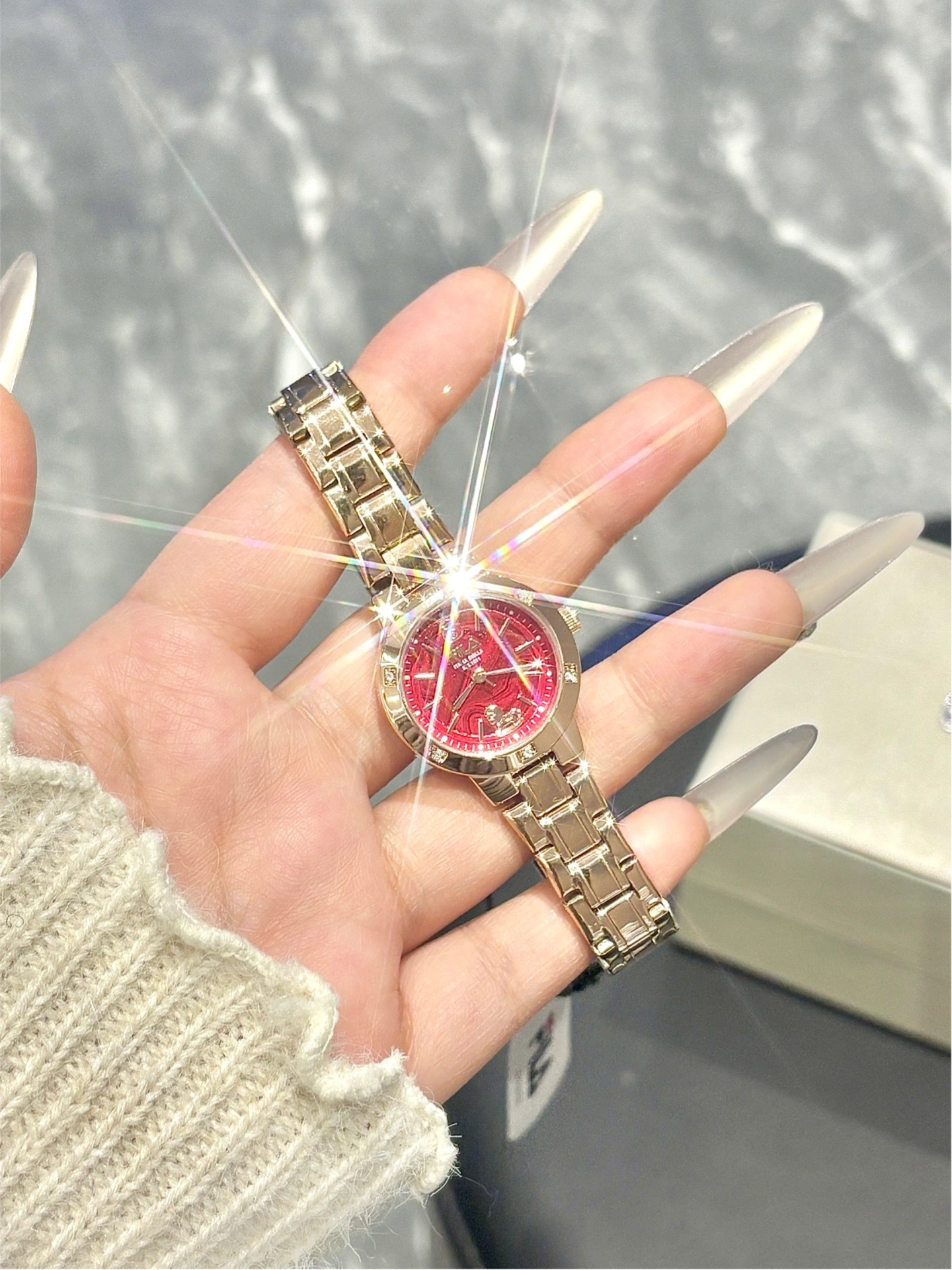 斐乐泥小汁也太懂女孩子了叭! 打开礼盒就美到我心窝窝里啦✨ 里面有手表、手链、项链、戒指全套配齐喽 红色表盘的hin有新年氛围感耶, 和手链叠戴氛围感拉满啦 我觉得介个手表过年或者约会戴都敲合适 我太爱了! 图源网络,侵删!