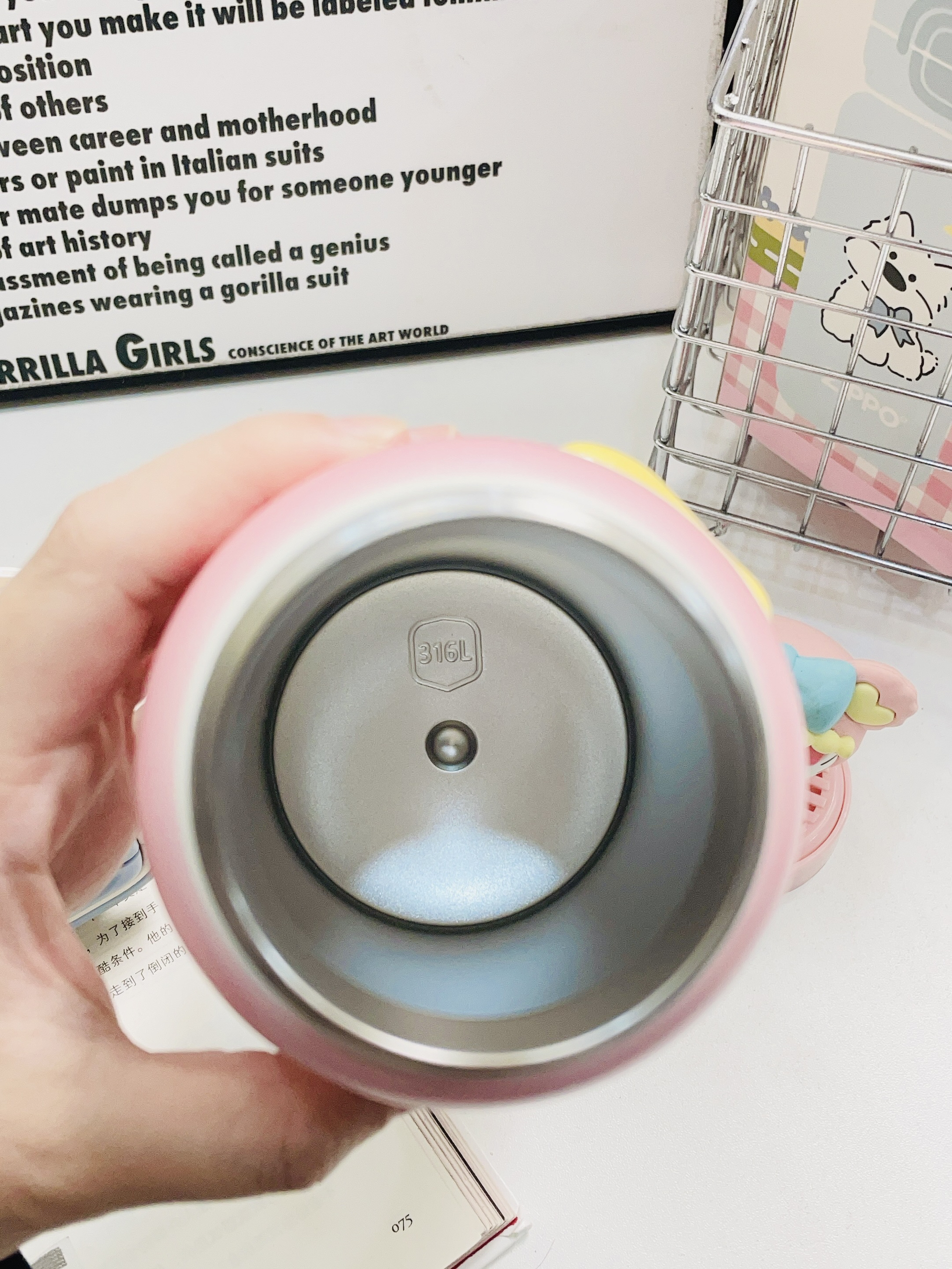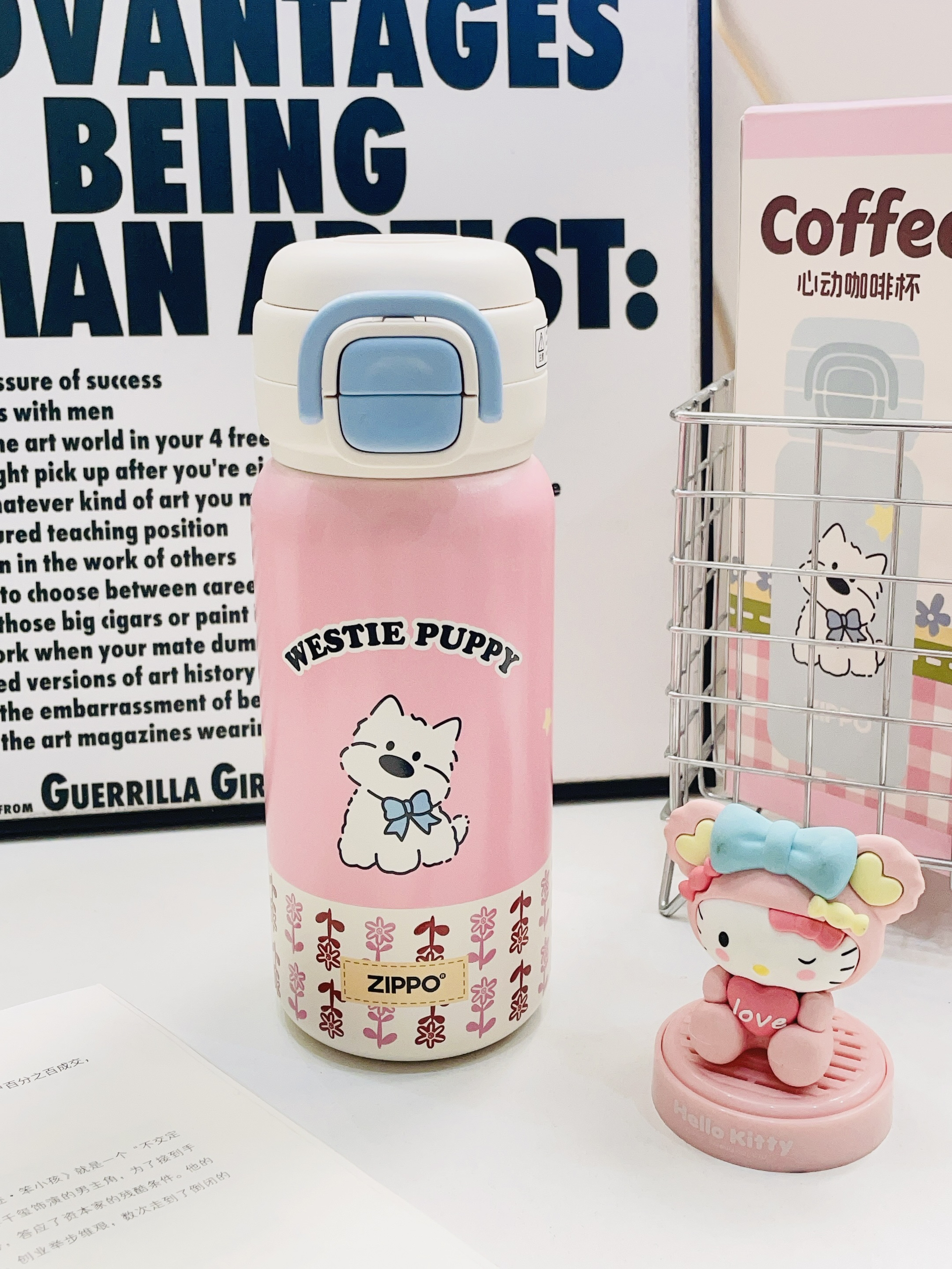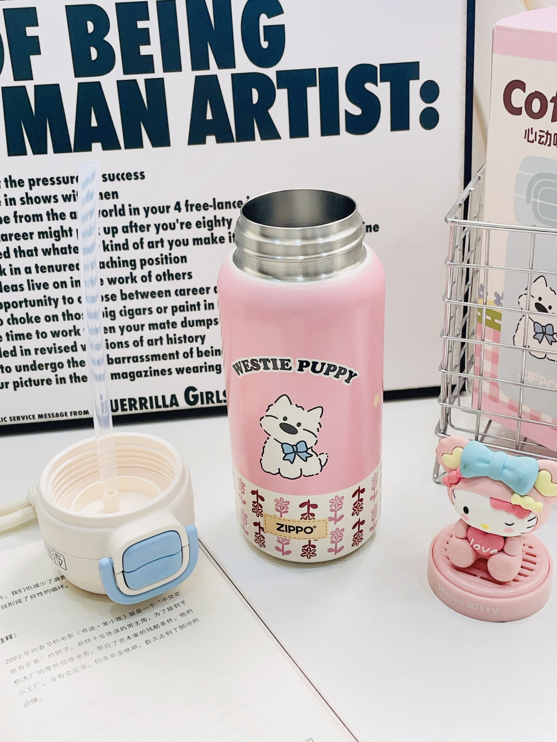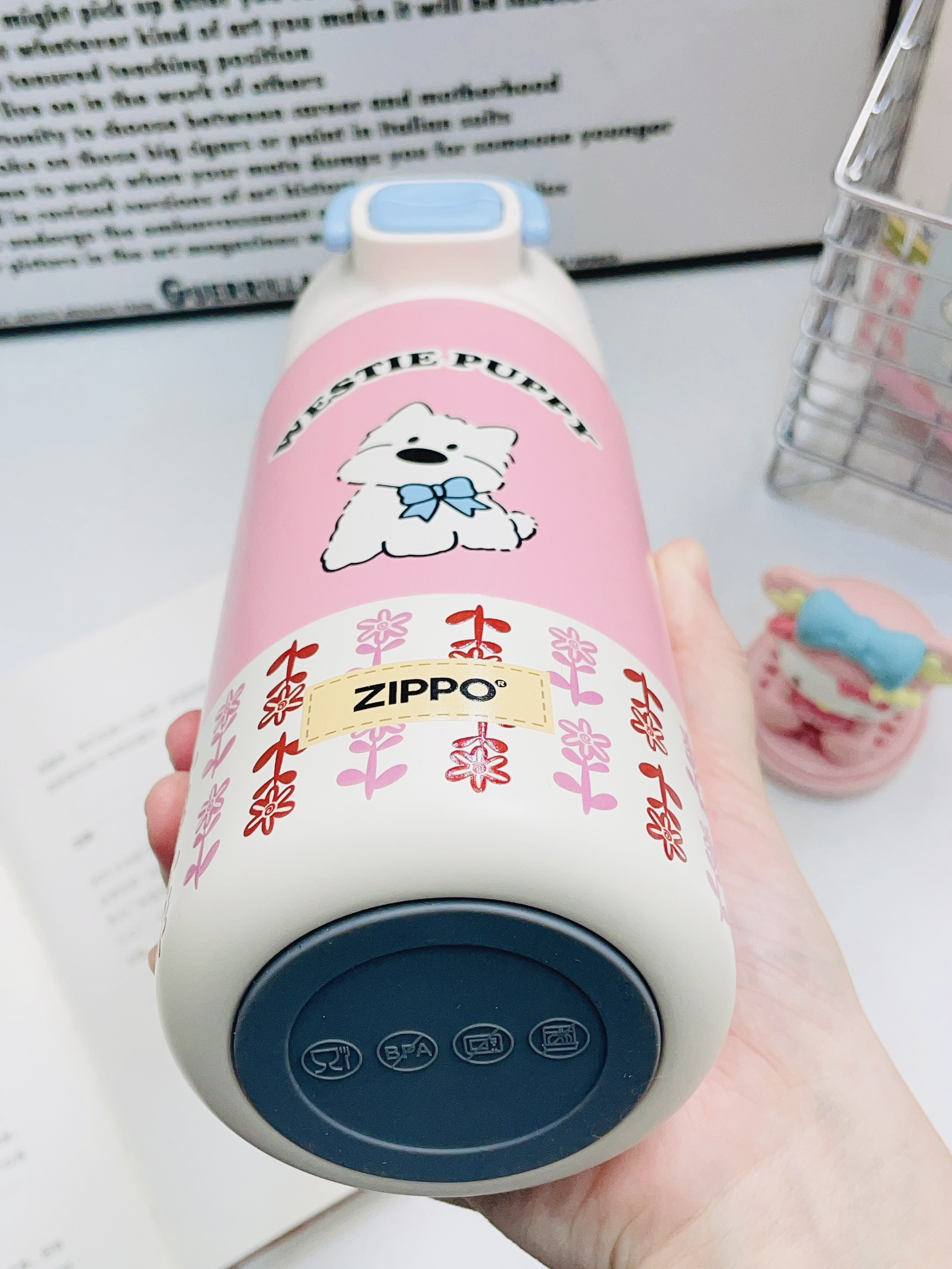 嘻嘻嘻忍不住羡耀我的新杯子 就素zippo介个星星狗保温杯 配色好粉嫩好好看啊 材质是316不锈钢内胆的 早上倒的水到晚上还热乎着 600ml容量我觉得刚好合适 日常出门携带也可以