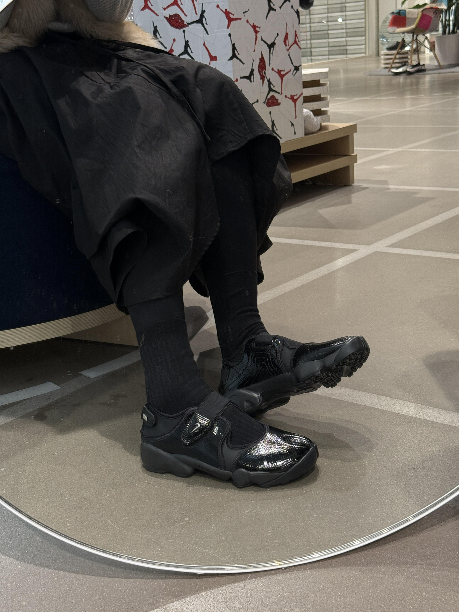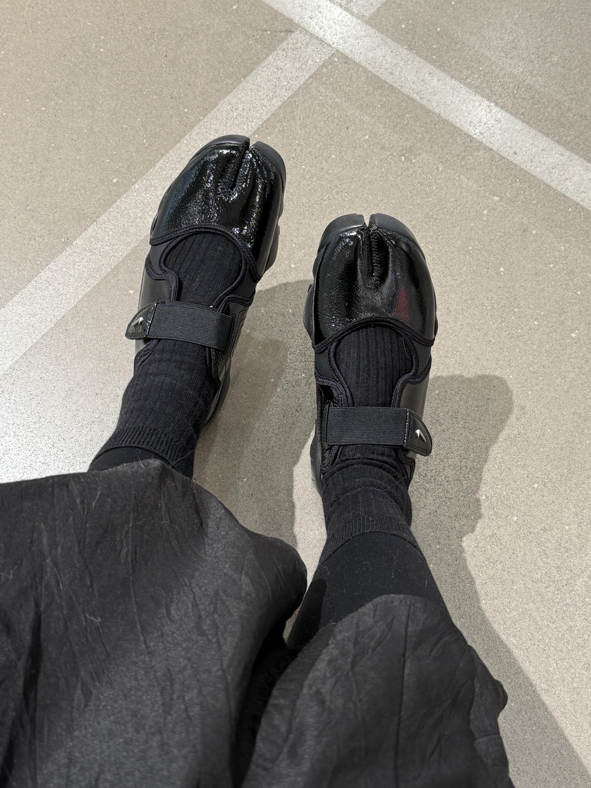 Nike机能风🥷 黑武士分趾鞋,帅到失语🖤 这双Nike黑武士分趾鞋,直接把暗黑机能感拉满! 全黑漆皮鞋身利落又冷峻,自带高级哑光质感,酷飒气场直接拉满🐾 标志性分趾设计,打破常规造型,上脚意外柔软贴合,不磨脚还超有辨识度。 懒人狂喜的一脚蹬版型,不用系鞋带,穿脱秒速,出门效率直接翻倍🔗 搭配工装裤、银饰项链+冷感配饰,暗黑街头范儿瞬间拿捏🎧 轻运动、日常通勤、逛街出片全都hold住🤌🏿 不...