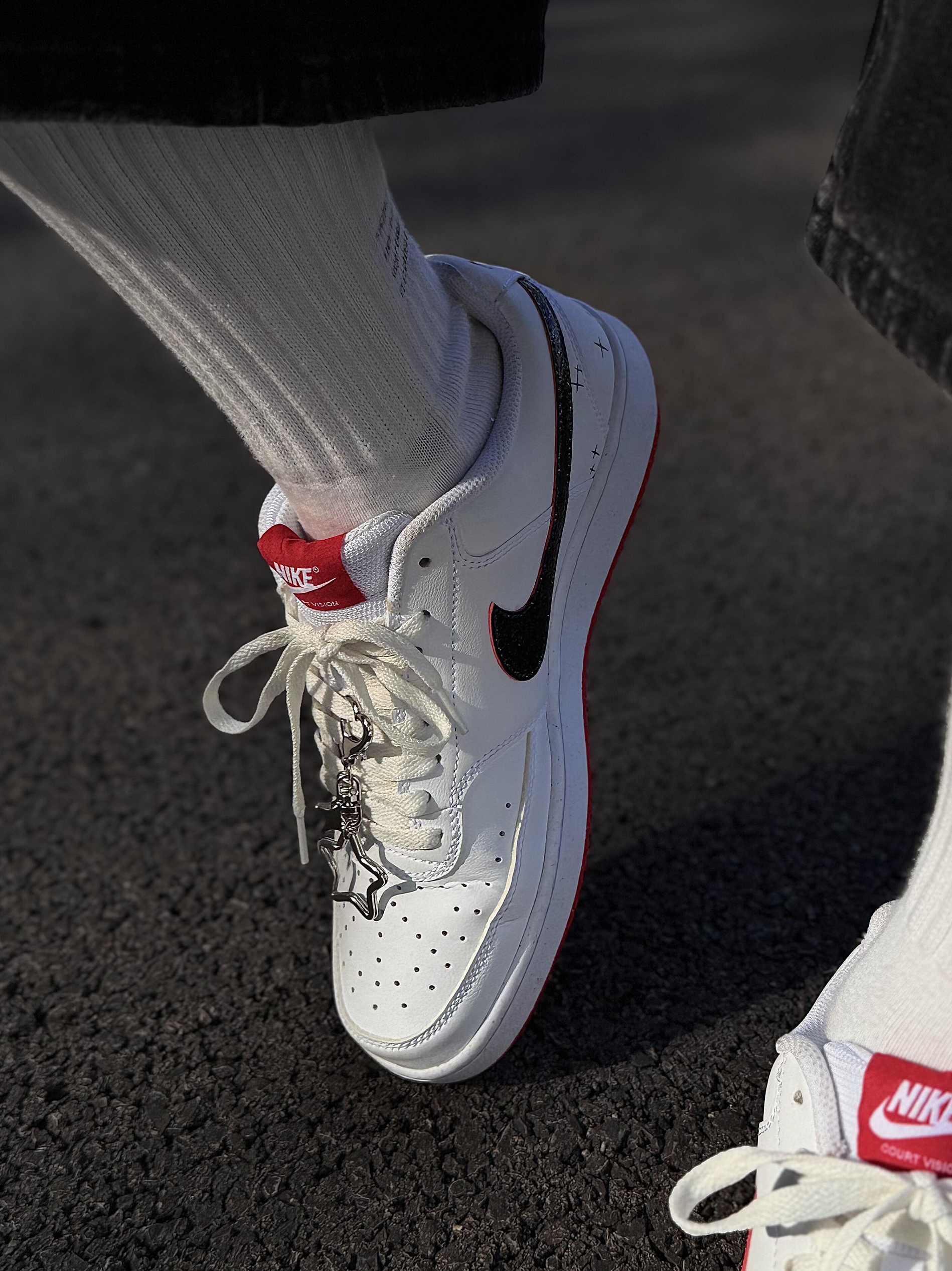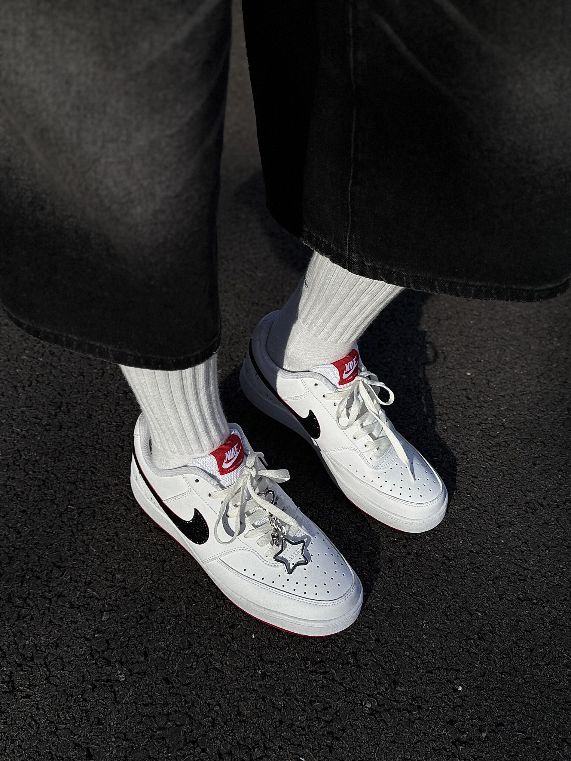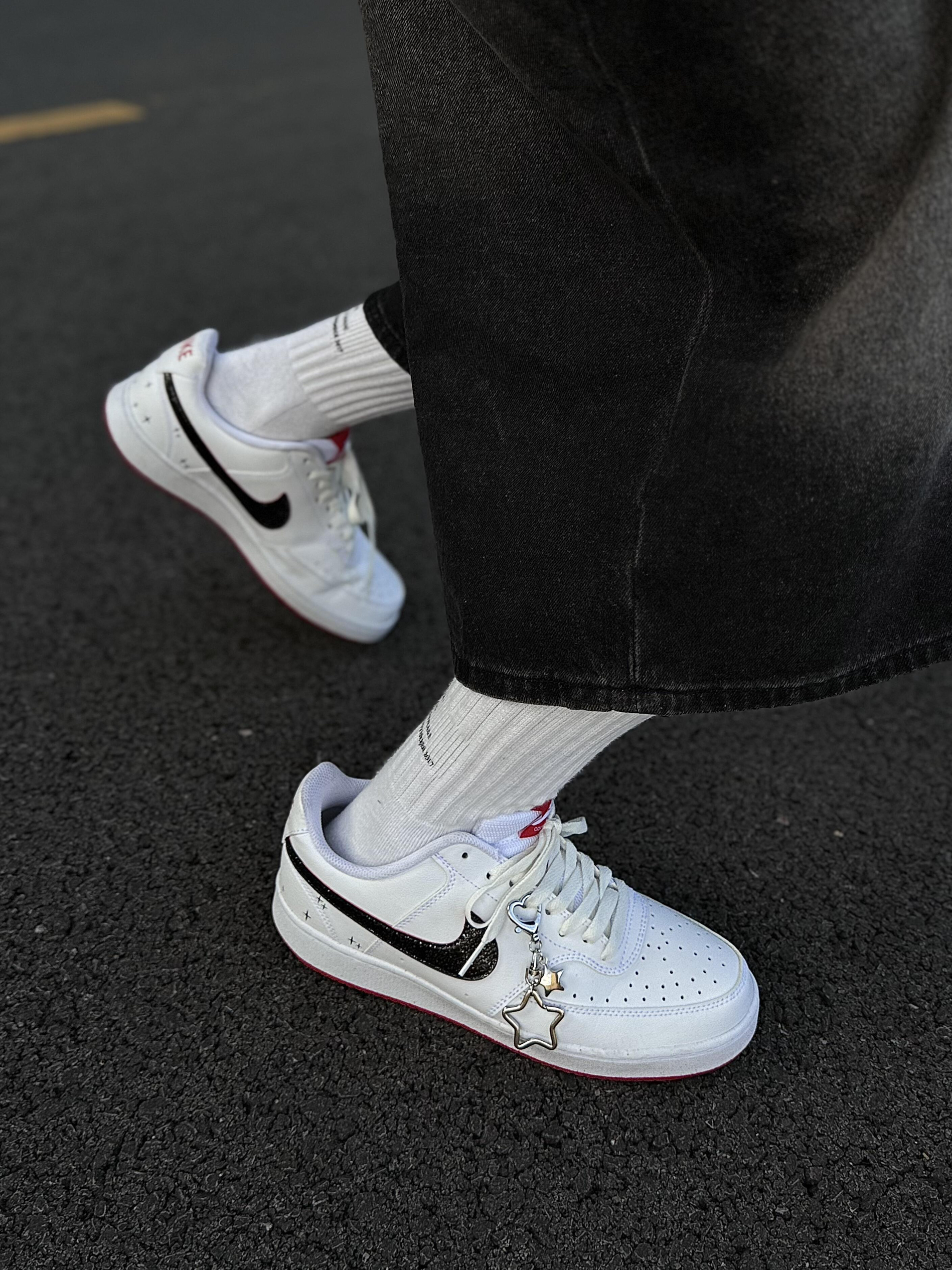 真的会被耐克这双鞋狠狠拿捏!👟暗夜星芒也太绝了 谁能拒绝一双颜值在线、百搭又抗造的Nike板鞋啊! 这双Nike Court 暗夜星芒,直接把夏日氛围感拉满✨ 经典黑白红三色碰撞,干净又亮眼,不挑肤色不挑穿搭,夏日里穿彩色板鞋的快乐,它全给你!鞋型利落挺括,对脚宽星人超级友好,上脚直接修饰脚型,显得利落又修长,完全不显臃肿。 细节控真的会疯狂心动💓 手绘小星星点缀+吸睛红色鞋舌,小小一处就很...