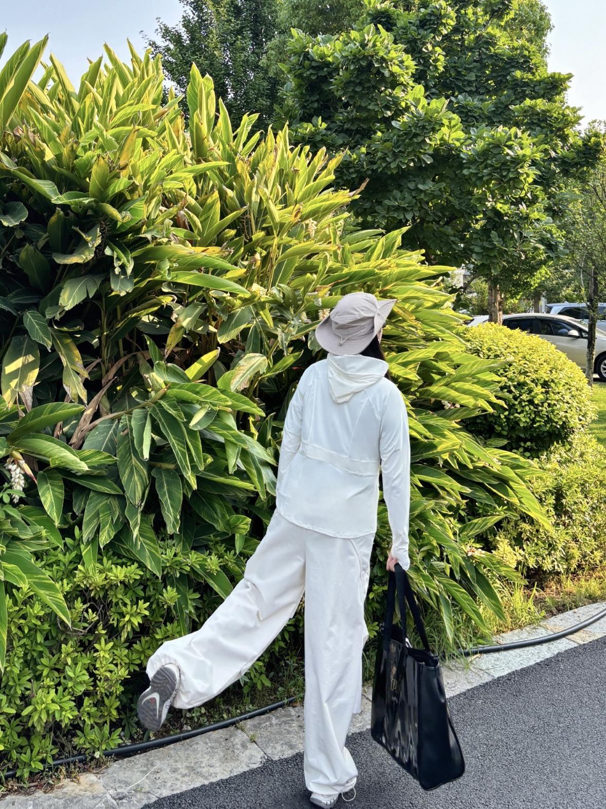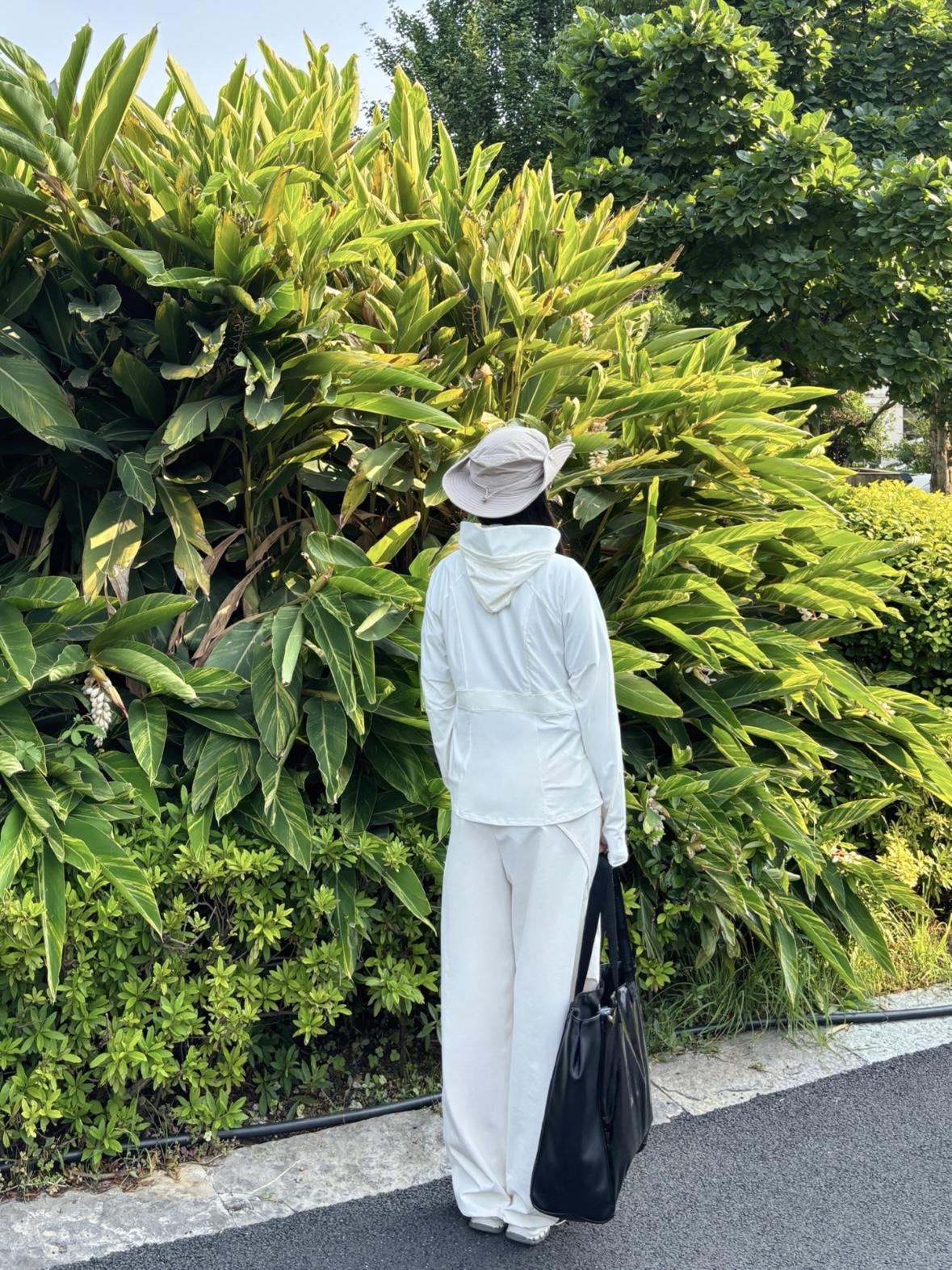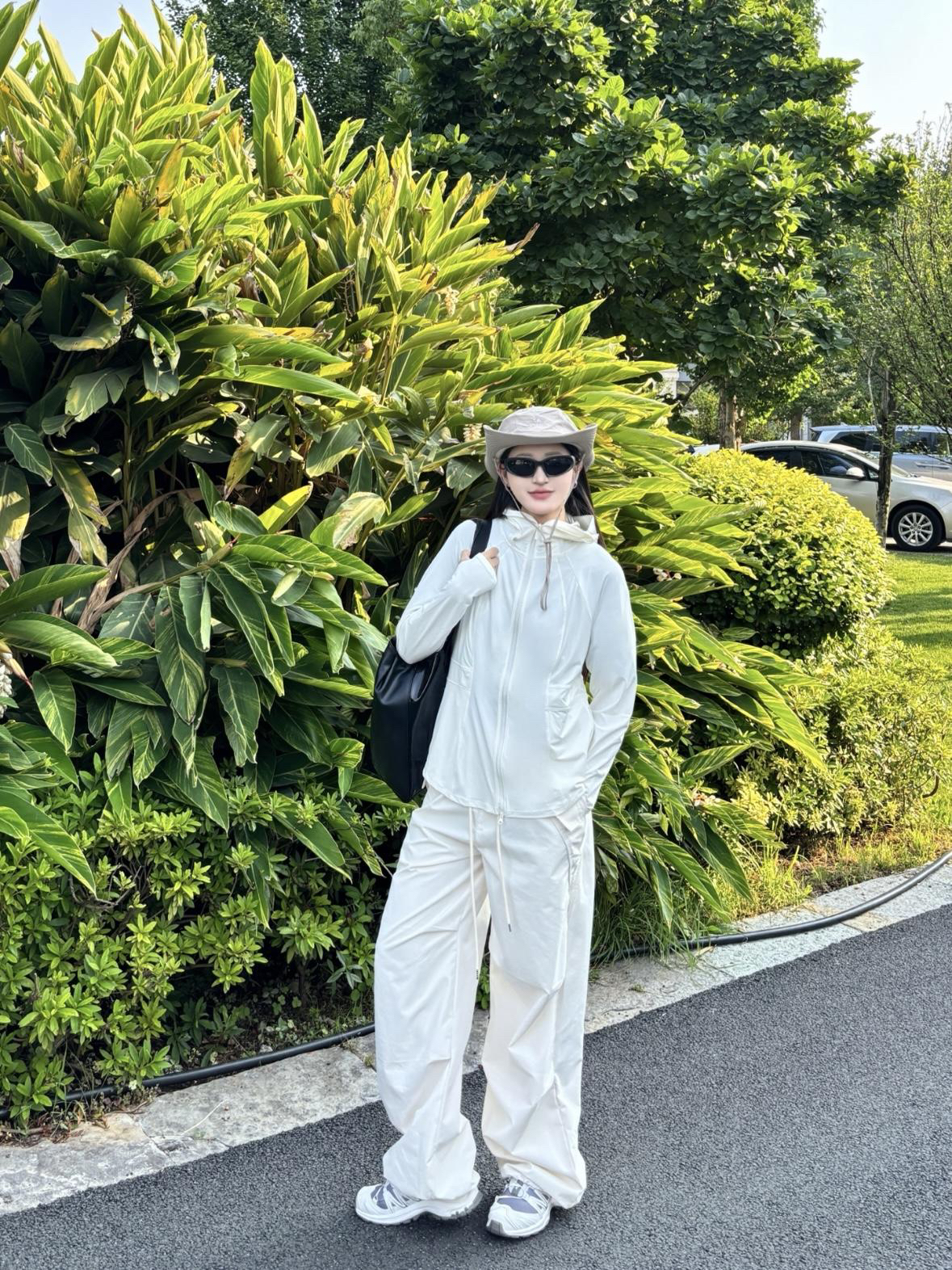 这套穿搭走的是简约休闲风~ 主打干净利落的全白配色 👕 BANANA IN 蕉内 连帽防晒外套~ (165cm 51kg m码) 冰感凉皮面料 upf100+很适合夏天穿着 适配多种身形 营造随性氛围 防晒功能也契合户外场景 👖同色系阔腿裤~ 垂坠感佳 修饰腿型添松弛感 又带点工装元素的利落 整套很适合日常出街、户外漫步 轻松打造随性又时髦的风格