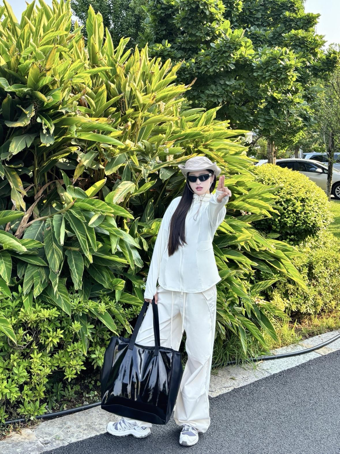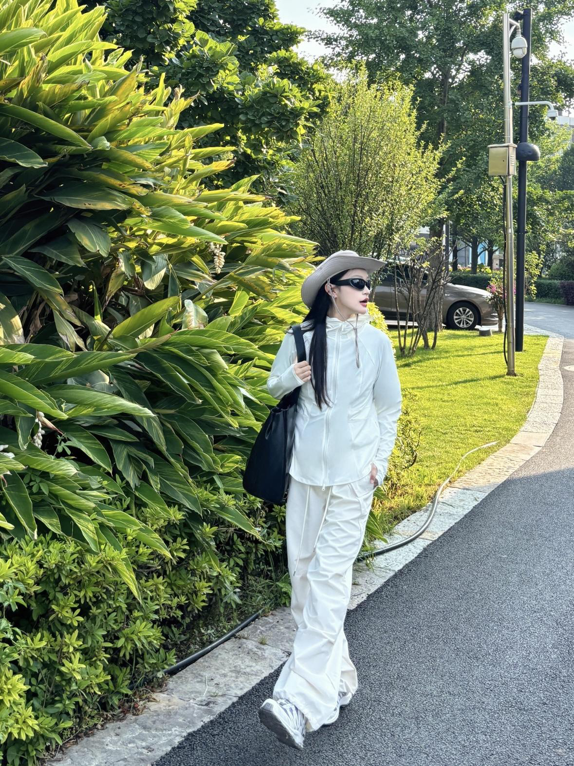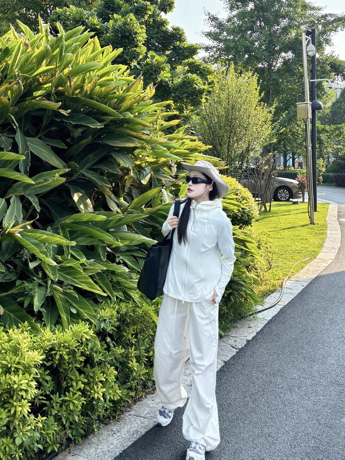 这套穿搭走的是简约休闲风~ 主打干净利落的全白配色 👕 BANANA IN 蕉内 连帽防晒外套~ (165cm 51kg m码) 冰感凉皮面料 upf100+很适合夏天穿着 适配多种身形 营造随性氛围 防晒功能也契合户外场景 👖同色系阔腿裤~ 垂坠感佳 修饰腿型添松弛感 又带点工装元素的利落 整套很适合日常出街、户外漫步 轻松打造随性又时髦的风格