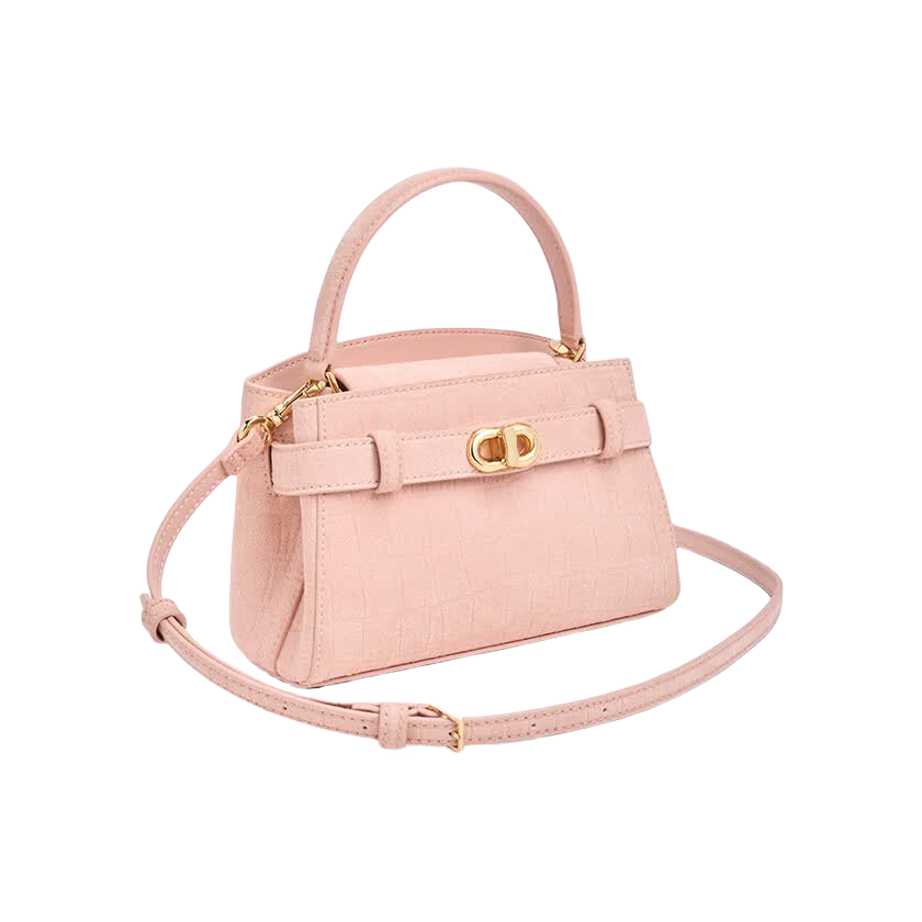 💗CHARLES & KEITH粉色鳄鱼纹凯莉包,型号CK2-50270880,采用麂皮绒材质,触感柔软,浅粉色搭配金属扣,甜美又高级✨。小号设计,手提斜挎都OK,通勤约会都能轻松驾驭。鳄鱼纹细节提升质感,内部空间能装手机、化妆品等日常小物,实用又时髦,是春夏百搭热门选择🌸。