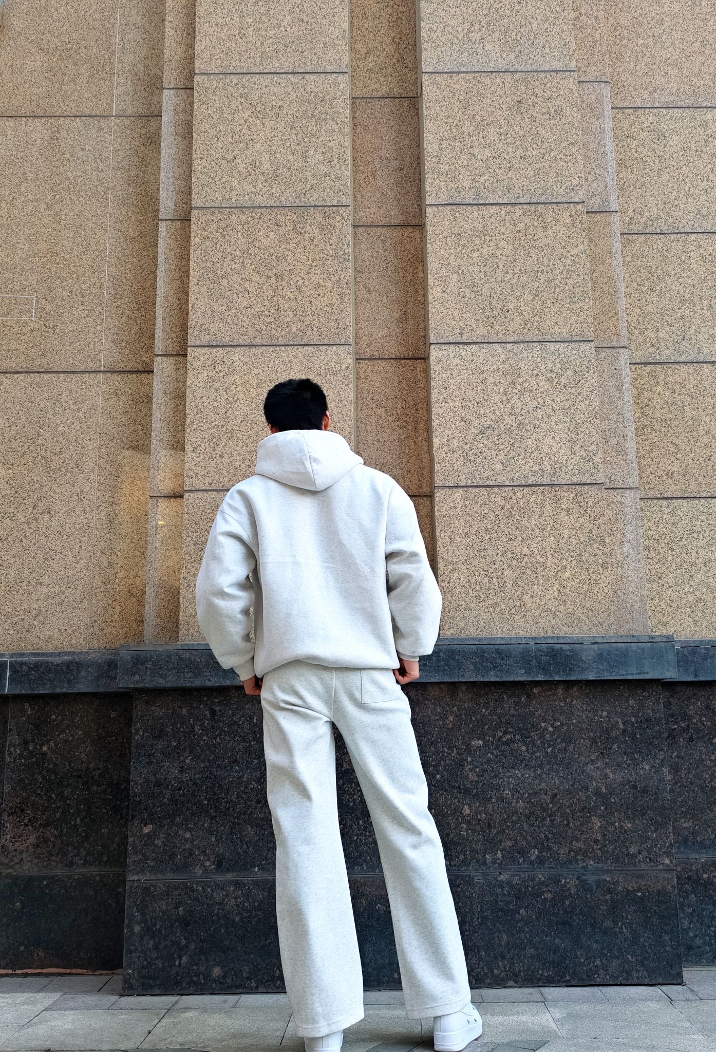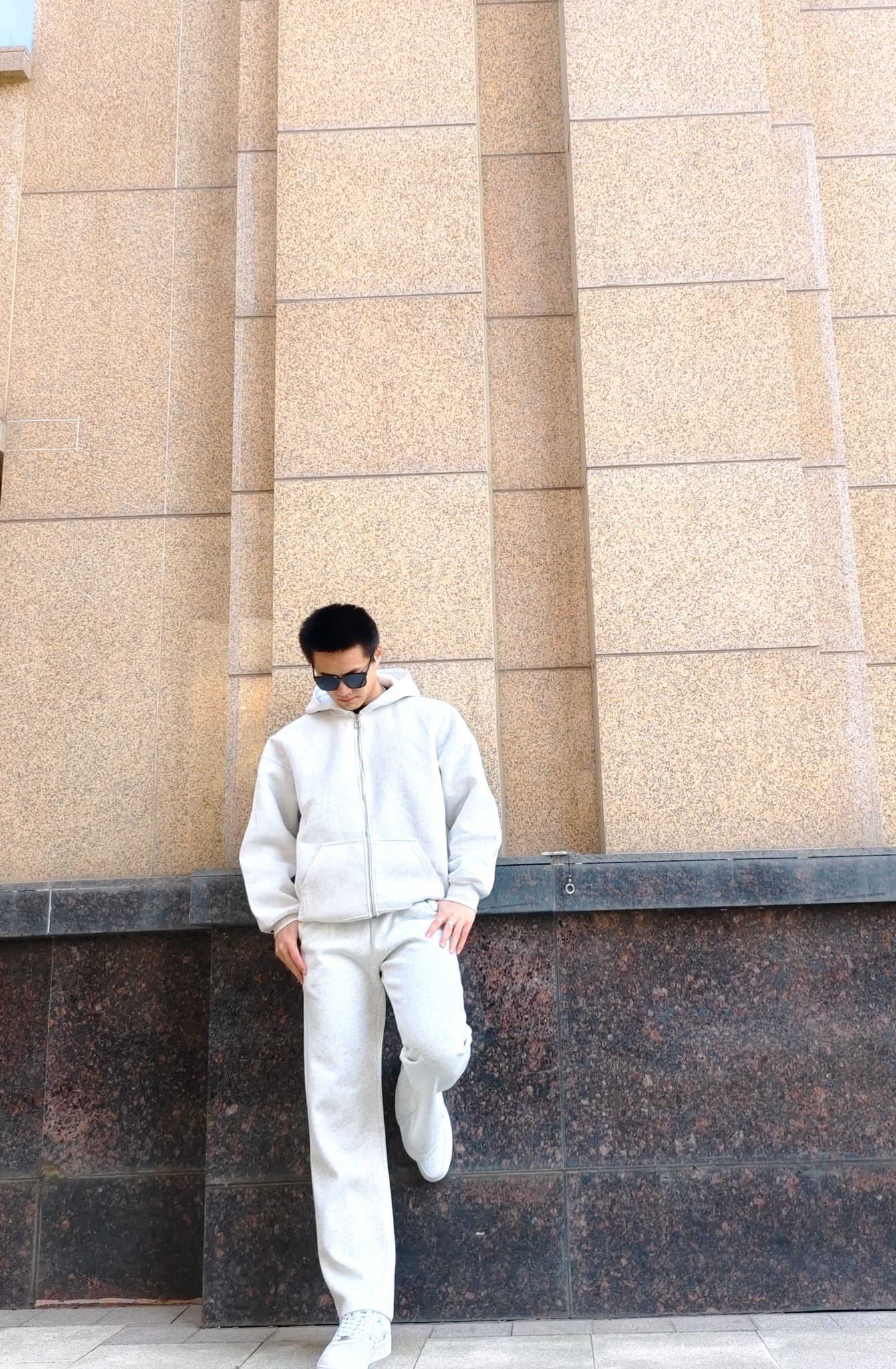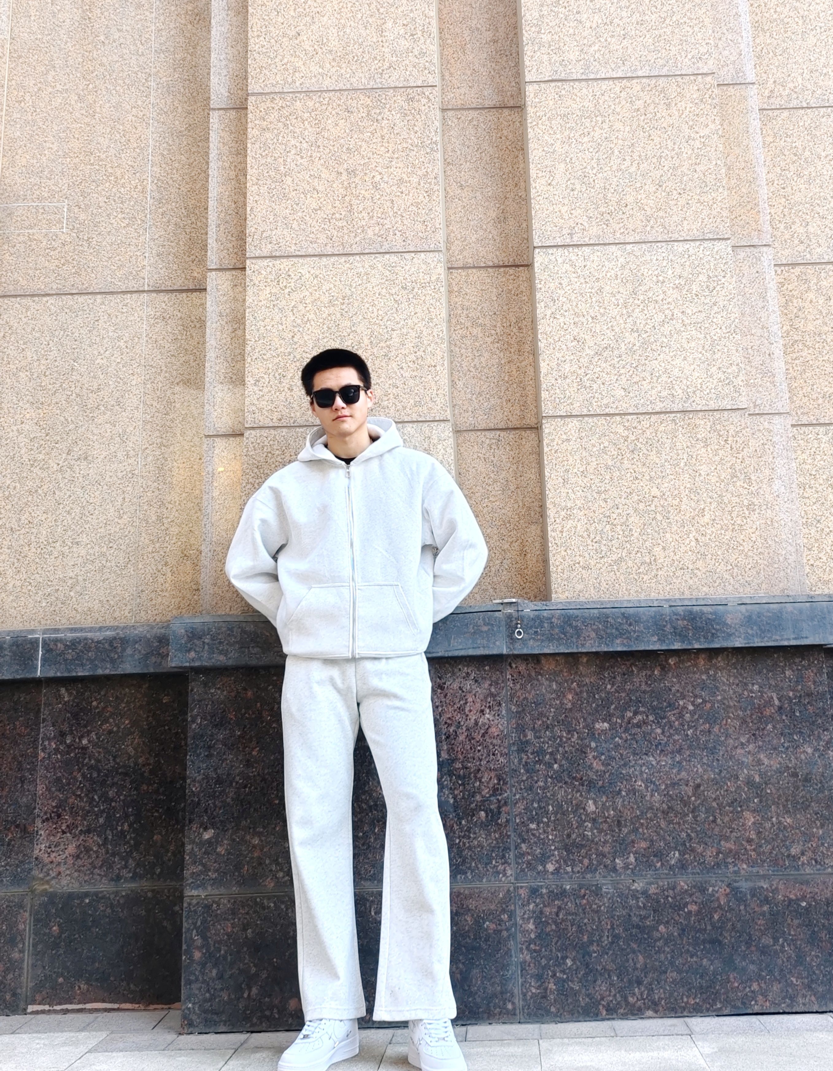 这套浅灰套装真的是懒人穿搭福音!一整套直接穿出门,不用费心搭配,干净又显气质。 宽松连帽卫衣+同色系微喇卫裤,版型巨藏肉,对各种身材都友好,微喇裤还能悄悄修饰腿型,显高又显瘦。面料软糯亲肤,日常通勤、逛街、运动都能穿,舒服到不想脱下来。 配白鞋、黑鞋都好看,加个墨镜瞬间变酷,学生党和打工人都能闭眼入,性价比拉满,穿一整个春天都没问题!