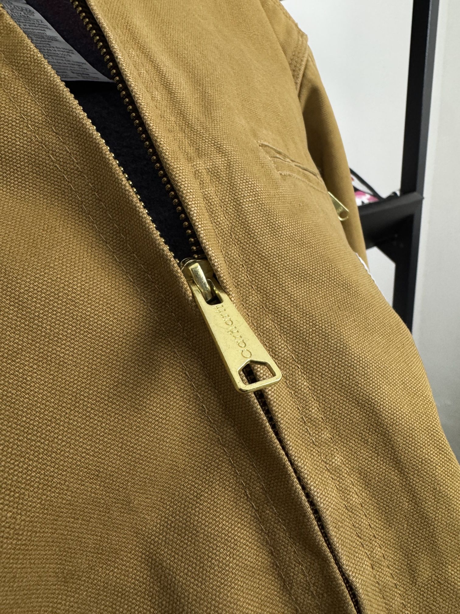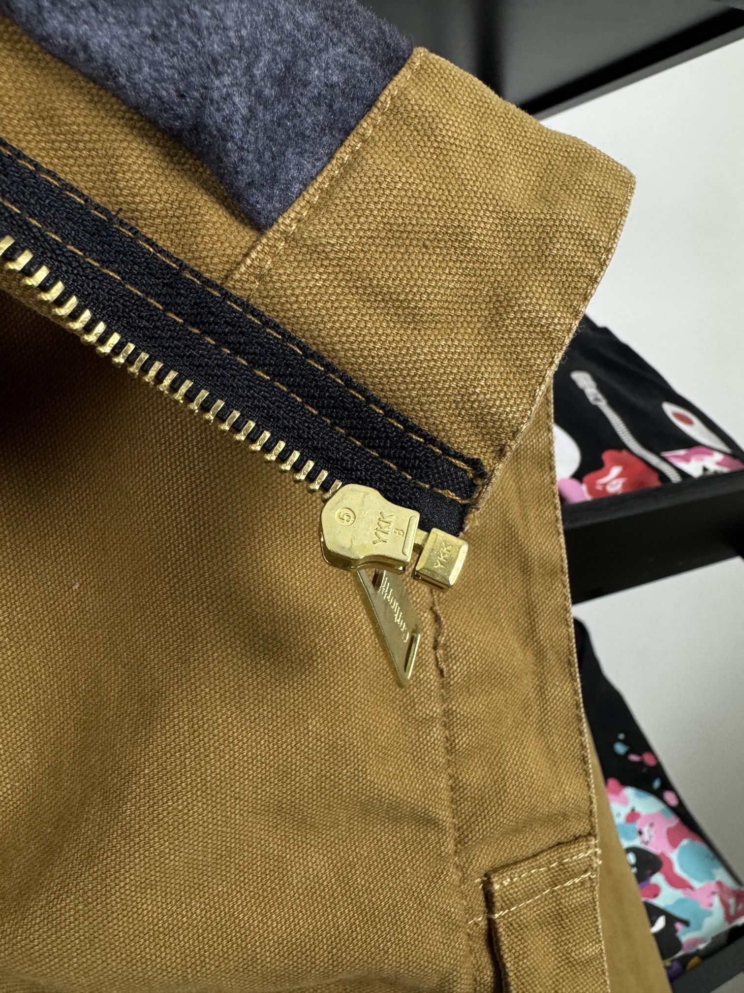 这件卡哈特底特律夹克真的是工装党本命!经典棕黄色帆布+灯芯绒领,复古感直接拉满,厚实耐磨还挺括,上身自带美式硬汉气场。 细节拉满:胸口拉链袋+斜插口袋,五金质感在线,叠穿单穿都好看,春秋季通勤、出街都能打,越穿越有味道,性价比拉满,闭眼冲不亏!