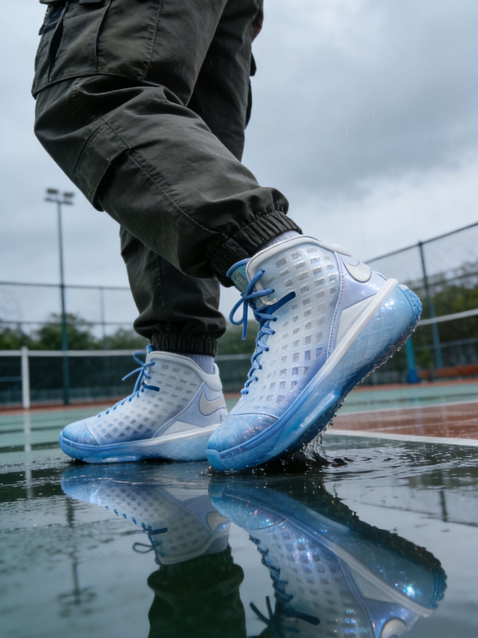 谁懂啊!这双Nike Kobe 3 Protro冰蓝配色,简直是颜值与情怀的双重暴击💥 - 鞋面从鞋头到鞋跟渐变冰蓝,蜂窝网格+冰晶裂纹,像把刚解冻的球场阳光裹在鞋上 - 后跟镭射Swoosh+科比Logo,在光下泛着细碎银辉,细节拉满 - 半透明水晶底内嵌碳板,Zoom缓震标识清晰可见,实战党一眼懂的扎实脚感 - 上脚清透显白,搭运动裤、牛仔裤都能穿出街头清冷感,球场&日常无缝切...