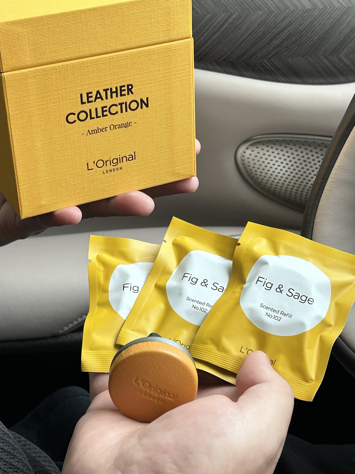 L'Original 你是会做车香的 又让我挖到宝藏礼物啦 就是这个琥珀橙小羊皮车载香薰 明黄色礼盒敲精致 自带轻奢高级的质感 夹在出风口车内瞬间更高级了 里面配有三个香芯 无花果与鼠尾草香闻着很清新 开车时闻着真滴很治愈耶 我觉得拿来送礼物好有排面呀 #仪式感满分的生日礼物 #迎接春天的仪式感 #美美开局2026 #疯狂心动的开学季