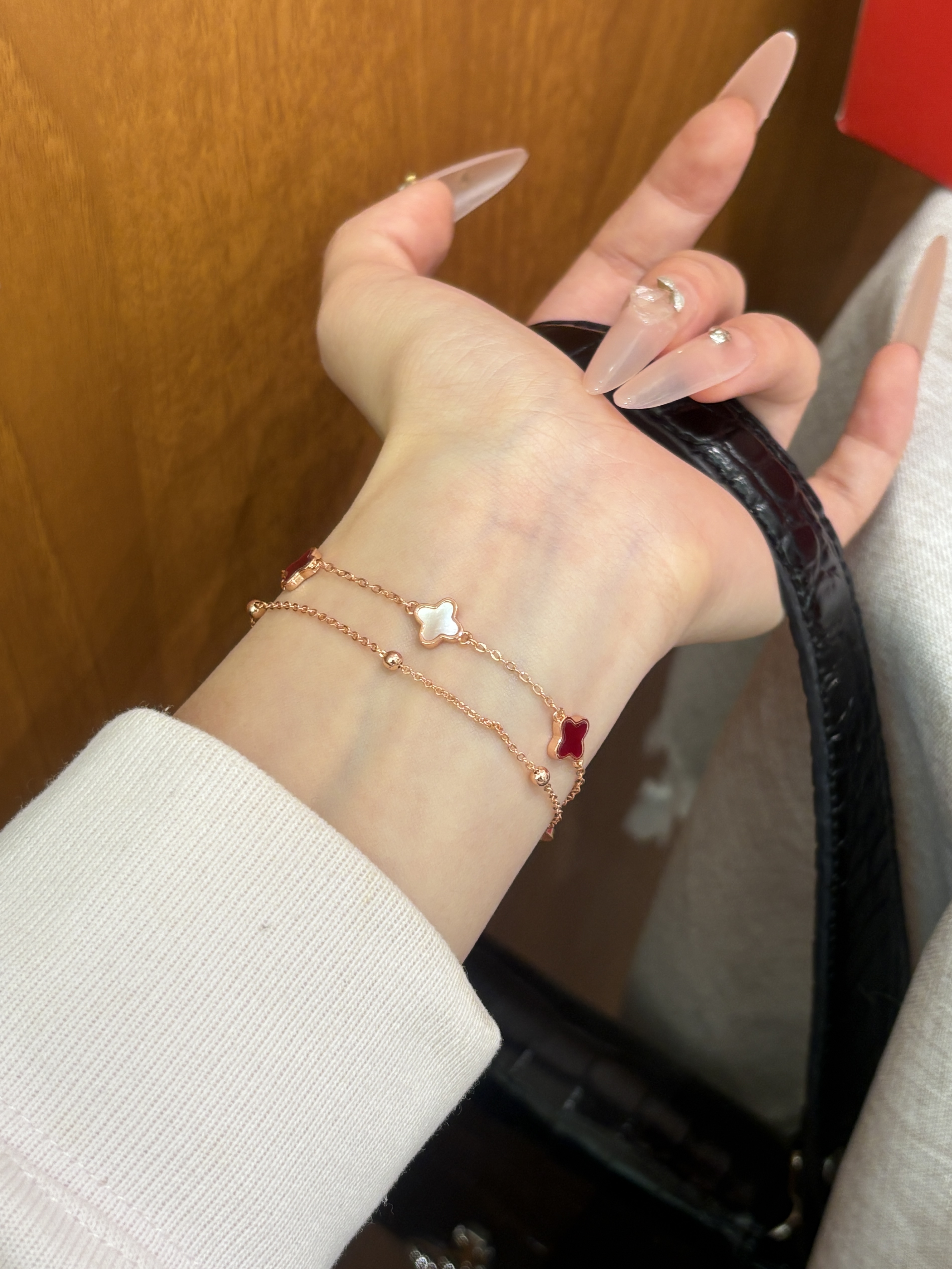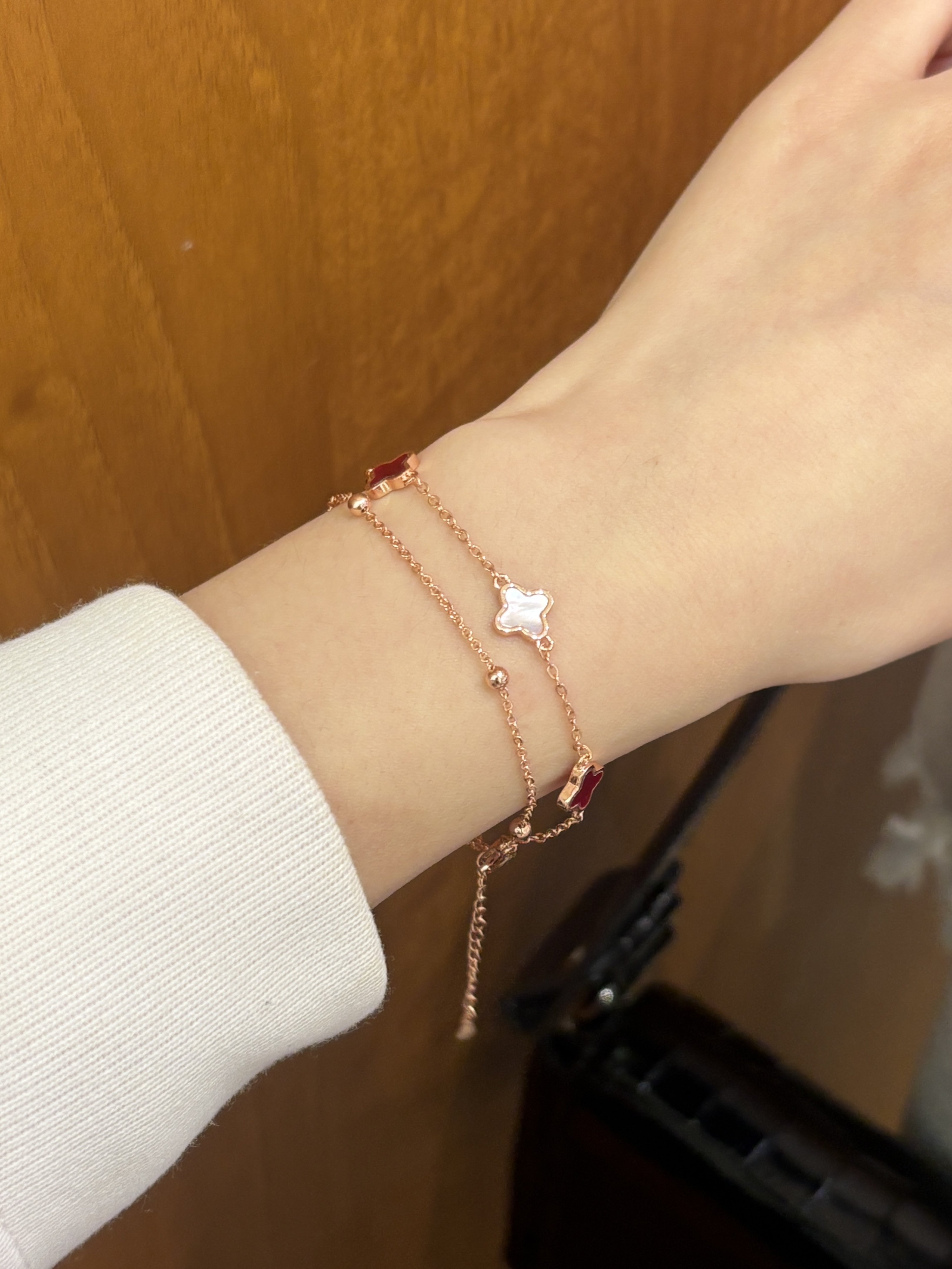 好喜欢戴这种piu亮的手链 是红白相间的双层四叶草✨ 红色的颜色也是喜气洋洋的 礼盒包装高级着呢 送对象或者送闺蜜我觉得都hin不错🥳 #春季配饰预习清单 #女孩子的宝藏首饰分享 #分享百搭氛围感项链 #女友终于夸我会送礼物 #手链礼物分享