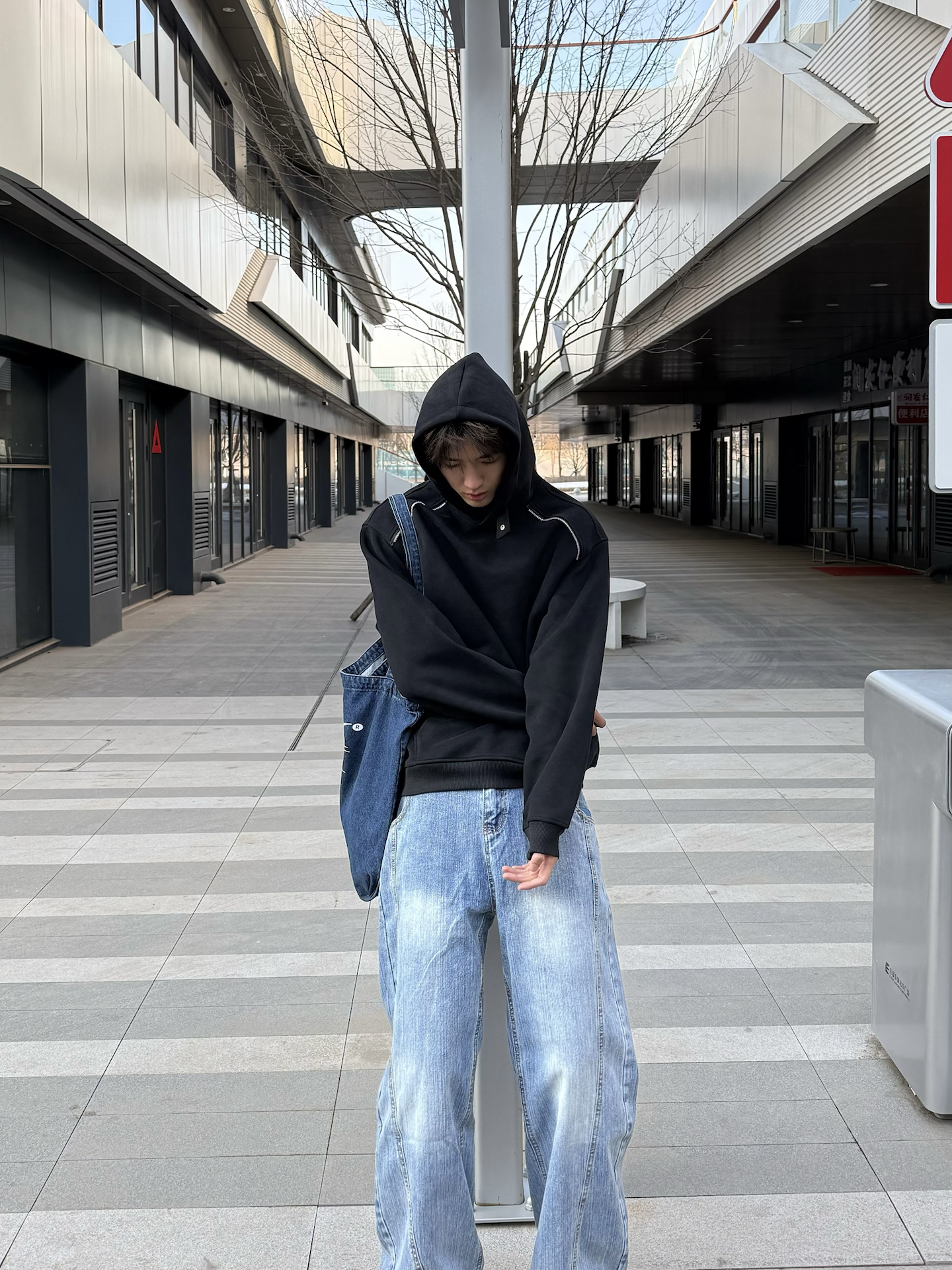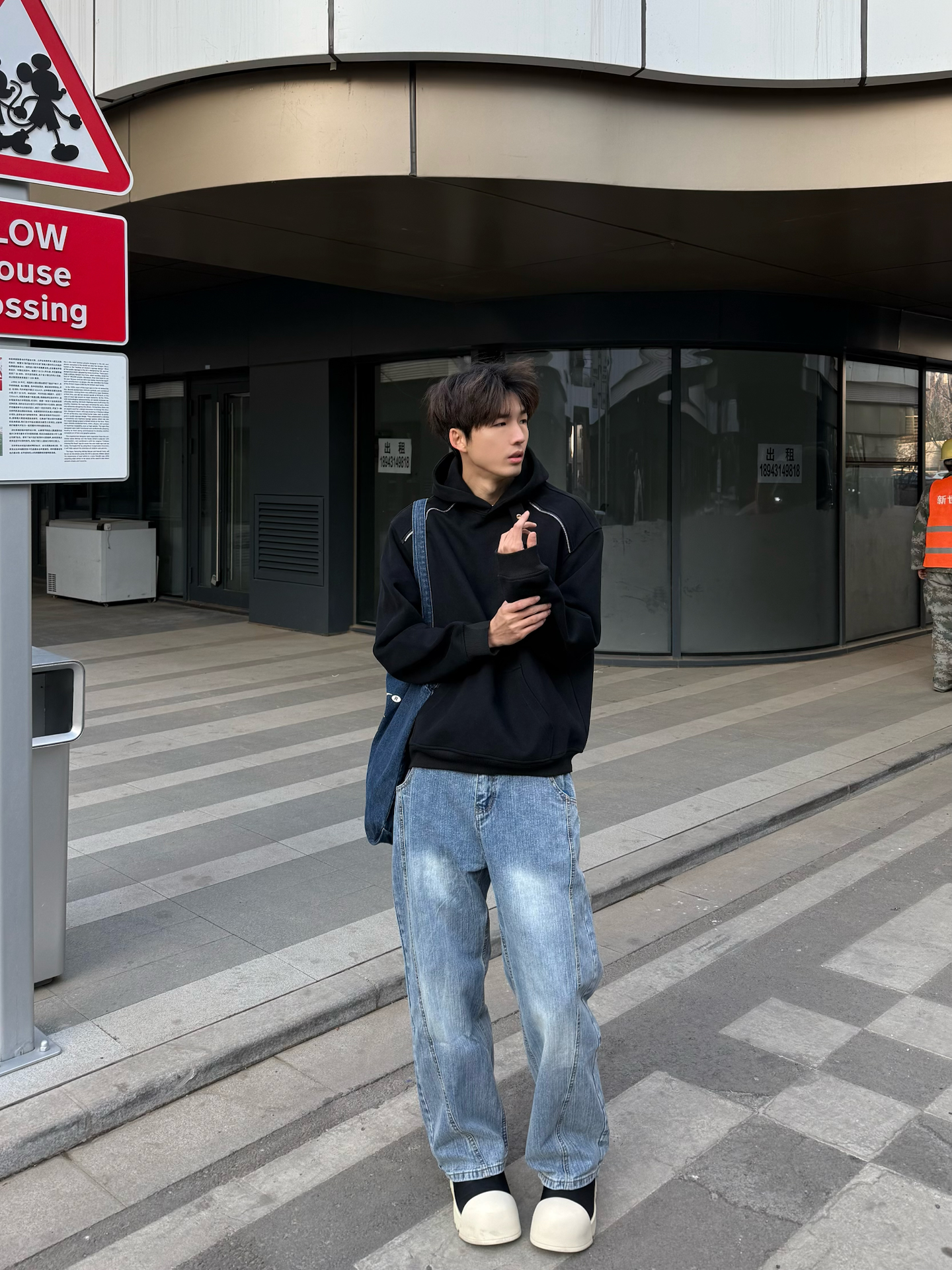 本篇笔记关联了PDKN 美式学院风纯色简约华棉拼接套头连帽落肩长袖卫衣 PDKN2303HW26024 黑、A chock 直筒低腰微弹牛仔裤 G6656 蓝等商品,为用户提供真实的使用体验和购买参考。