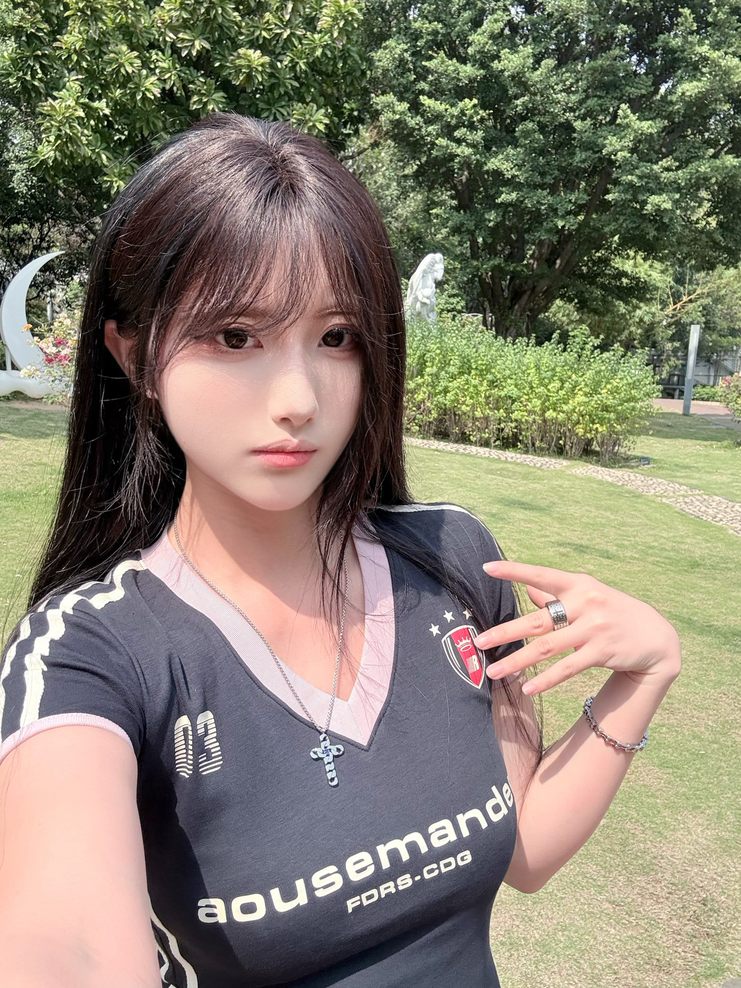 平时找家好看的店拍照真的很难... 肯定要消费入座,但怕人太多,然后又被人说哈哈哈哈[裂开_blue]如果拍出来的照片不好看就难受! 最近爱上了在公园拍照⛲️一分钱不用花,空间又大随便找机位。像这种晴天☀️就很好出片啦~ 然后衣服要穿比较有活力的,我这件是那种v领修身半袖~ 比较美式女高的感觉 藏蓝色还很显白 还是像之前说的!阳光充足就用🍎16pro 清晰又好看 🔜调色参数:冷调玫瑰-色调 35...