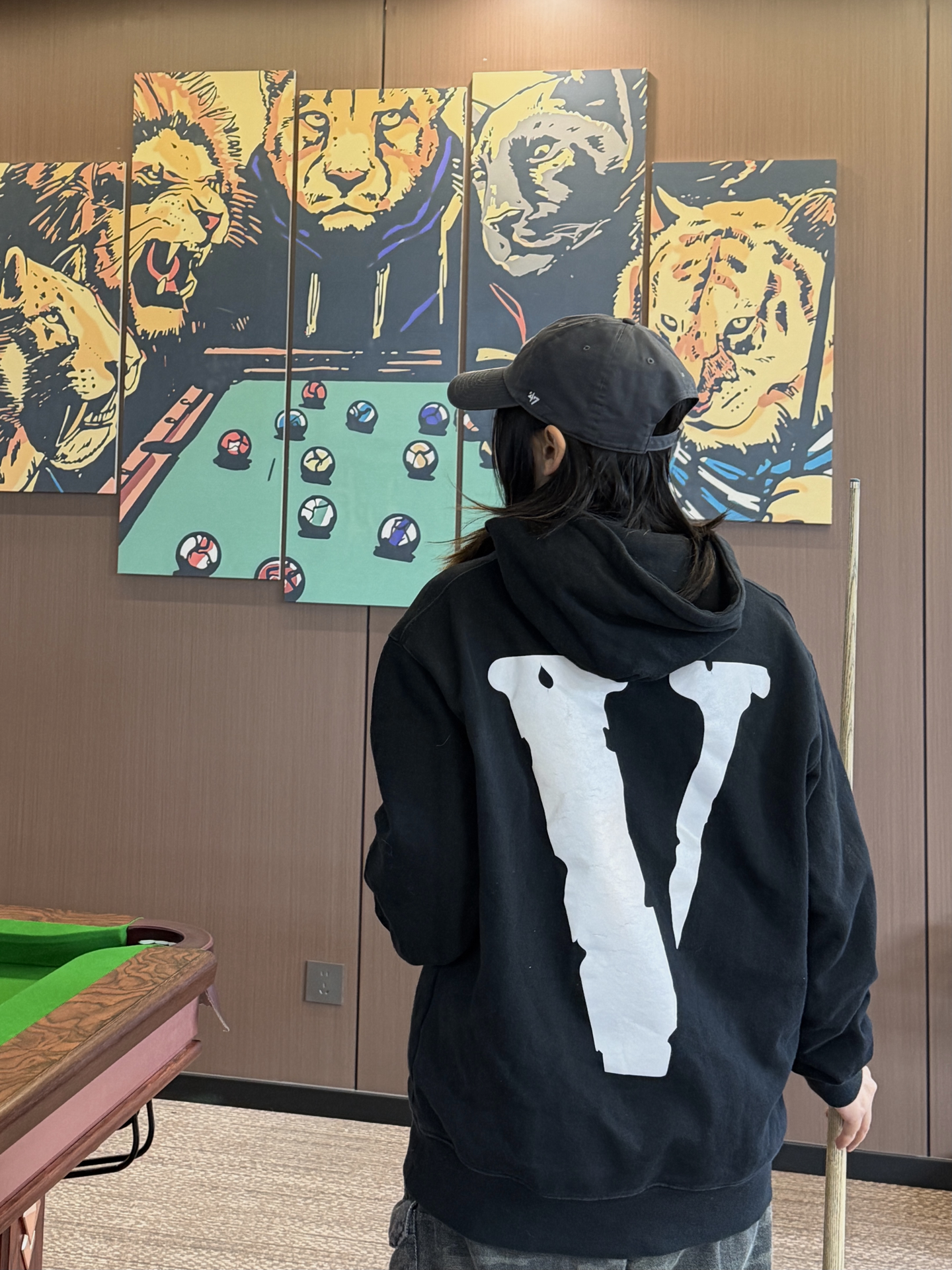 打台球朋友夸我的ootd很帅,那就拍两张吧 VLONE经典大V卫衣搭配迷彩湾刀裤 上衣短宽版型结合阔腿工装裤万能搭配公式 视觉拉长身体比例显高 而且很有美式街头氛围感了 球打得一般穿搭不能输h'h #10s学会穿搭技巧 #卫衣终于开窍了 #潮人的春天来了 #裤子选的好穿搭没烦恼 #VLONE彩动街头