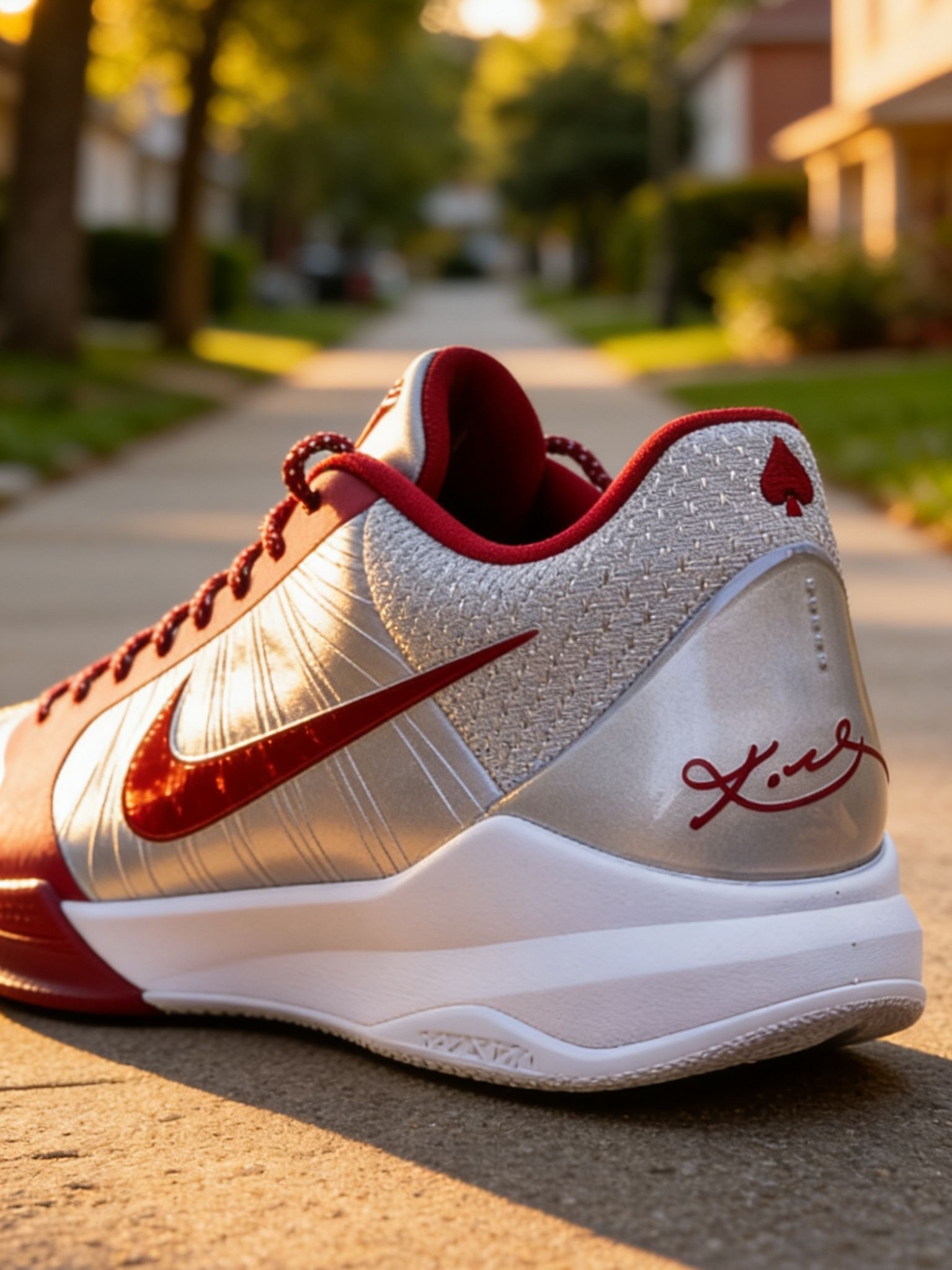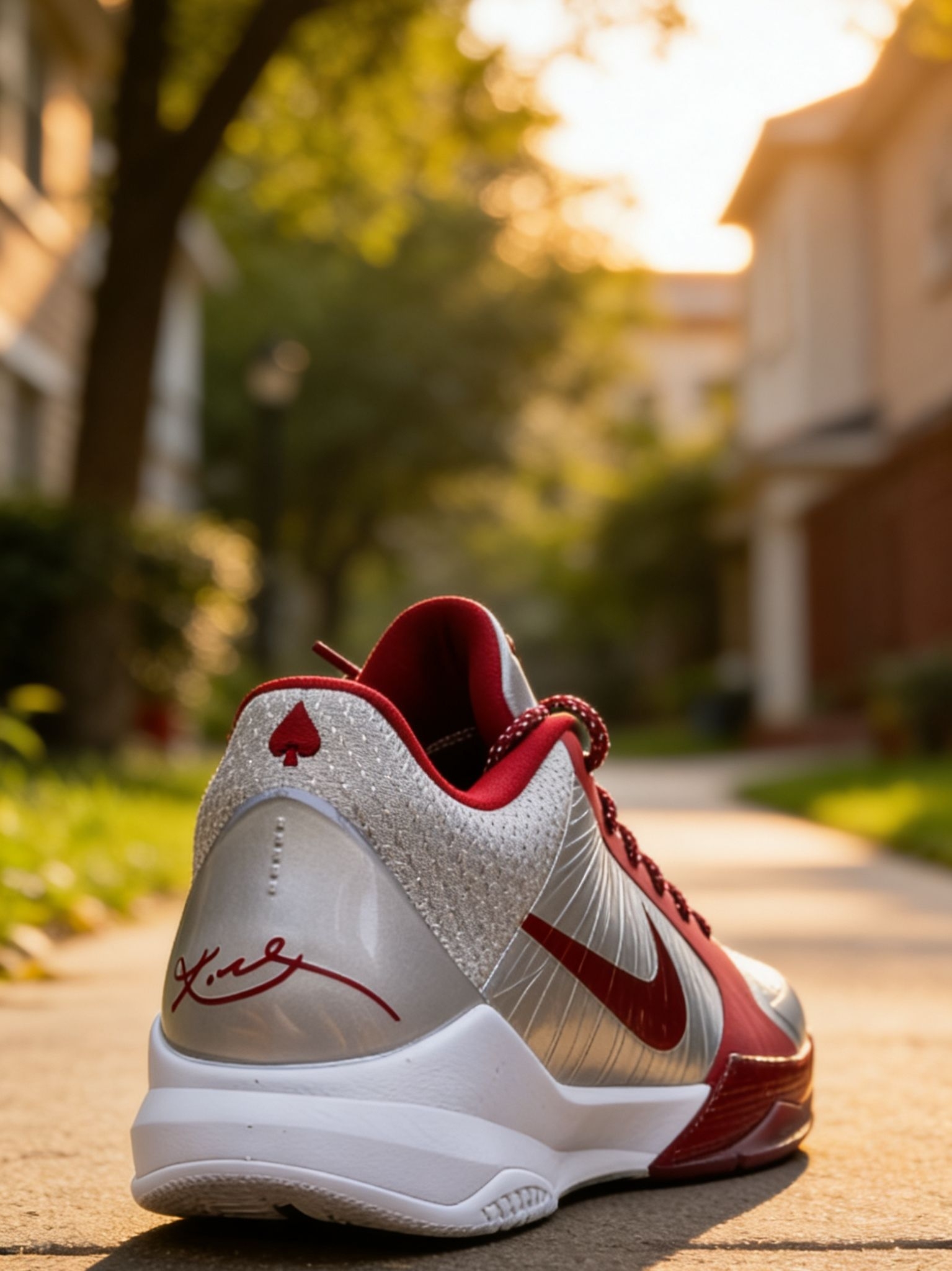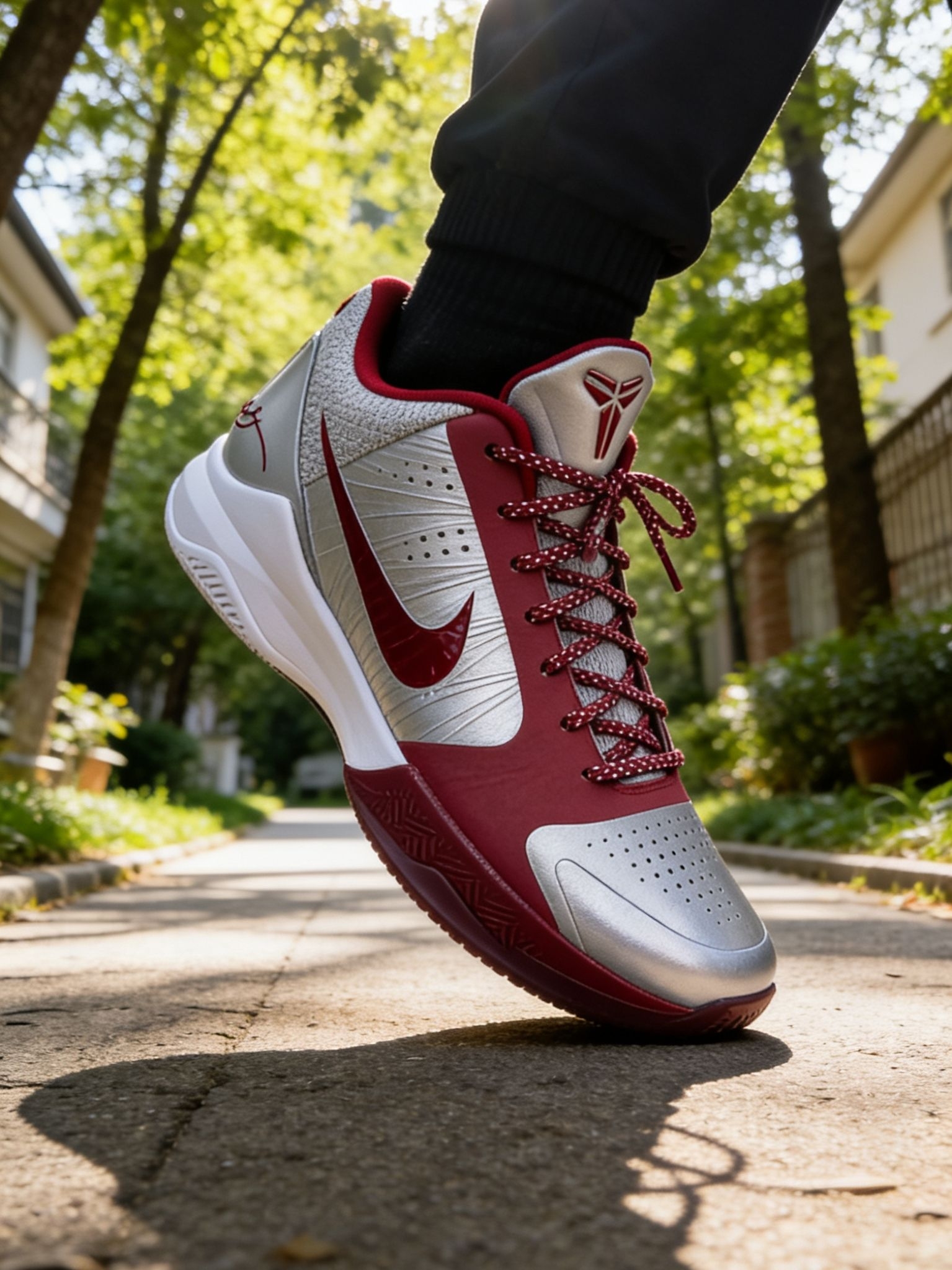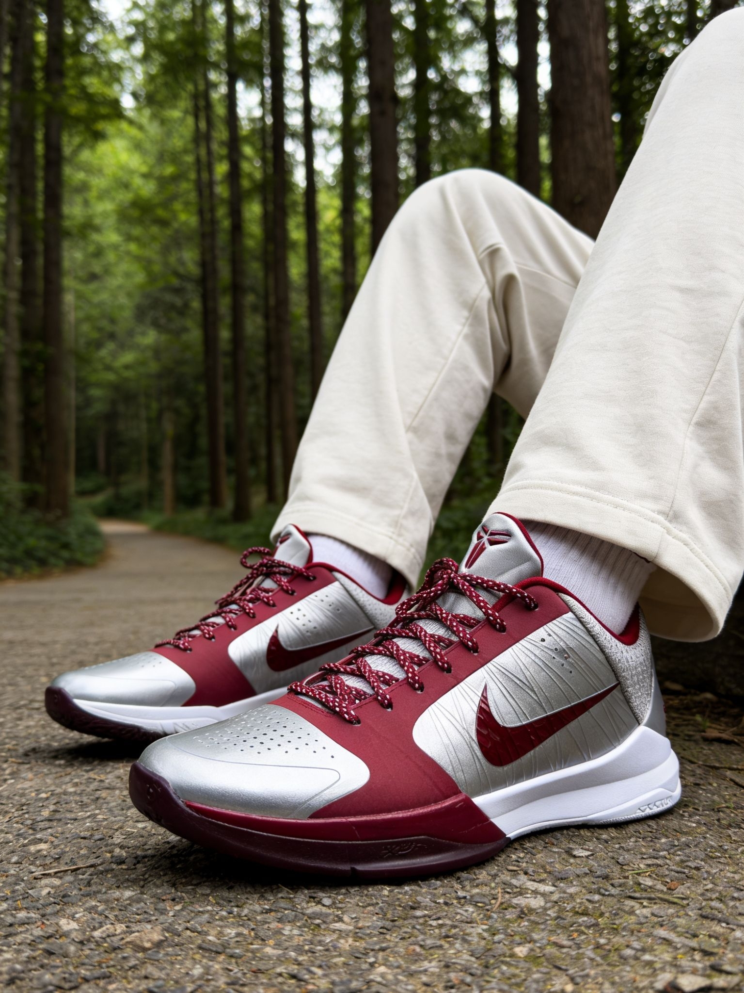 这双Nike Kobe 5 Protro「Lower Merion」,是写给曼巴青春的情书。酒红银撞色复刻劳尔梅里恩高中客场配色,后跟黑桃A与33号刺绣,藏着科比少年时的热血与初心。 前掌Zoom气垫+碳板抗扭,启动弹射感拉满,急停变向稳如磐石,实战性能拉满;金属银鞋面自带复古光泽,球场吸睛、日常出街都能打。