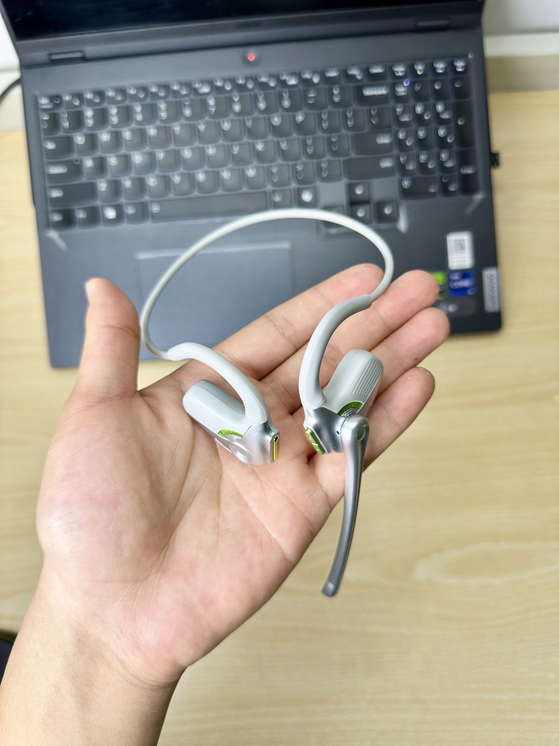 这种开放式电竞耳机我也是第一次佩戴 没想到游戏体验感还是挺不错的 相比较于传统的耳机🎧 这种开放式耳机贴合耳部戴着很舒适 还有着磁吸耳麦 在游戏中与队友沟通很清楚 耳机只有25g大小,拿在手里很轻 戴上试玩了几把游戏,游戏中队友的脚步声、敌人换枪按技能声音都听得很清楚!
