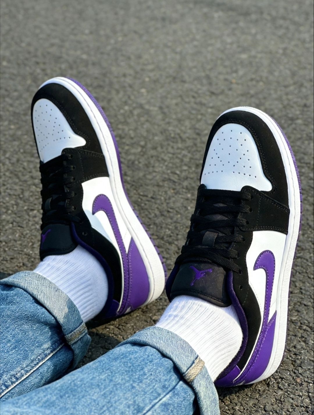 拿下一双!!!! “兄弟们,别再追那些花里胡哨的爆款了! 这双黑紫AJ1低帮才是真·百搭王! 黑+白+紫撞色,低调又有辨识度,配牛仔裤、运动裤都好看, 上班通勤、周末出街,随便一套都能出片。 皮革鞋面耐造好打理,脏了一擦就干净, 低帮设计不闷脚,走路久了也舒服, 学生党、上班族闭眼冲,这双能陪你从校园穿到职场!”
