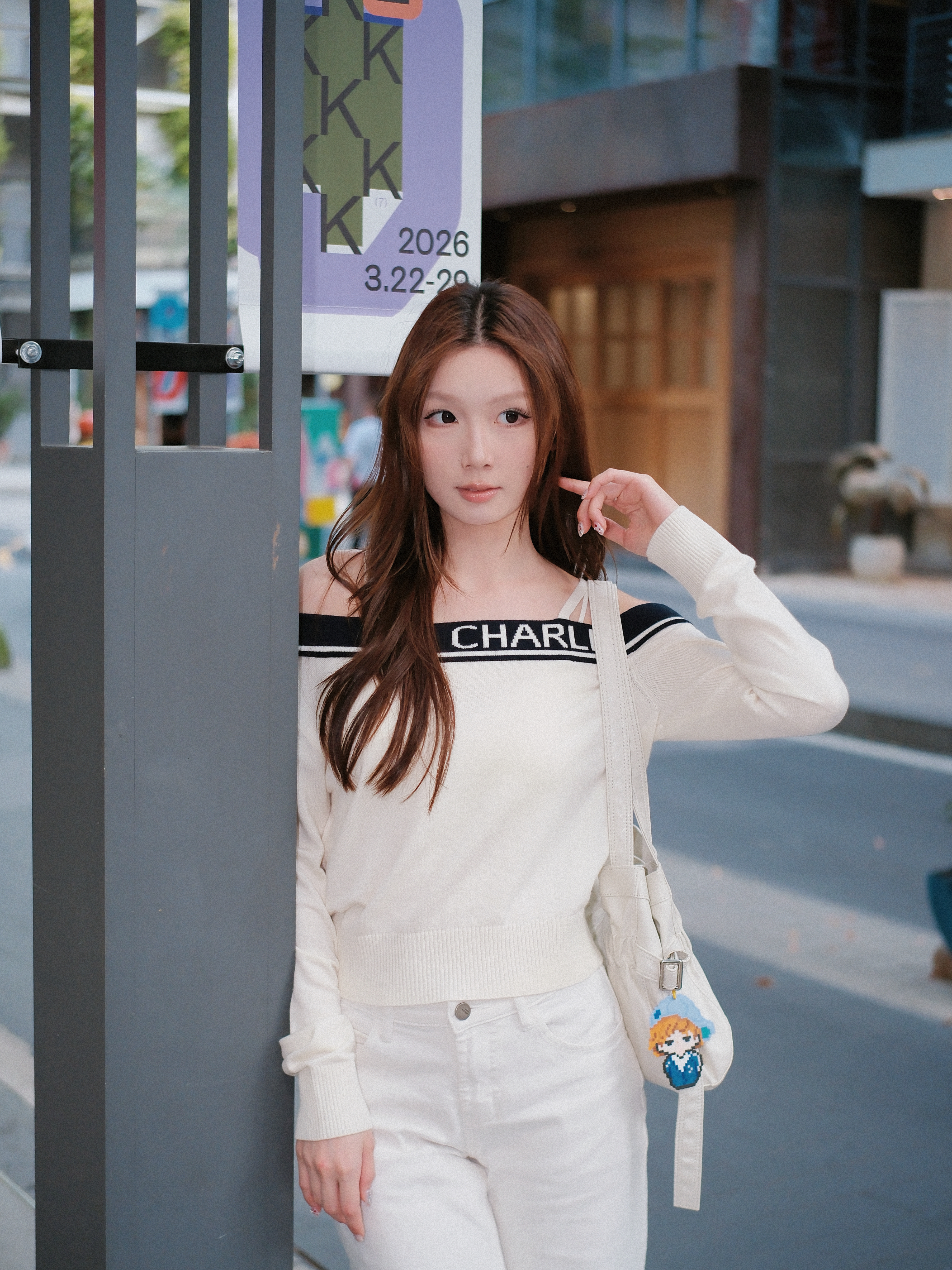 今天下午终于安排上跟朋友的citywalk🚶♀️ 穿了一直想试的纯白look 意外地好拍 斜肩针织衫是那种低调又百搭的单品 一边露肩刚刚好 不会太over 针织的纹理感让白色一点都不单调🍃 下面搭了条同色系的休闲长裤 白色一整套穿起来 整个人显得特别干净清爽💨 单肩包也选了白色系 主打一身白 下午三四点的阳光太温柔了 白色衣服被照得暖暖的 随手一拍都好看💯 跟朋友边逛边拍 一点都不会觉得拘束