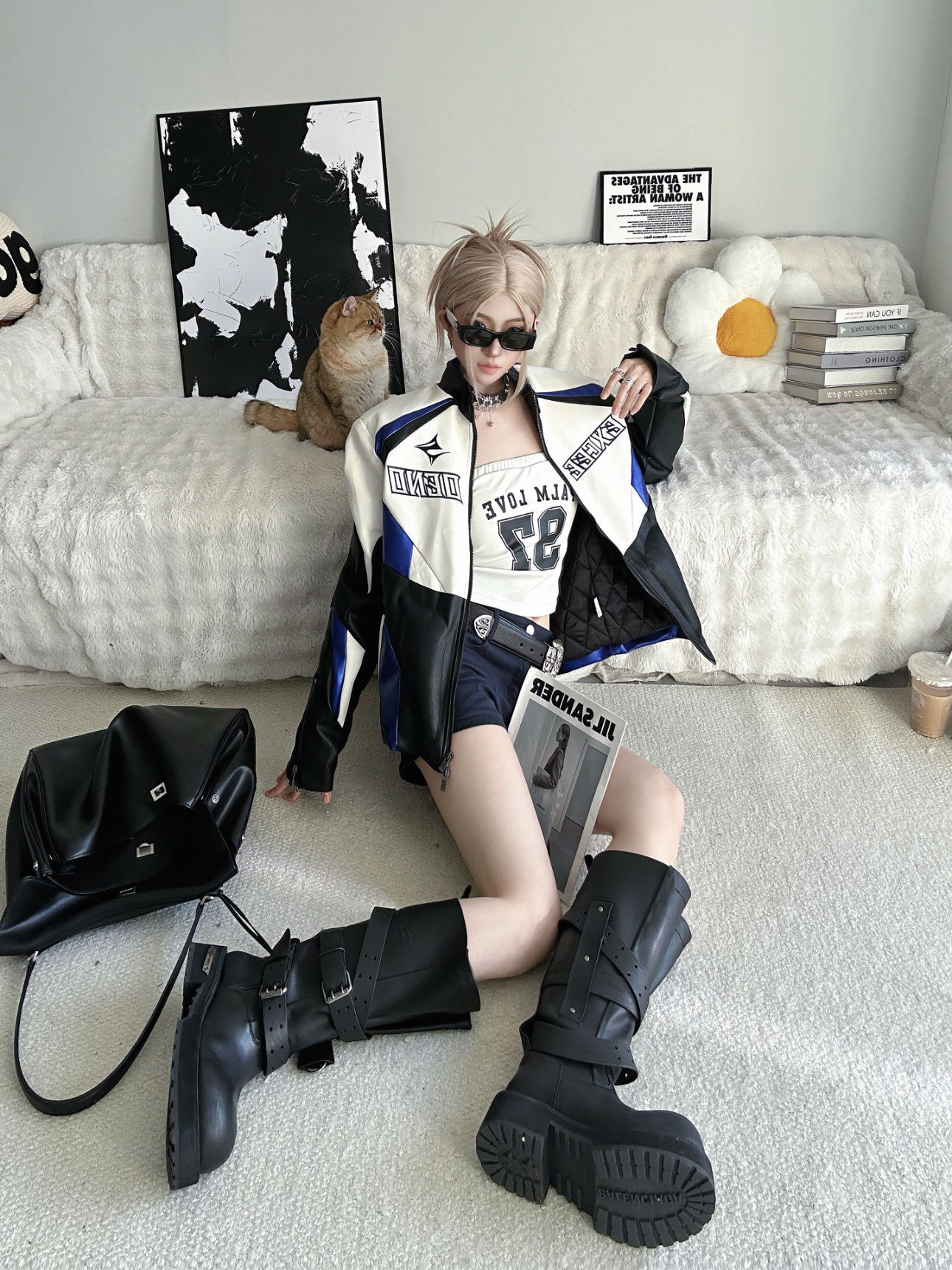 又是被帅到的一天٩(๑^o^๑)۶ 上身廓形剪裁设计皮衣棉服 很修饰身形 感觉肩膀直接被架起了 无痛拥有直角肩 内里是夹棉的 里面简单搭配一件打底即可👌 下身搭配短裤➕长靴的组合(⁎⁍̴̛ᴗ⁍̴̛⁎) 这套机车风皮衣真的直接就是夯_(:з」∠)_