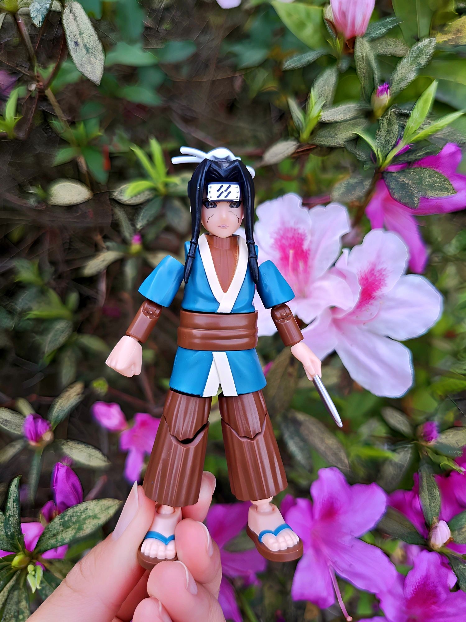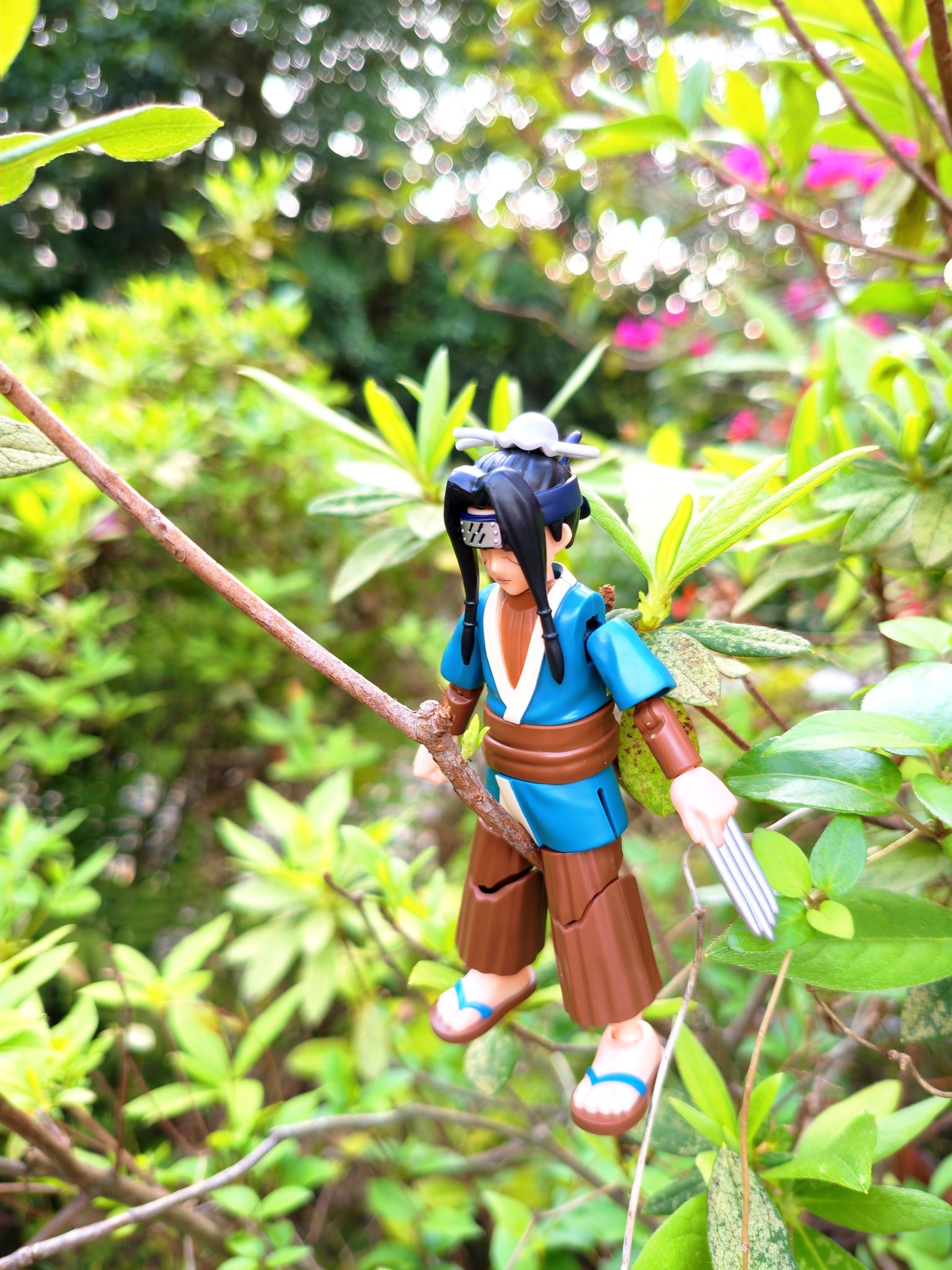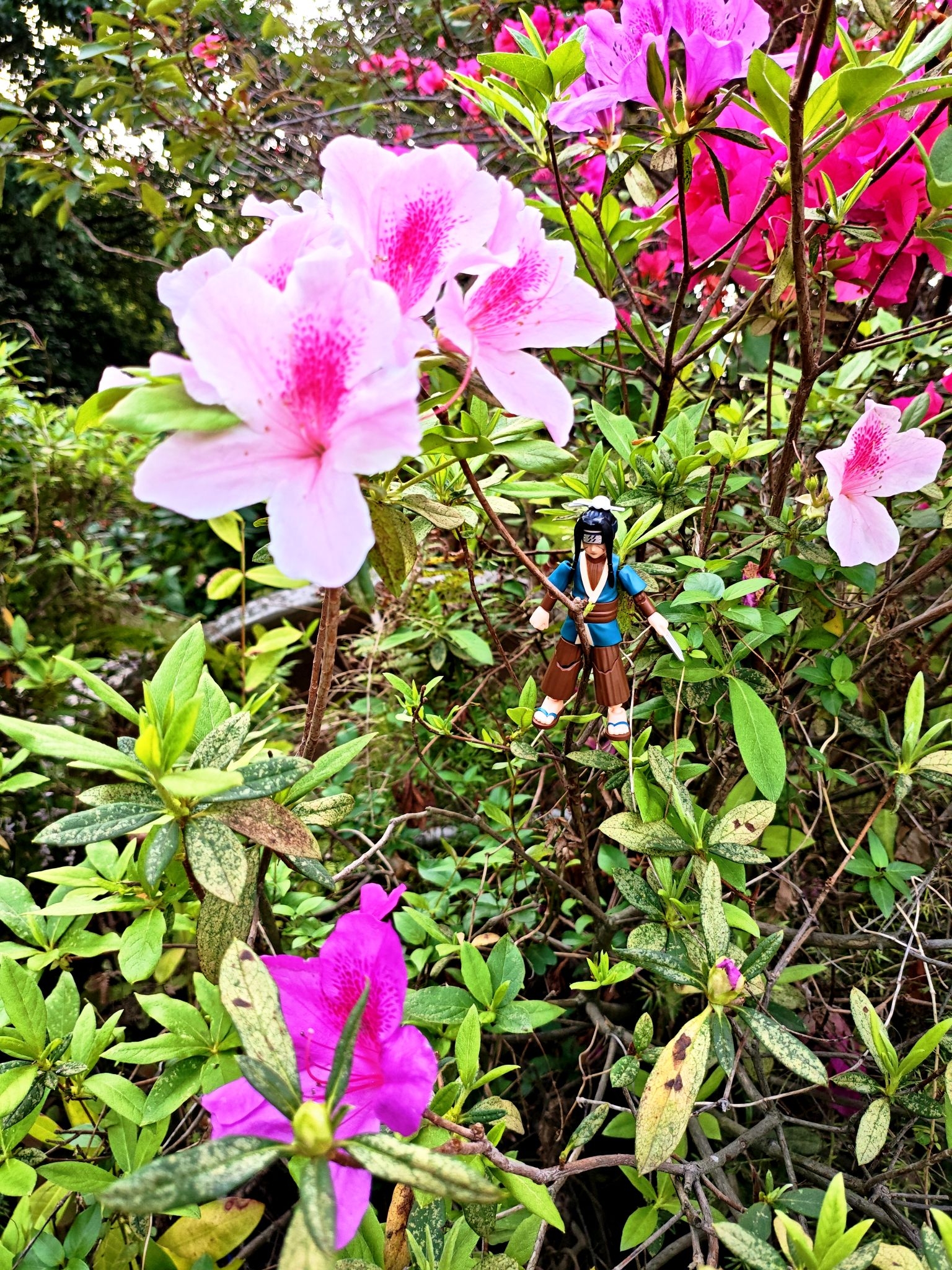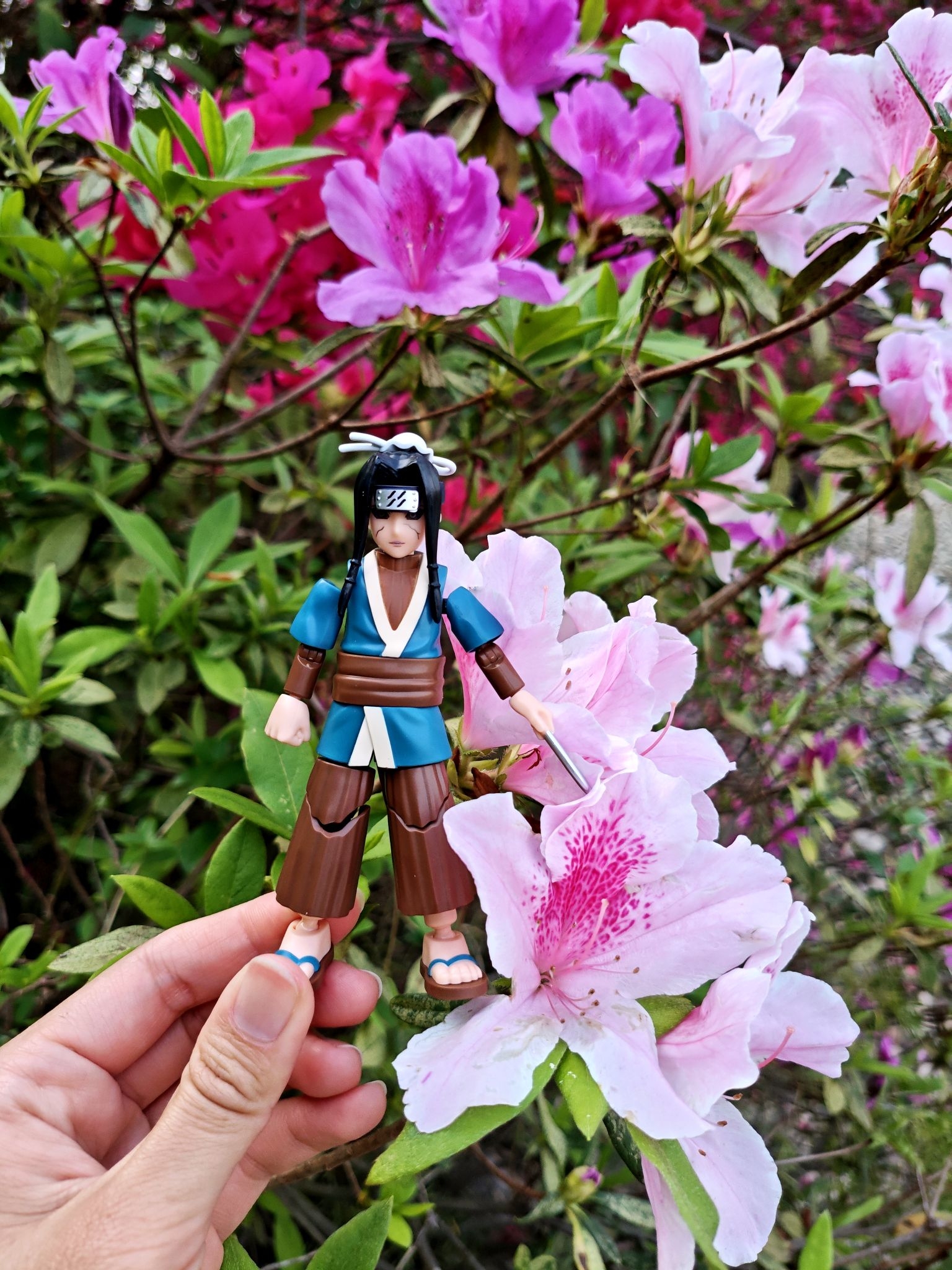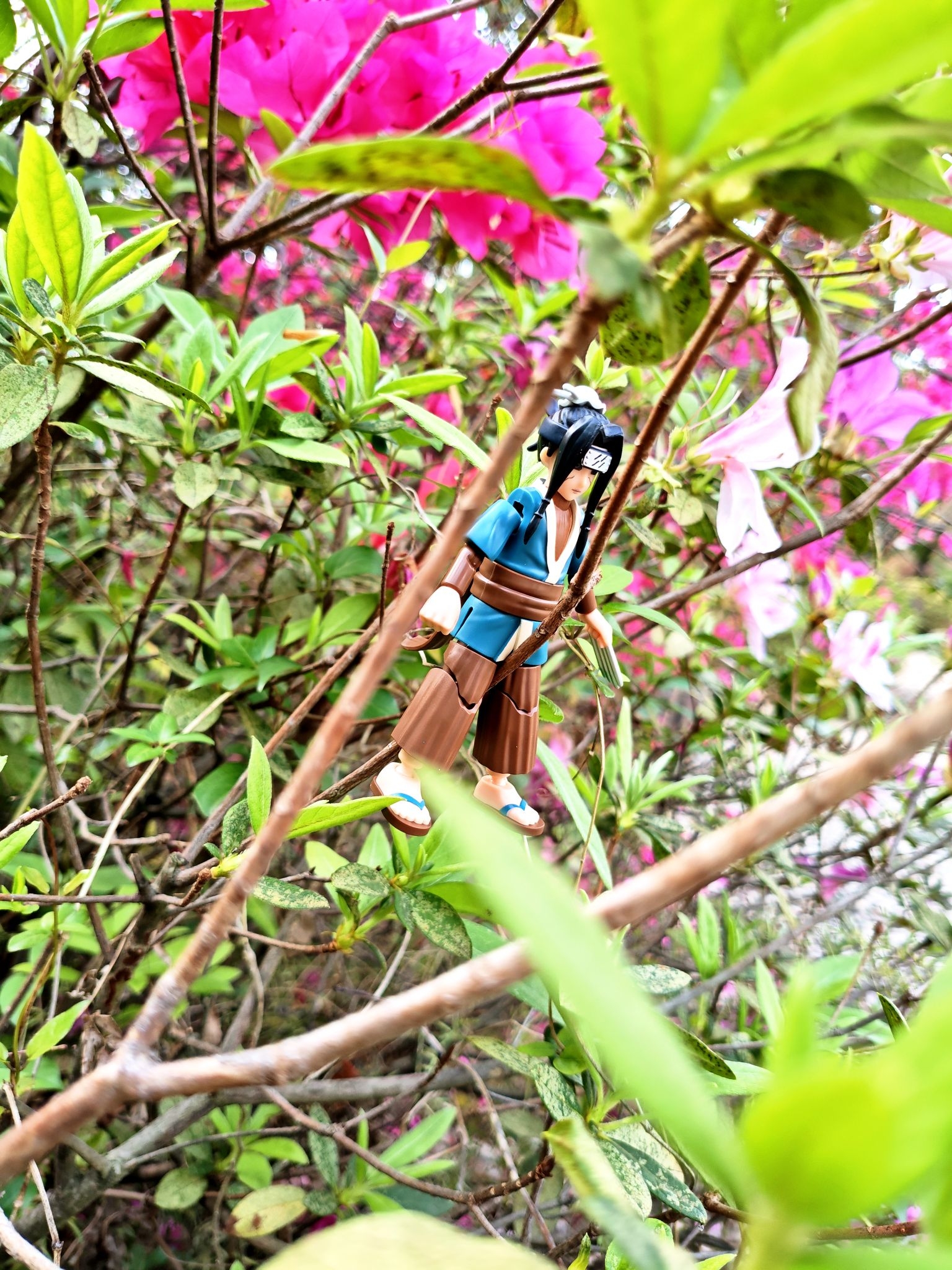 带手办出门拍照太快乐了🤣 把宇智波小少爷挂在花枝上, 粉花绿叶衬得他好温柔, 完全是动漫里走出来的画面感~ 春天就该这么玩,把喜欢的角色装进春天里🌱