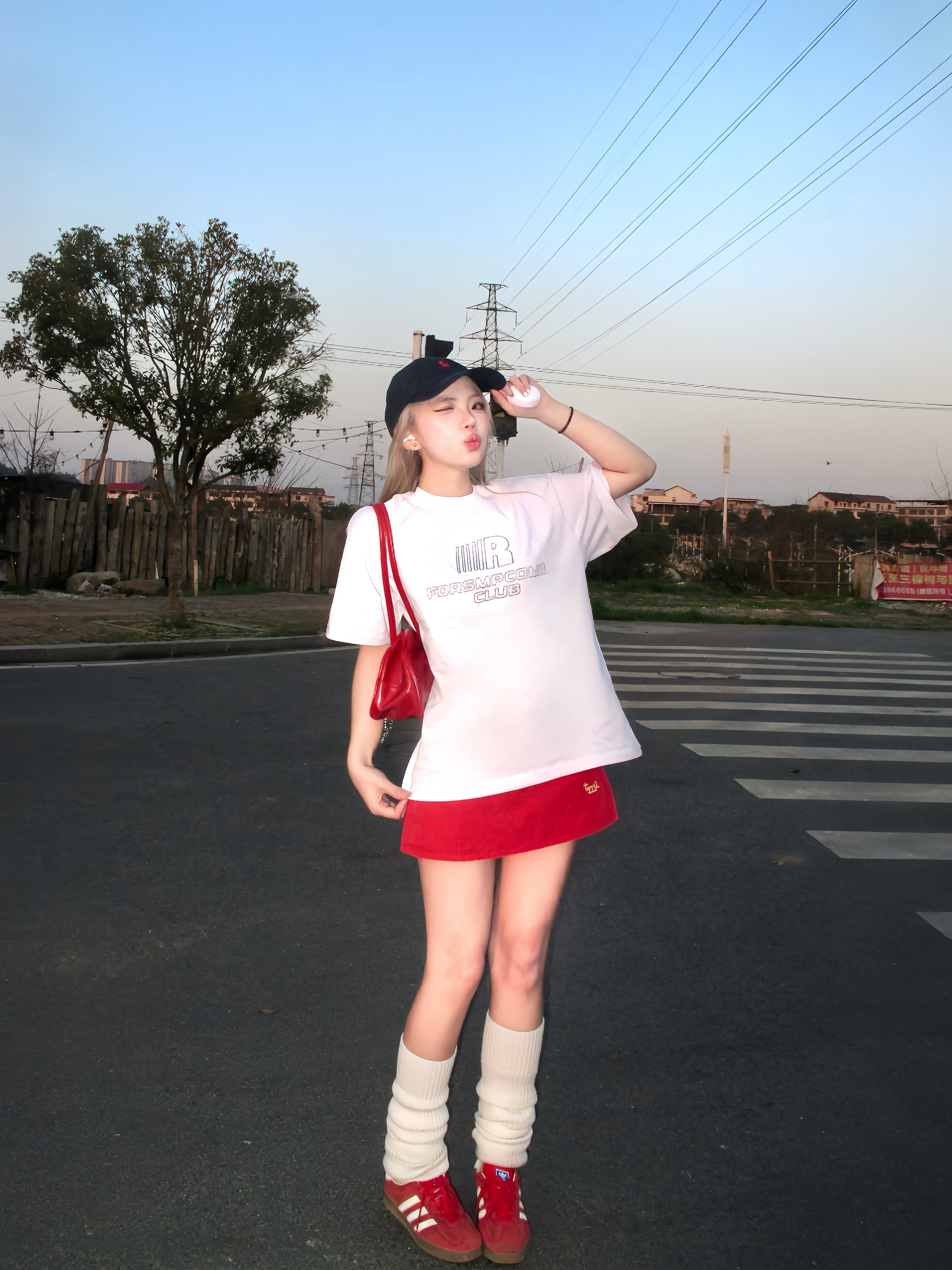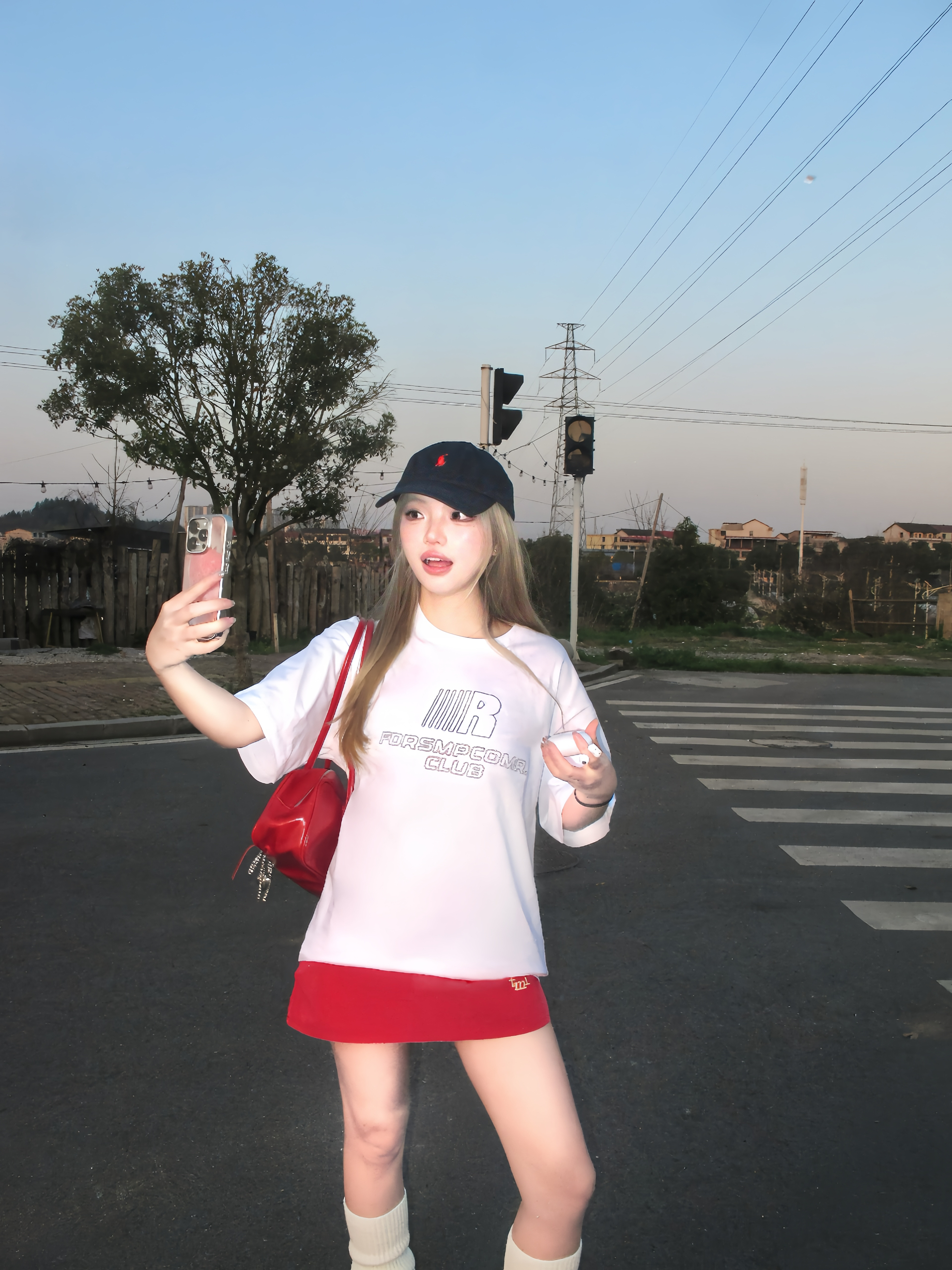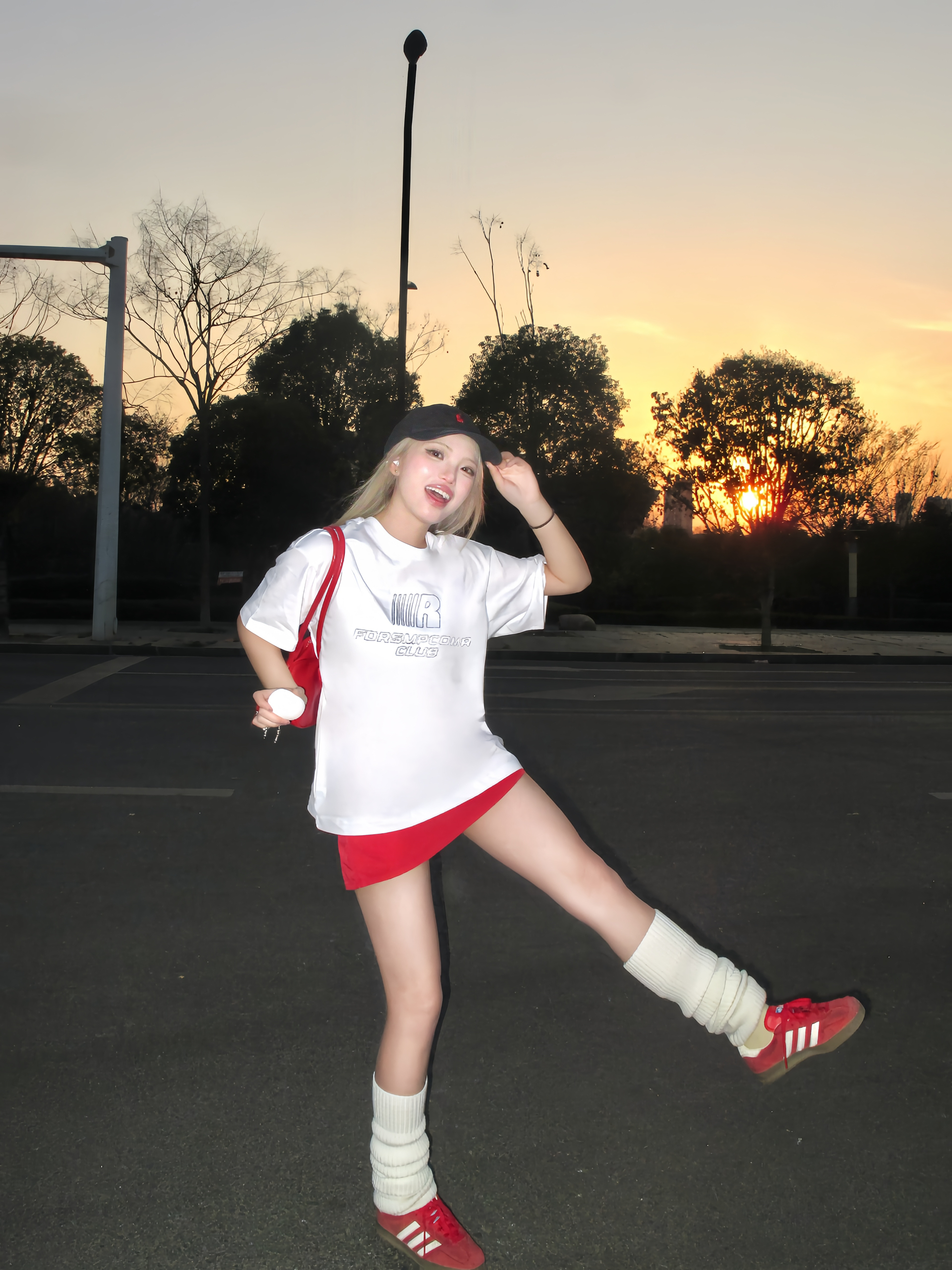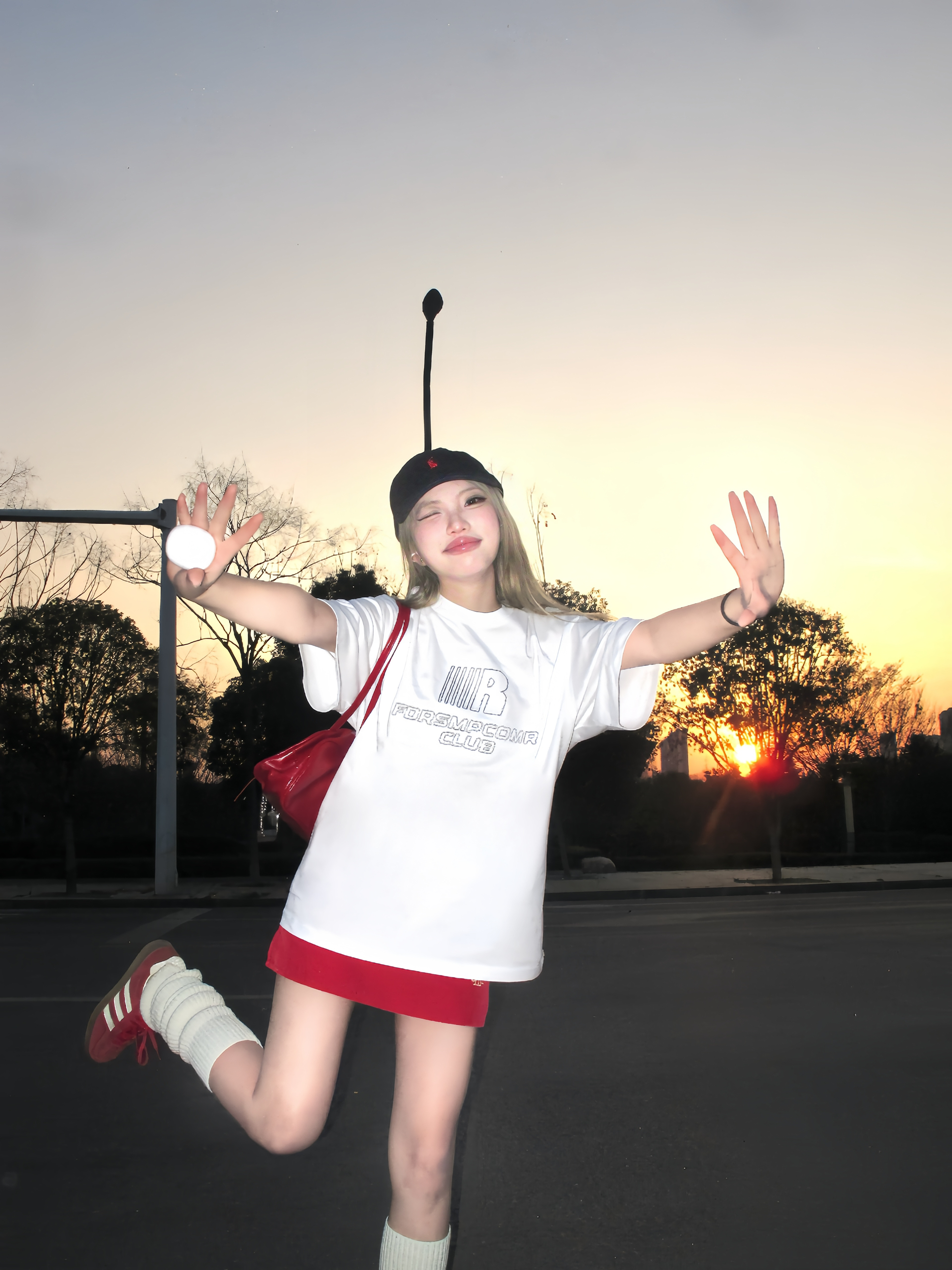 在某天的傍晚日落时分 你要和我一起共享心跳吗? 穿白色t恤搭配红色短裙 衣服有版型,穿起来干净清爽 我的穿搭和我心跳一样热烈❤️ 一套白红穿搭搭配棒球帽 好🈶韩女感! 戴sanag耳机,珠光白颜色我爱了 续航持久,散步一下午都👌 戴上和crush一起感受当下 尊嘟很美好😊