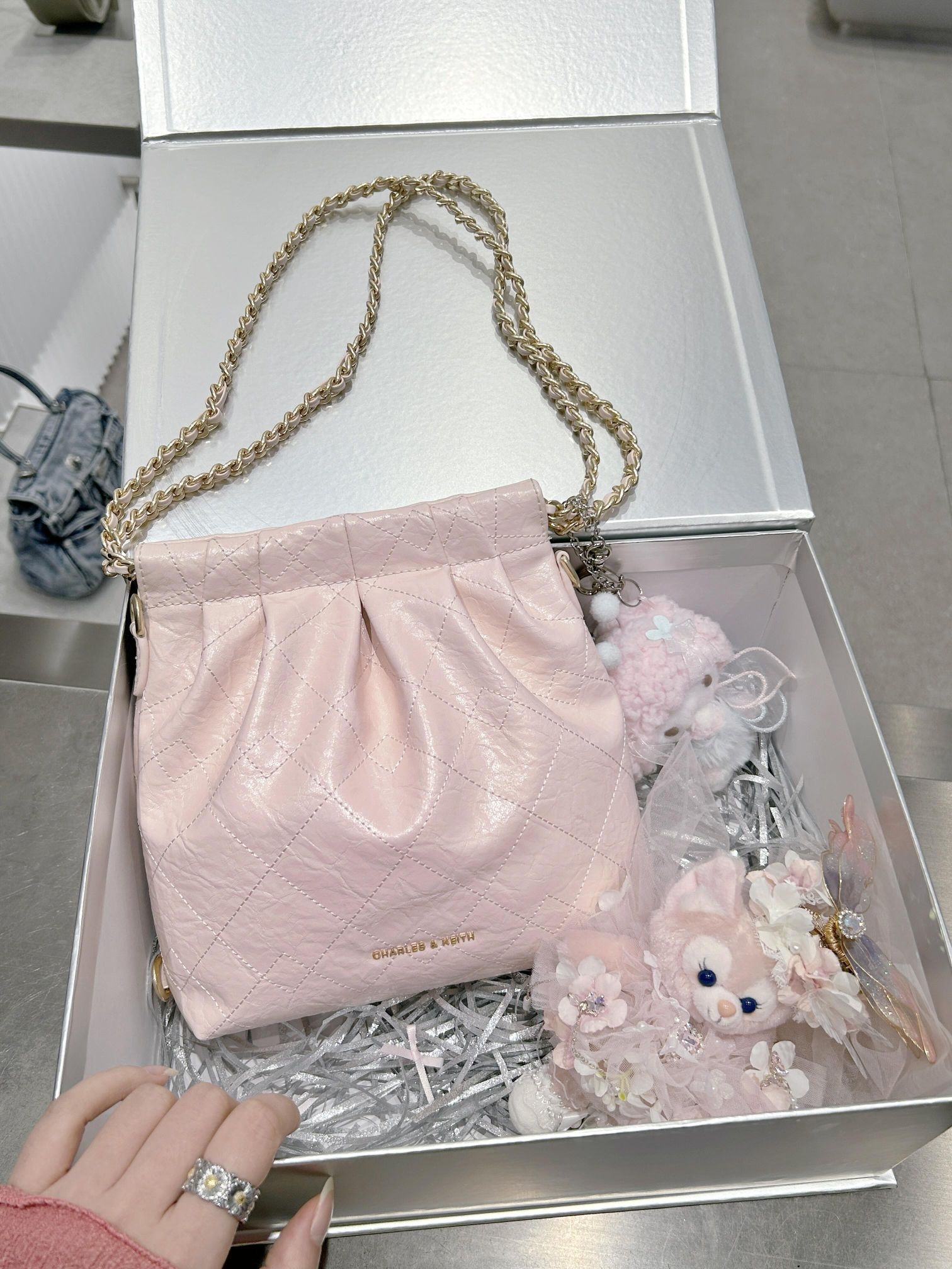 本篇笔记关联了CHARLES&KEITH 小号 菱格织物蝴蝶结合成革链条三合一流浪包双肩包腋下托特包斜挎单肩包 粉红色等商品,为用户提供真实的使用体验和购买参考。
