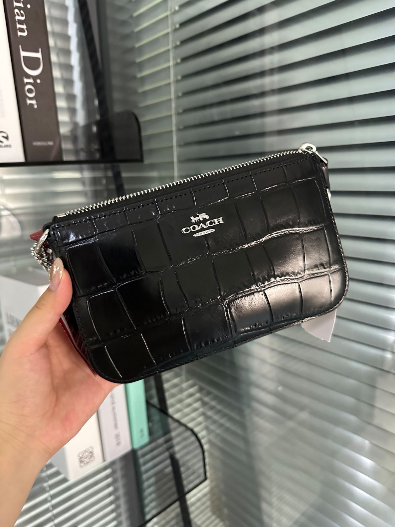 #COACH 鳄鱼纹牛皮太太太有质感了吧,平时看着还好,灯光下怎么这么给力,错落的纹路和黑皮的质感很凸显,真的很有排面!