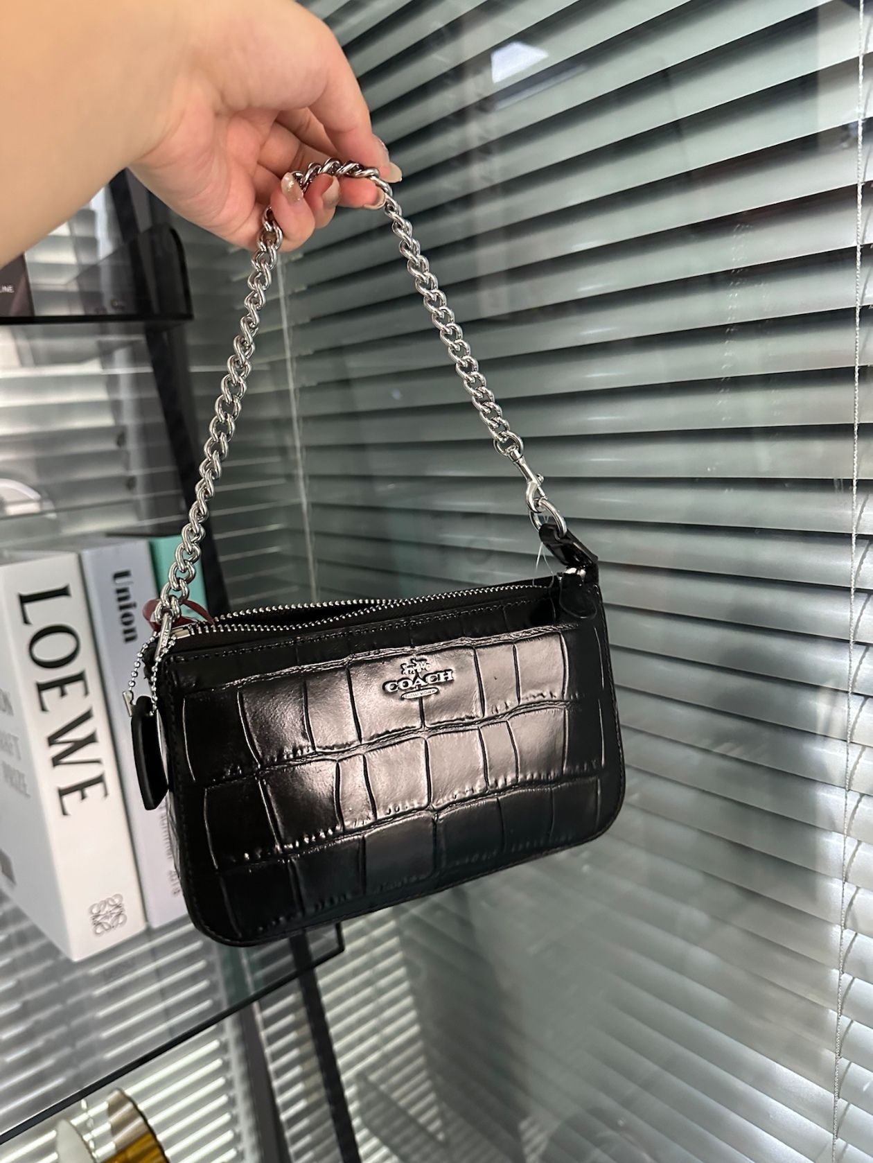 本篇笔记关联了Coach Nolita 19 小号 鳄鱼压纹皮革链条拉链开合鳄鱼纹压花牛皮单肩包腋下手提包 银色金属/黑色等商品,为用户提供真实的使用体验和购买参考。