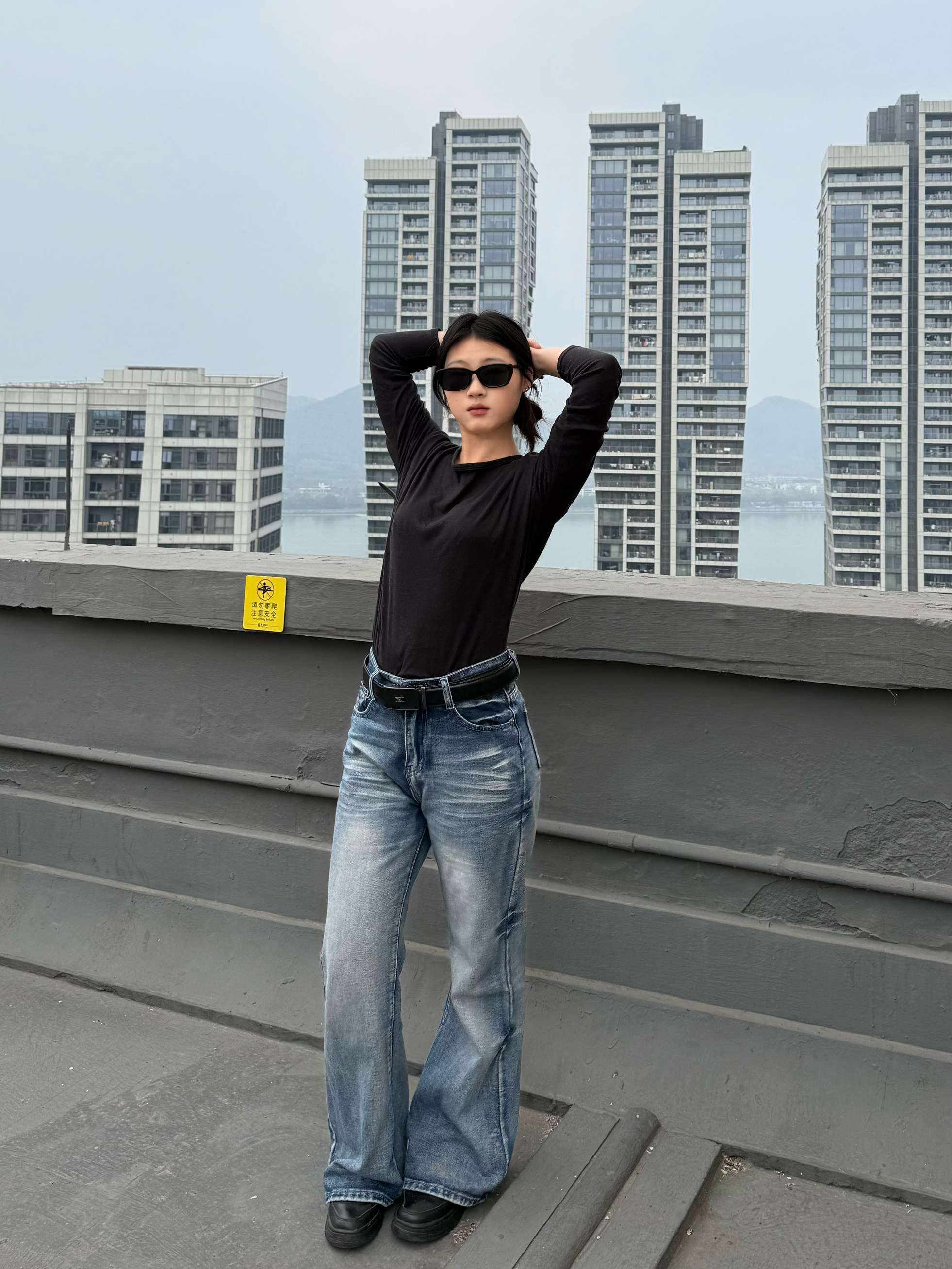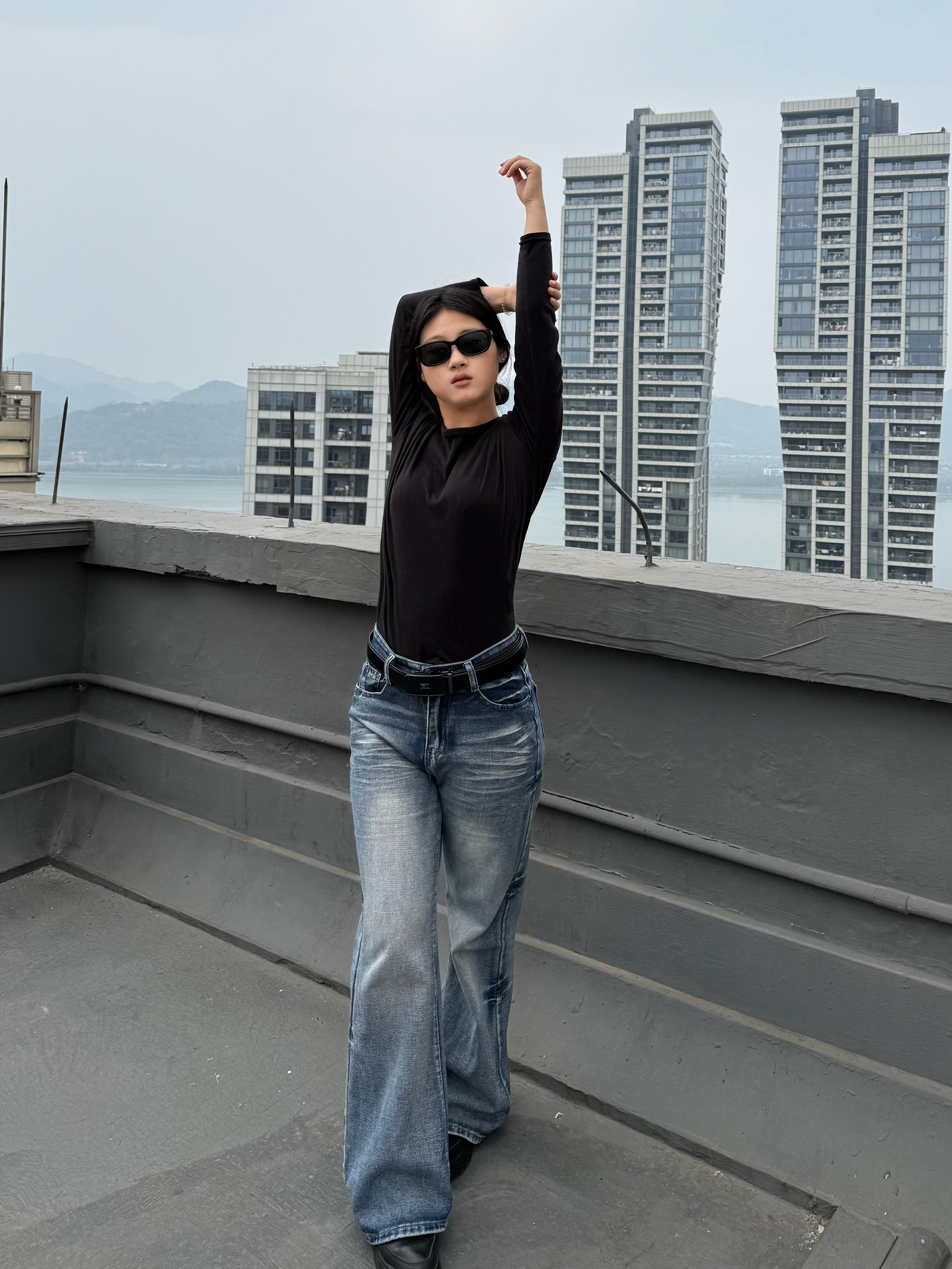 已美美穿上集修身和阔腿于一身的中腰牛仔裤!🤓🤓(161 51 裤脚未裁剪
