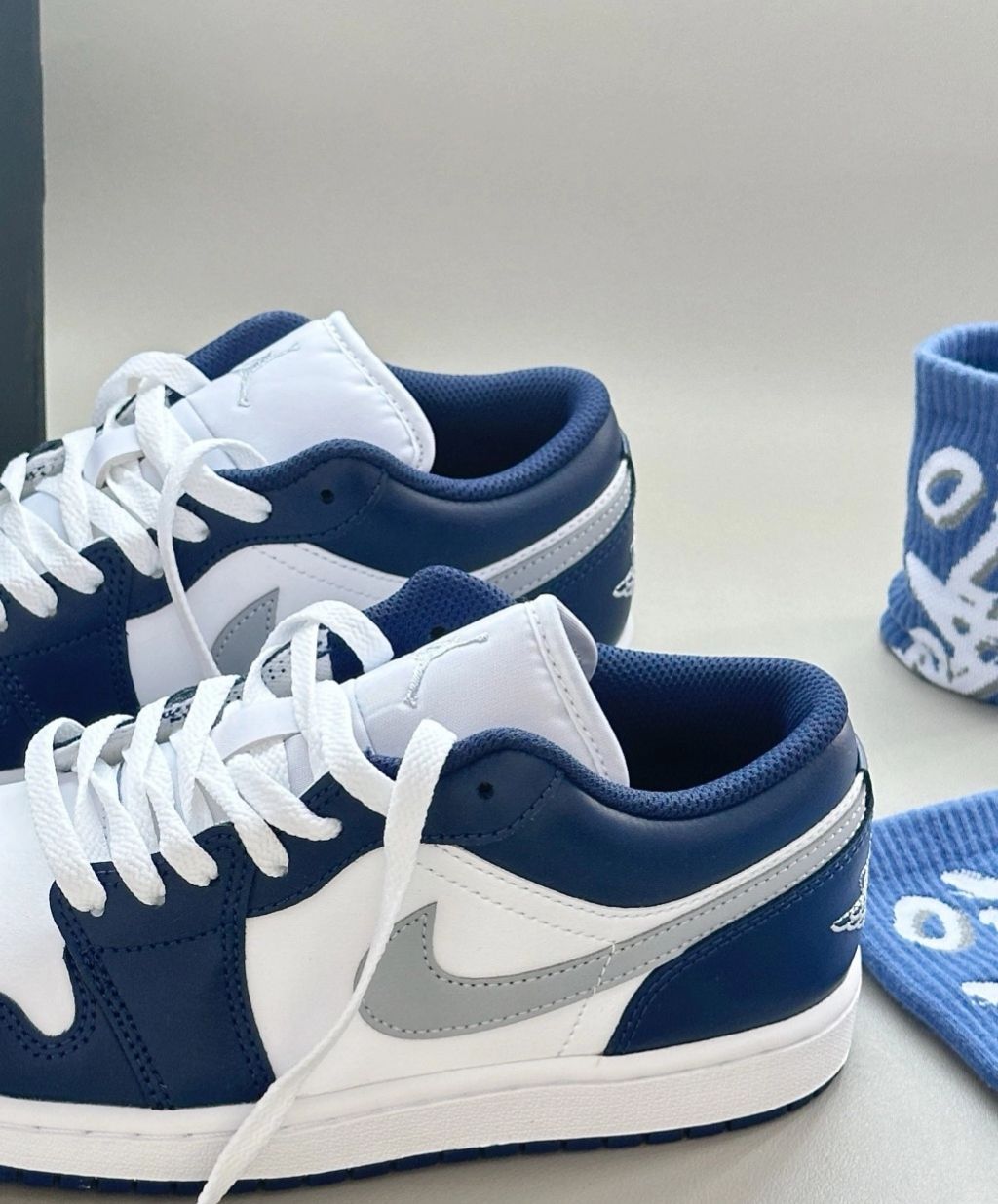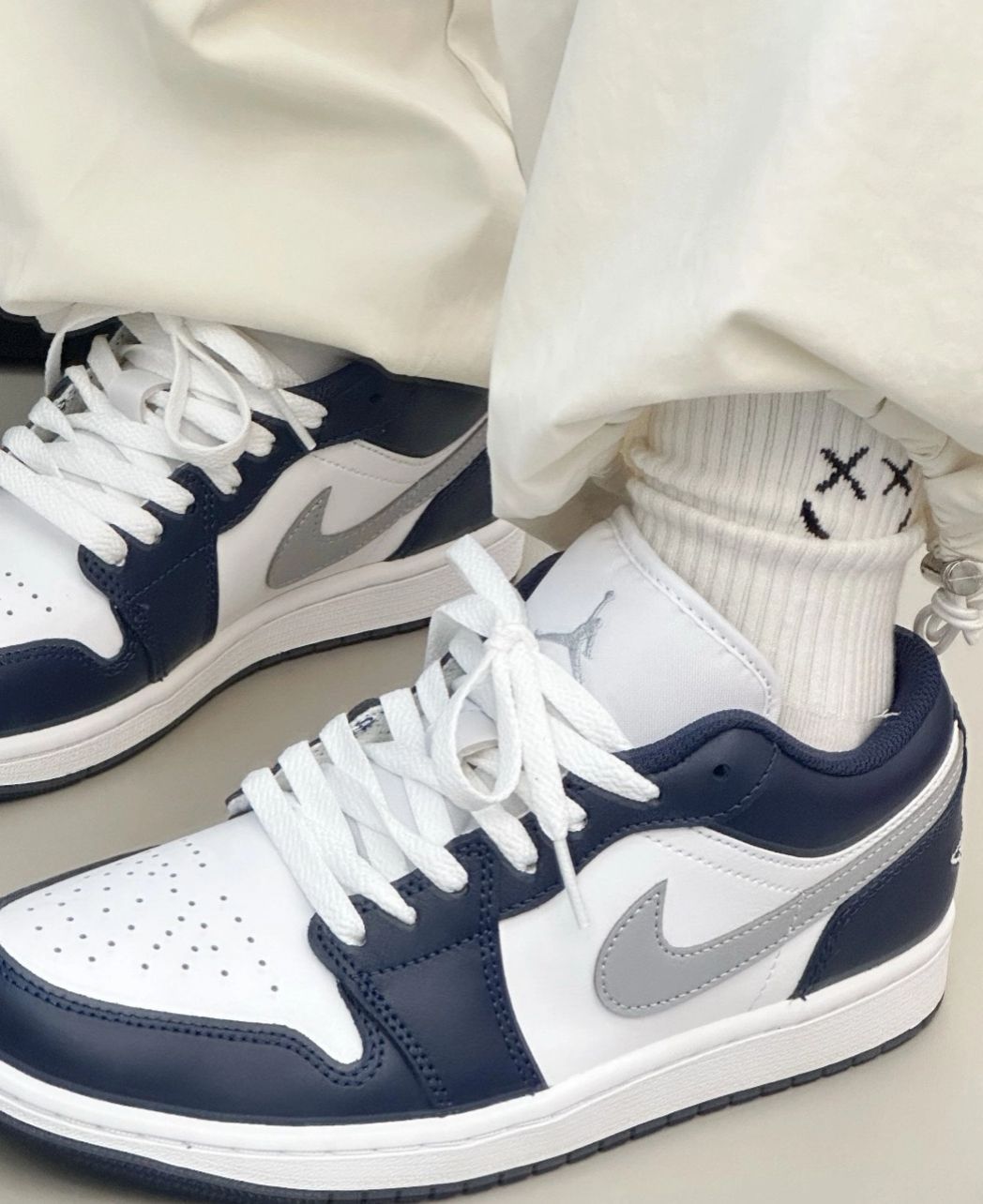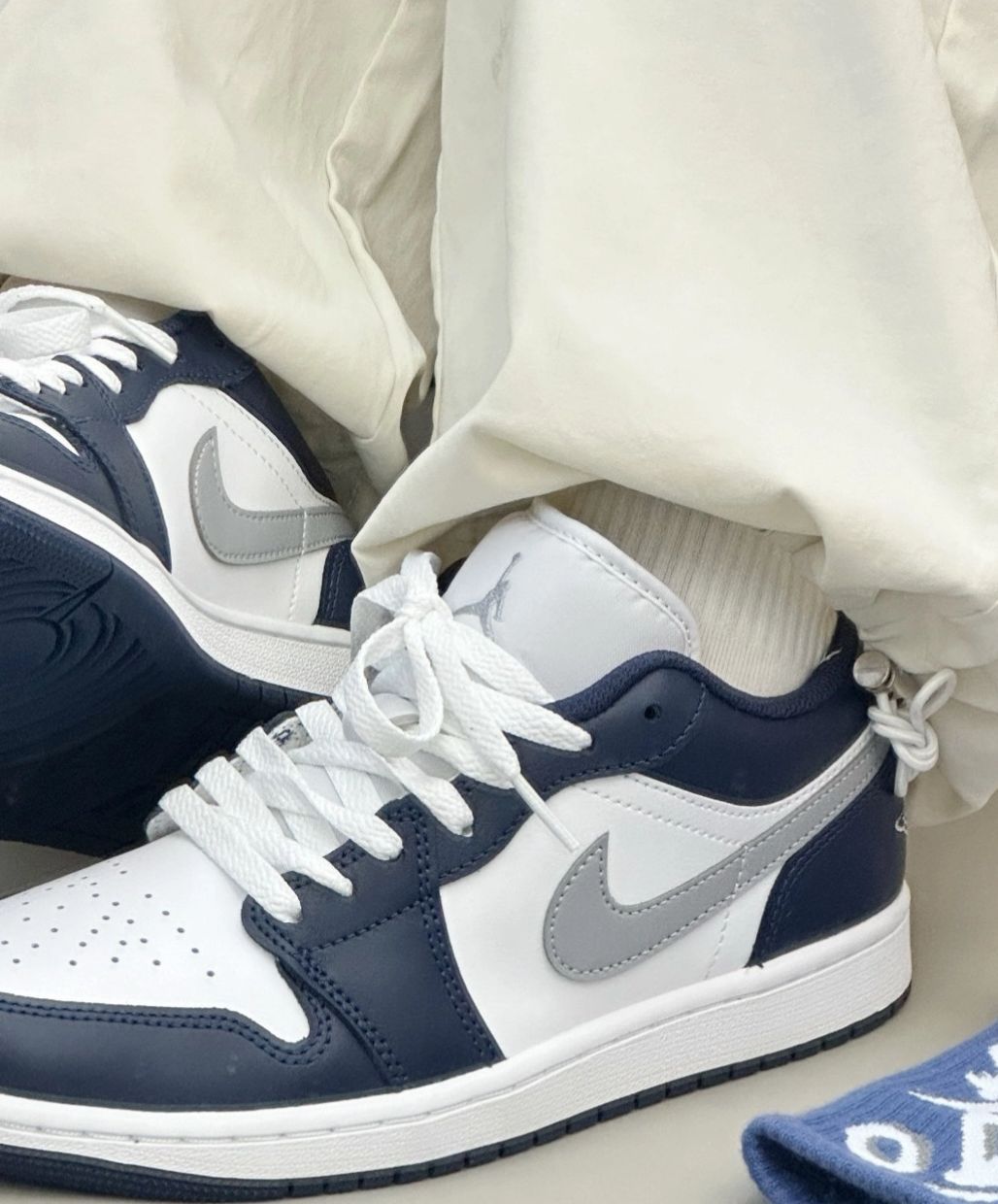 最近常穿这双Jordan Air Jordan 1低帮👟,海军蓝+干净白的组合,狼灰Swoosh点缀,织物合成革鞋面透气又有质感~ 周末和朋友压马路🌸,穿浅蓝直筒牛仔裤+白T,外搭浅灰卫衣,朋友说“你这鞋配色好清爽,和今天穿搭超配”😎。走路舒服不磨脚,随便一条裤子都能搭,搭配率真的高~ 尺码正常,我37码穿刚好,瘦脚宽脚都合适;白色部分脏了用橡皮擦🧼擦就行,很好打理~ 你们平时用AJ1搭什么风格...