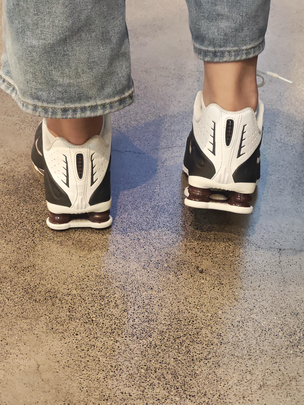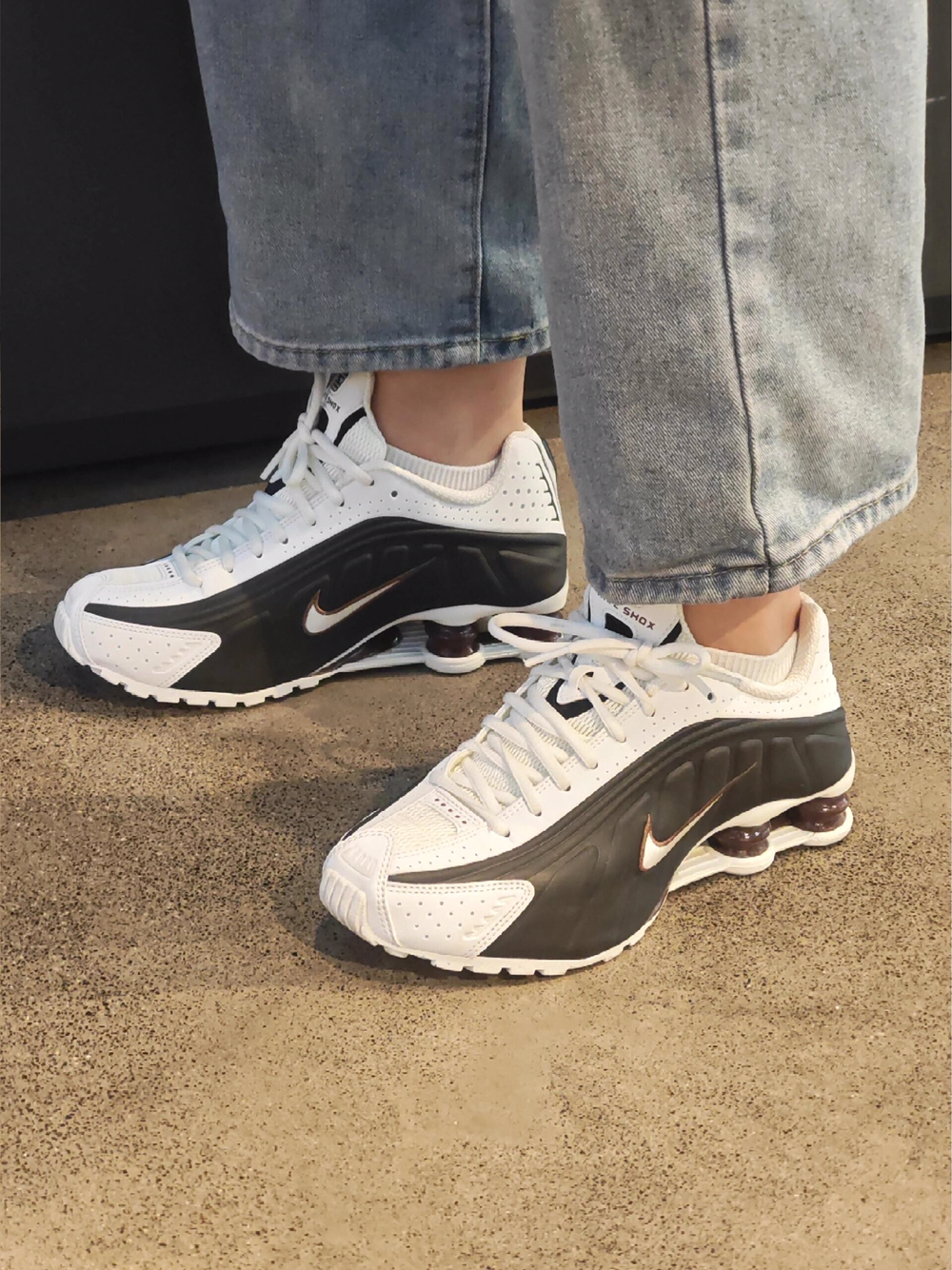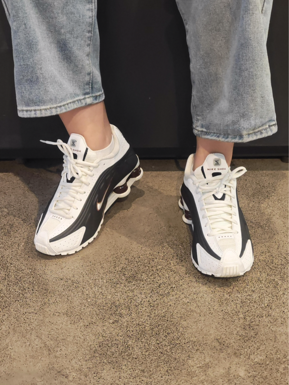 可盐可甜的Shox R4,这谁能不心动⁉️ #期待短裤球鞋的季节 经典黑白配色,简约又高级, 上脚自带利落气场,运动、日常出街全都能轻松hold住。 搭牛仔裤是街头酷感,配运动裤是休闲元气, 换短裙立刻变身甜辣风, 一鞋解锁N种风格,怎么穿都好看。 随便一套都活力满满, 颜值+舒适度双在线,这双真的可以直接冲!