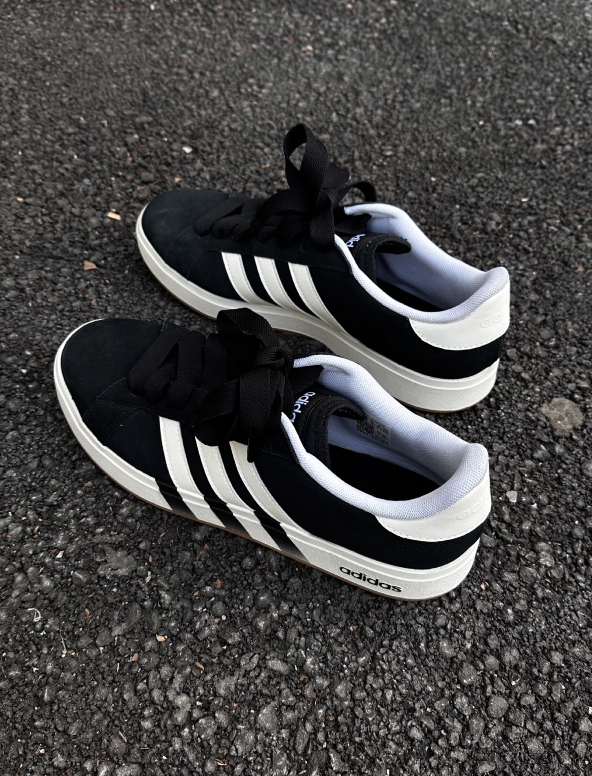 衣柜里一半裤子都能配它!全黑皮面+白条纹,低调不挑人,厚底还能偷偷显腿长,出门不用想搭配,套上就走。穿了大半年没开胶没变形,质感真的绝,懒人直接闭眼入。