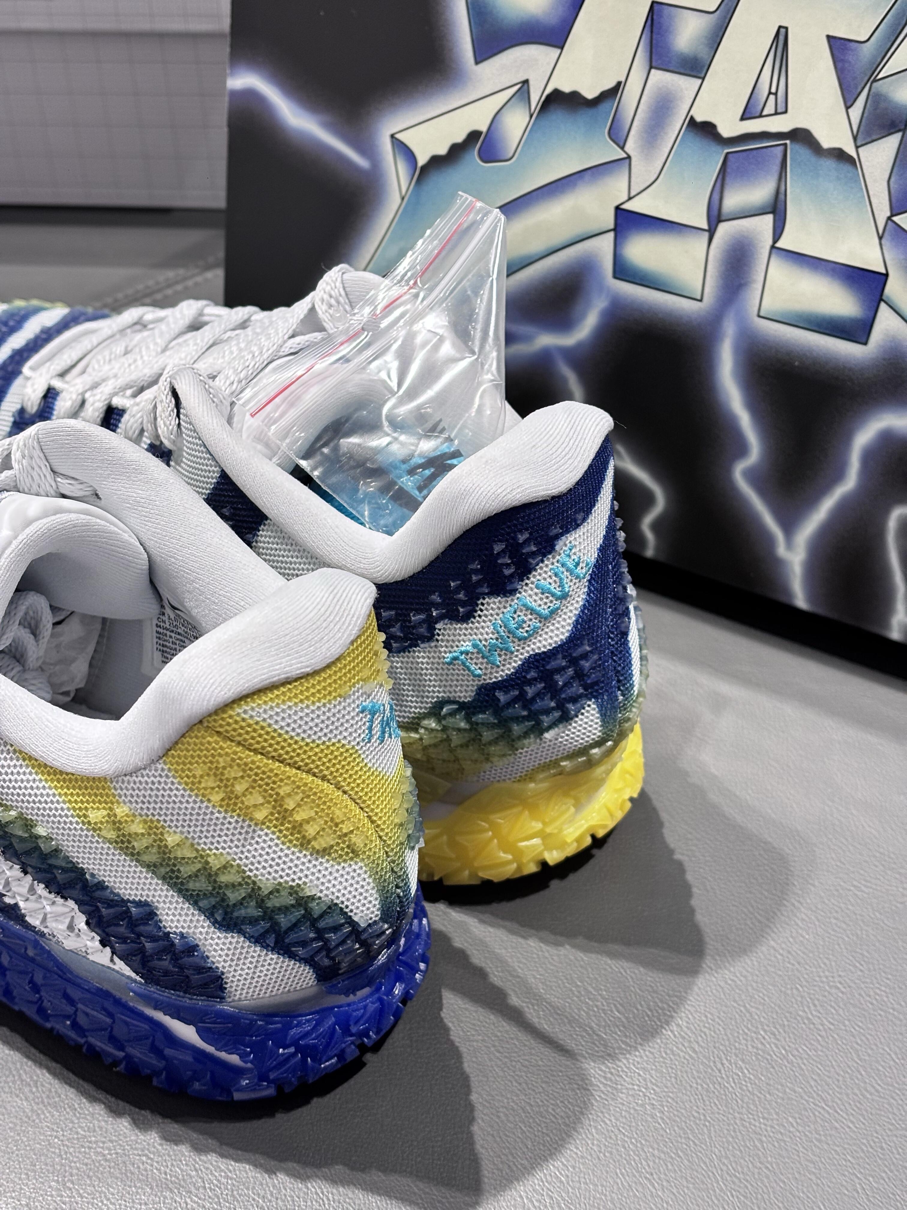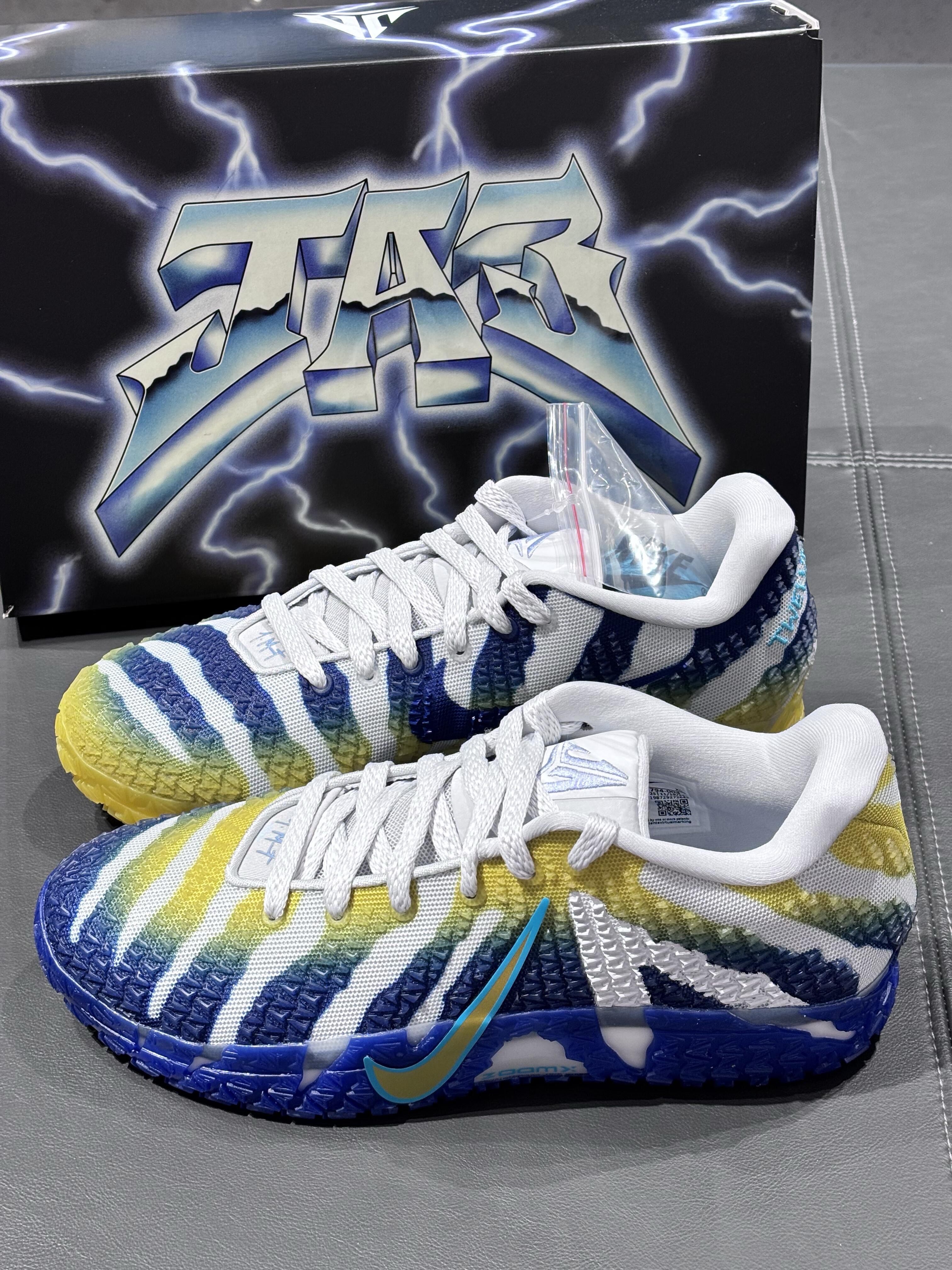 ⚡️斑马纹+闪电元素!这双鞋直接长在我审美上! 谁懂啊家人们!蓝白黄渐变斑马纹也太吸睛了🦓 撞色大胆又不杂乱,潮度直接拉满。 就连鞋盒都做了闪电纹路,配上“JA3”标识, 细节直接戳中潮人DNA,开箱就有仪式感✨ 上脚又酷又飒,气场全开, 不管是上场打球还是街头出街,都能轻松hold住。 颜值够炸,性能也在线, 缓震、抓地、包裹感一步到位,实战颜值两不误。 穿上它走路都自带风,回头率稳稳爆表!