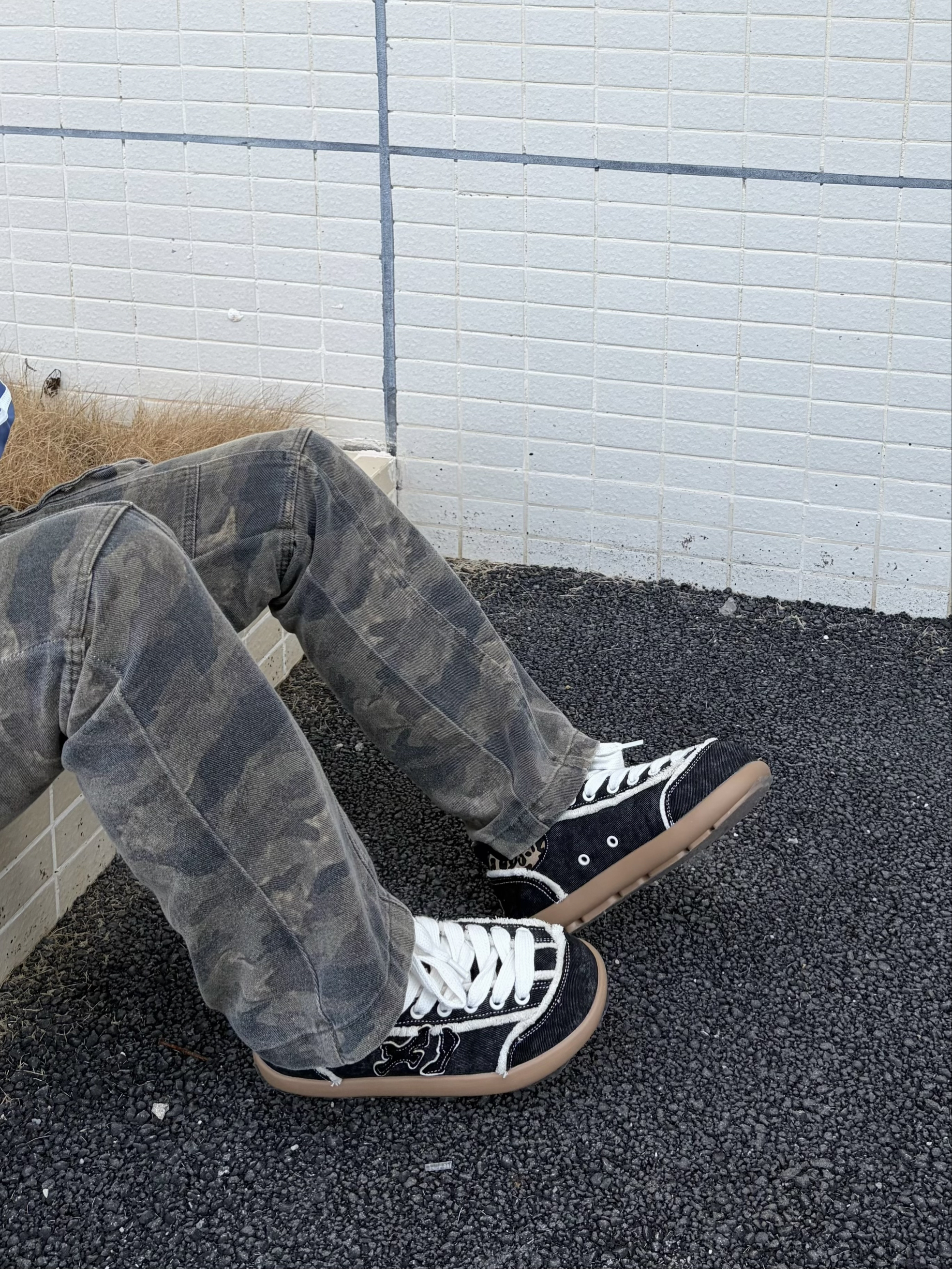 踩上新入的 Q-AND 豹纹板鞋出门晃悠🚶 黑牛仔面料配豹纹拼接复古时尚🕶️ 毛边细节带着随性劲儿🥰 厚底踩着软乎乎的 脚感舒适透气🌬️ 搭件阿迪蓝外套👔和迷彩裤👖 走在路上松弛感拉满🔥 日常出街或通勤都适配🚶