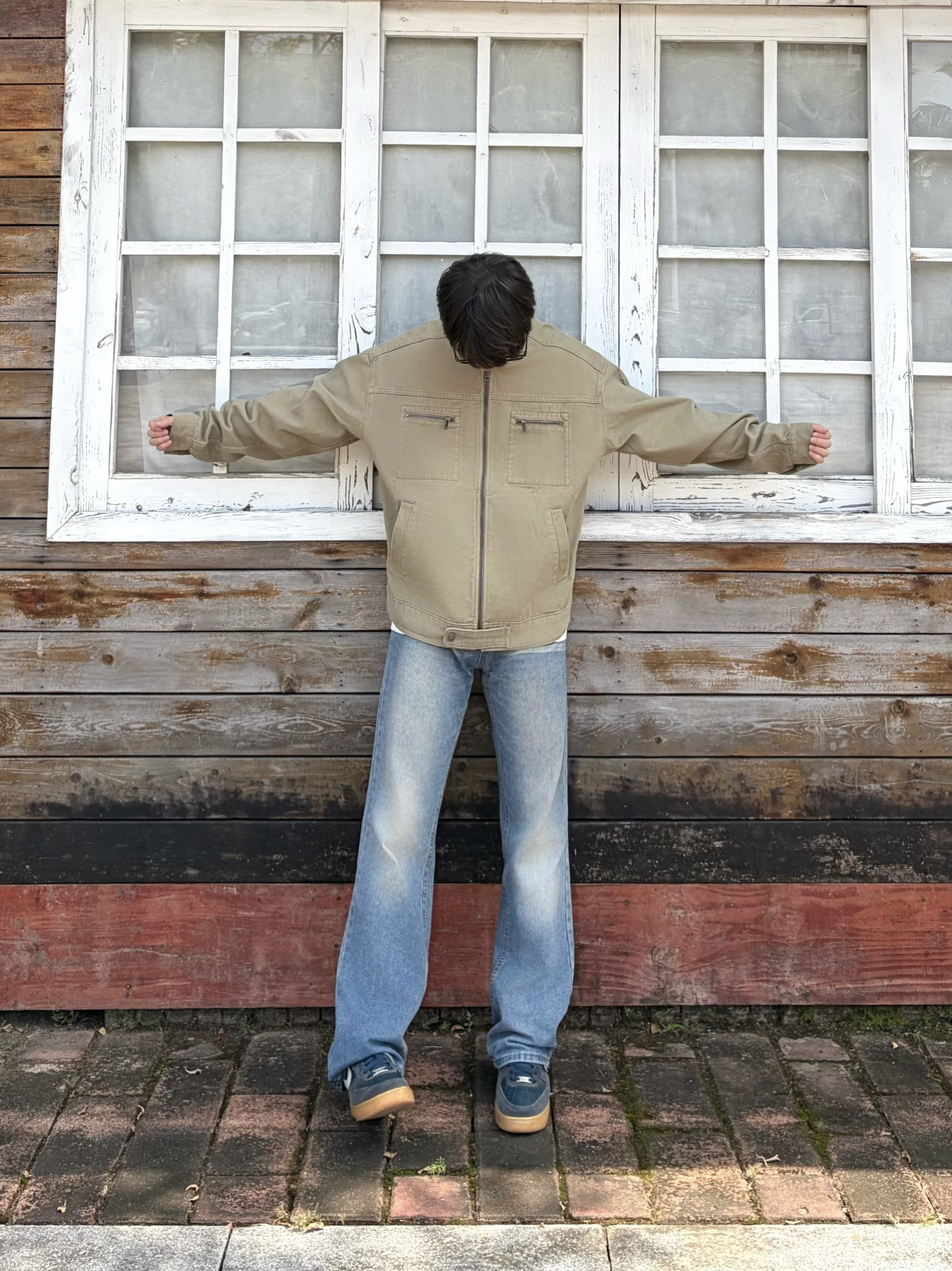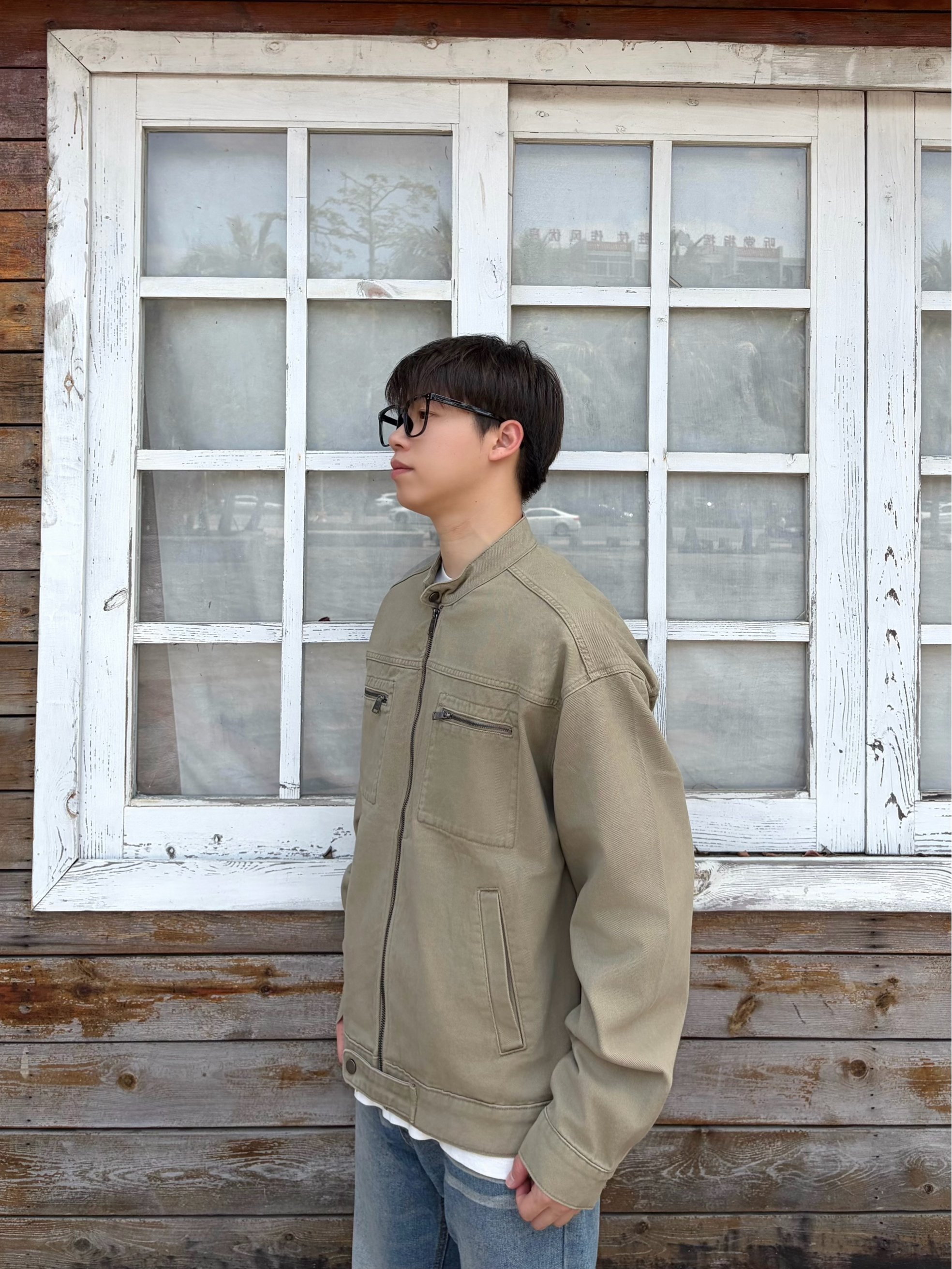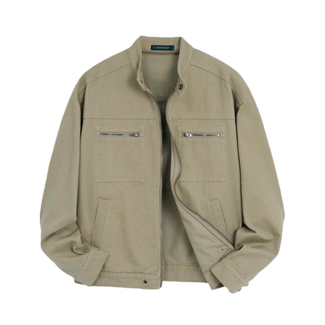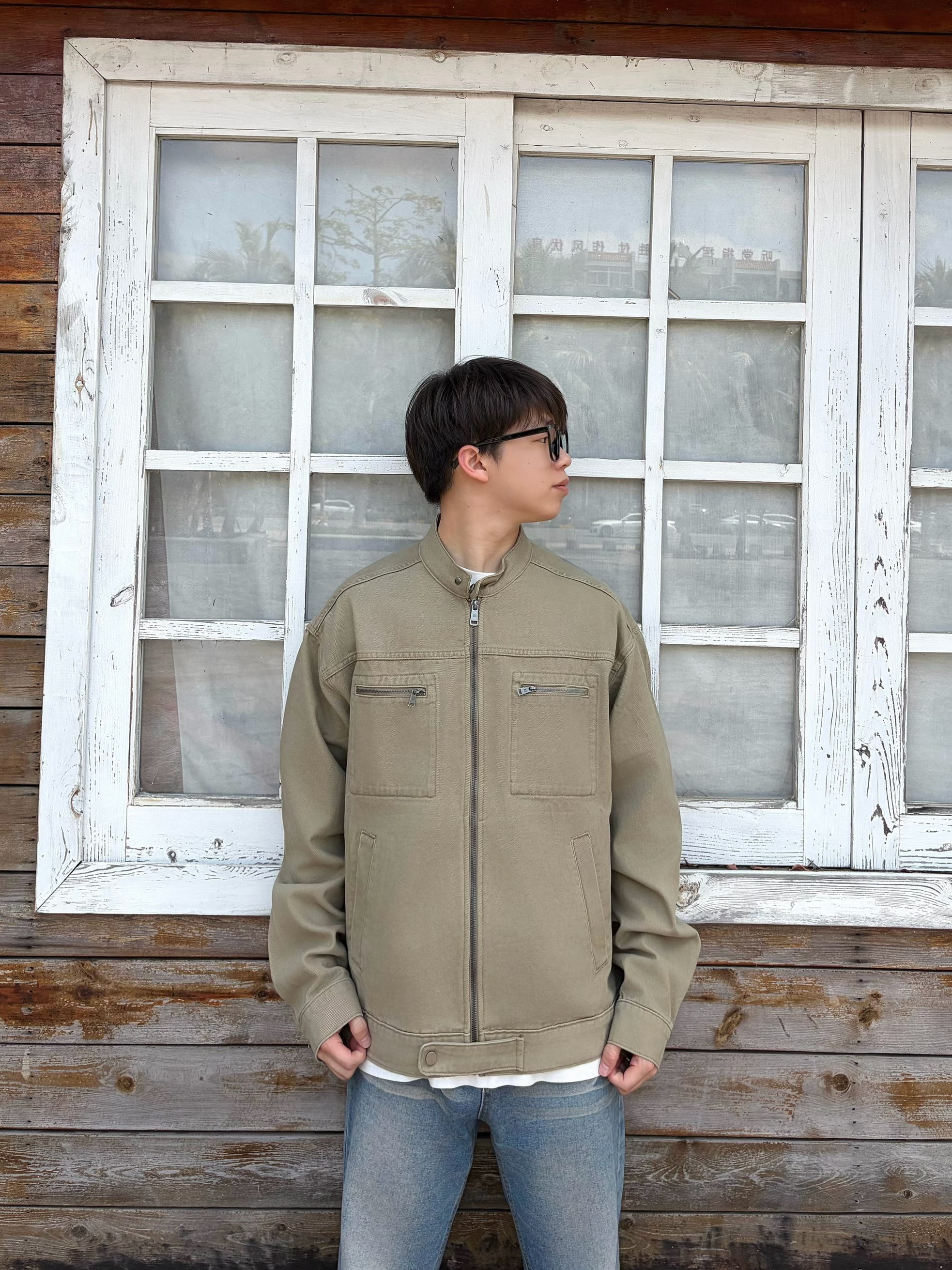 早春出门Citywalk🚶 BD.POWER UP+ 这件卡其色 哈灵顿工装夹克👔简直不要太合适🥰 立领设计利落干净✅ 胸前拉链口袋藏着复古细节 全棉帆布面料上身舒适透气🌬️ 内搭白T➕下身配浅蓝牛仔裤👖 整体造型和老木屋背景格外适配 出街就有美式cleanfit的随性自在🔥