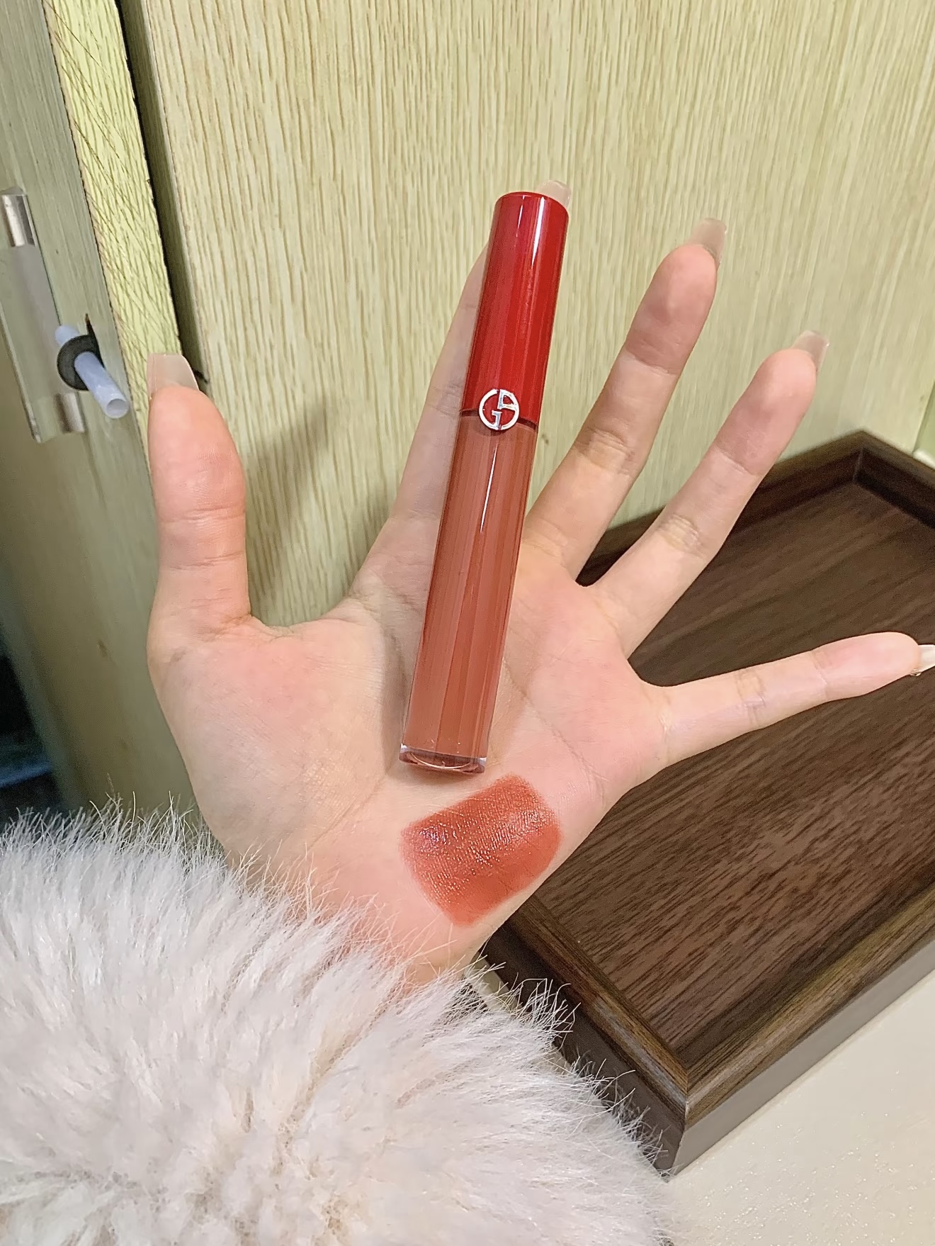 ✨阿玛尼红管214 这根的颜色就很微妙🎄又豆沙又有点橘调❄️显白提气色 厚涂又有点点像红棕 🍑用杏桃两个字形容我觉得比较恰当🥰🥰 白皮的姐妹可以放心💄温柔到不行一个色 素颜薄薄涂一层就蛮提气色我觉得嘻嘻 黄色姐妹素颜涂肯定不可,上完妆涂ok哒👌🏻