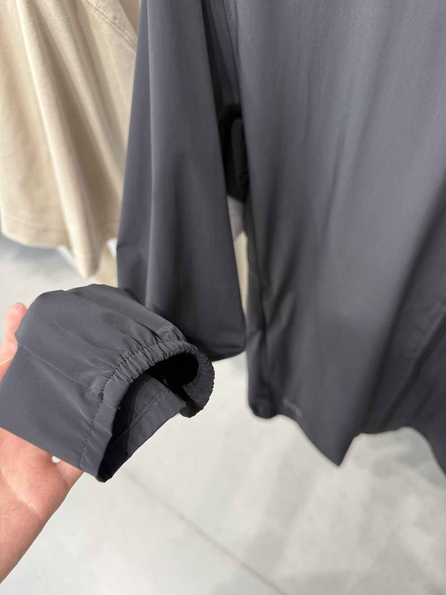 我蹲了好久终于下手这件外套啦🤩,拿到手摸起来是滑溜溜的冰丝面料,贴身穿凉丝丝的,跑步出汗后干得也快,连帽设计还能挡太阳防风。不过领口的拉链拉到顶会有点卡脖子😮💨,整体版型是常规款,日常通勤或者健身穿都合适,包装严实发货也快,性价比还不错~