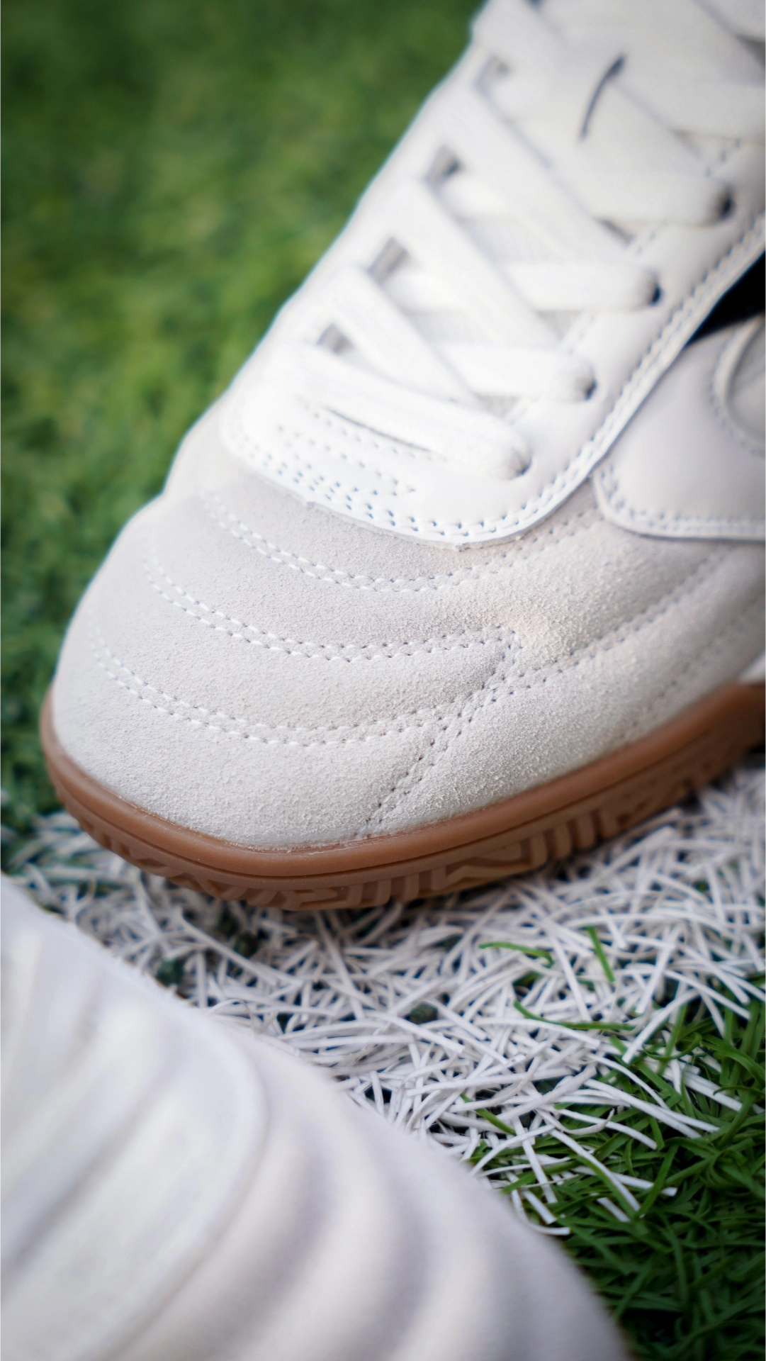 打球的兄弟有"板鞋篮球鞋"可以兼顾通勤和实战,那踢球的兄弟,有没有一双通勤和草地都能穿着的鞋呢~这双#KELME 的复古德训足球鞋就是我最近淘到的,可以说是足球鞋里的"布克陷阱"了。 这种浅灰色搭配生胶底的色调,不用说就是很百搭的,麂皮和皮革的材质,质感也是相当不错,搭牛仔裤休闲裤我觉得都很OK。 它还保留了一些足球鞋的元素和功能,鞋头的缝线 在触球时可以更好掌控,脚感上也是有点韧弹韧弹的感觉。当...