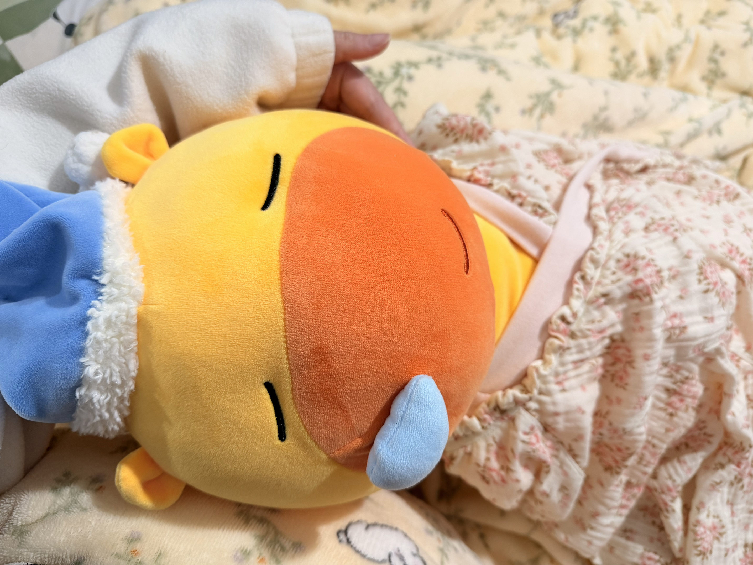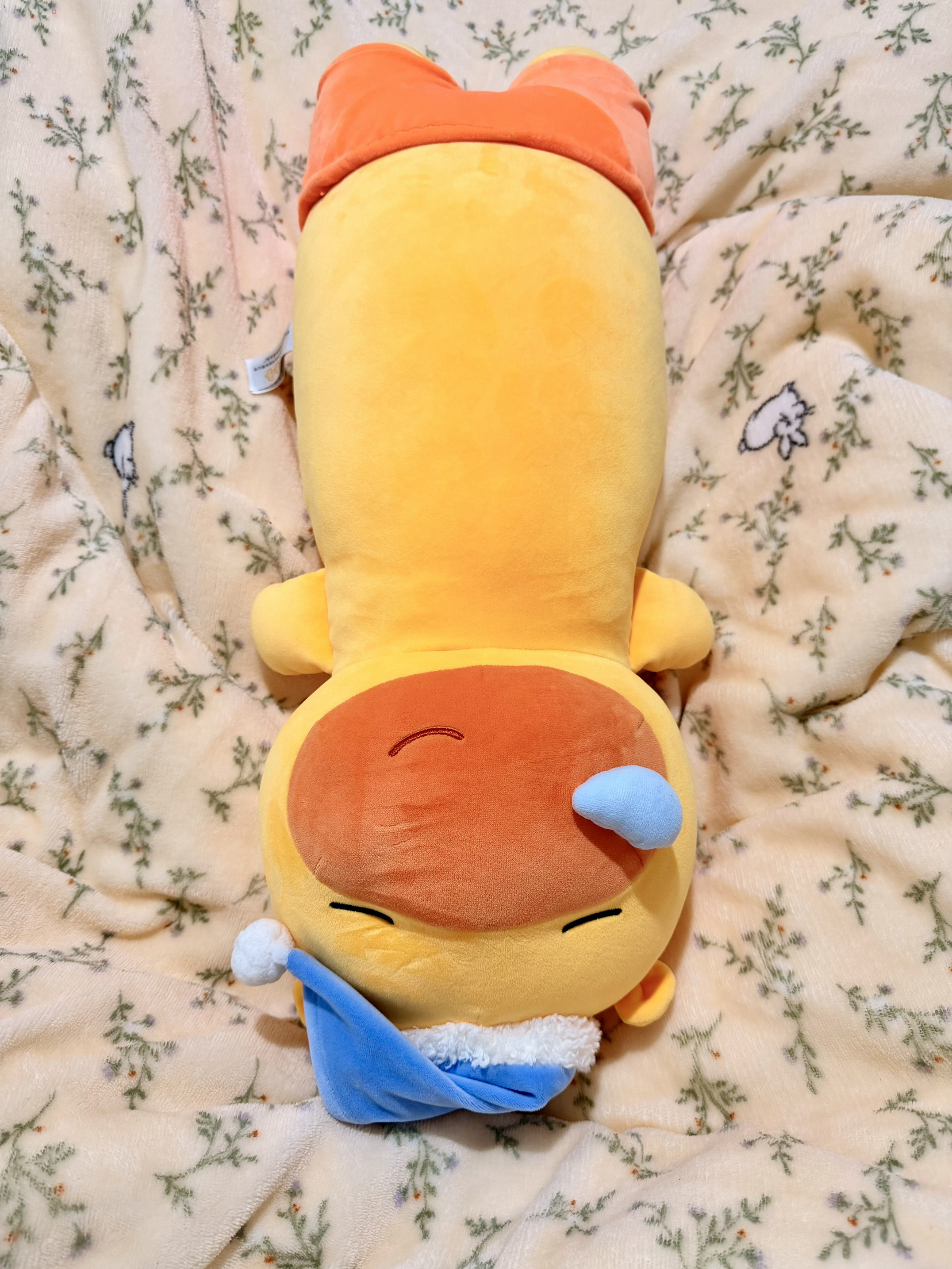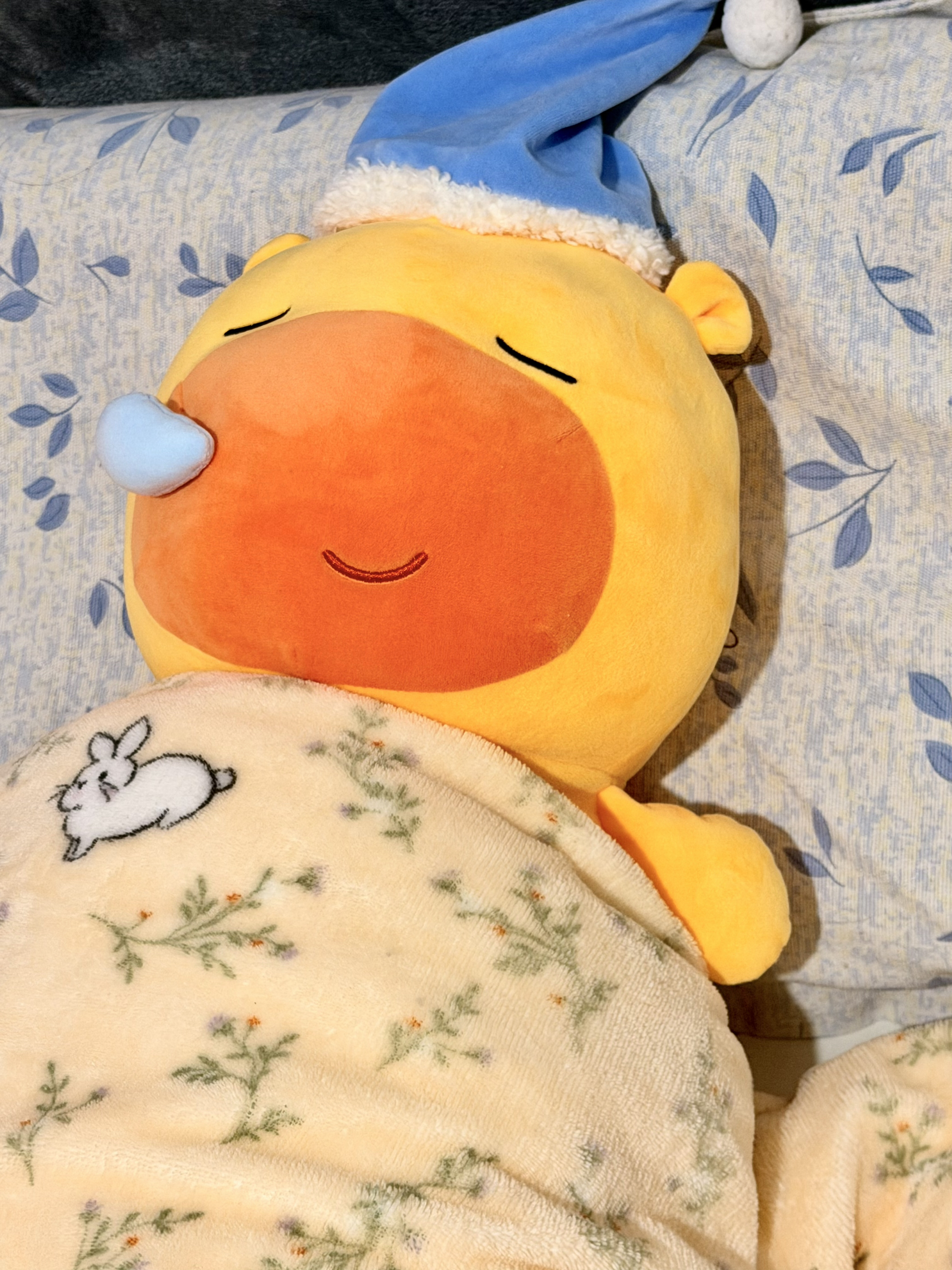 救命!这只戴着睡帽的水豚噜噜也太会撒娇了吧! 奶黄配色+橙红脸蛋,鼻尖还挂着小鼻涕泡, 闭眼微笑的样子,像在说“快来陪我睡觉觉”~ 60cm长条身形,抱在怀里、夹在腿间都超舒服, 高弹短绒摸起来软fufu的,rua一下所有疲惫都消散! 夏天抱着不闷汗,冬天暖乎乎, 不管是失眠党还是emo星人,都能被它瞬间治愈✨ 送闺蜜/对象/自己都超合适,是能抱进被窝的温柔呀~ #水豚噜噜 #治愈系玩偶 #毛绒...