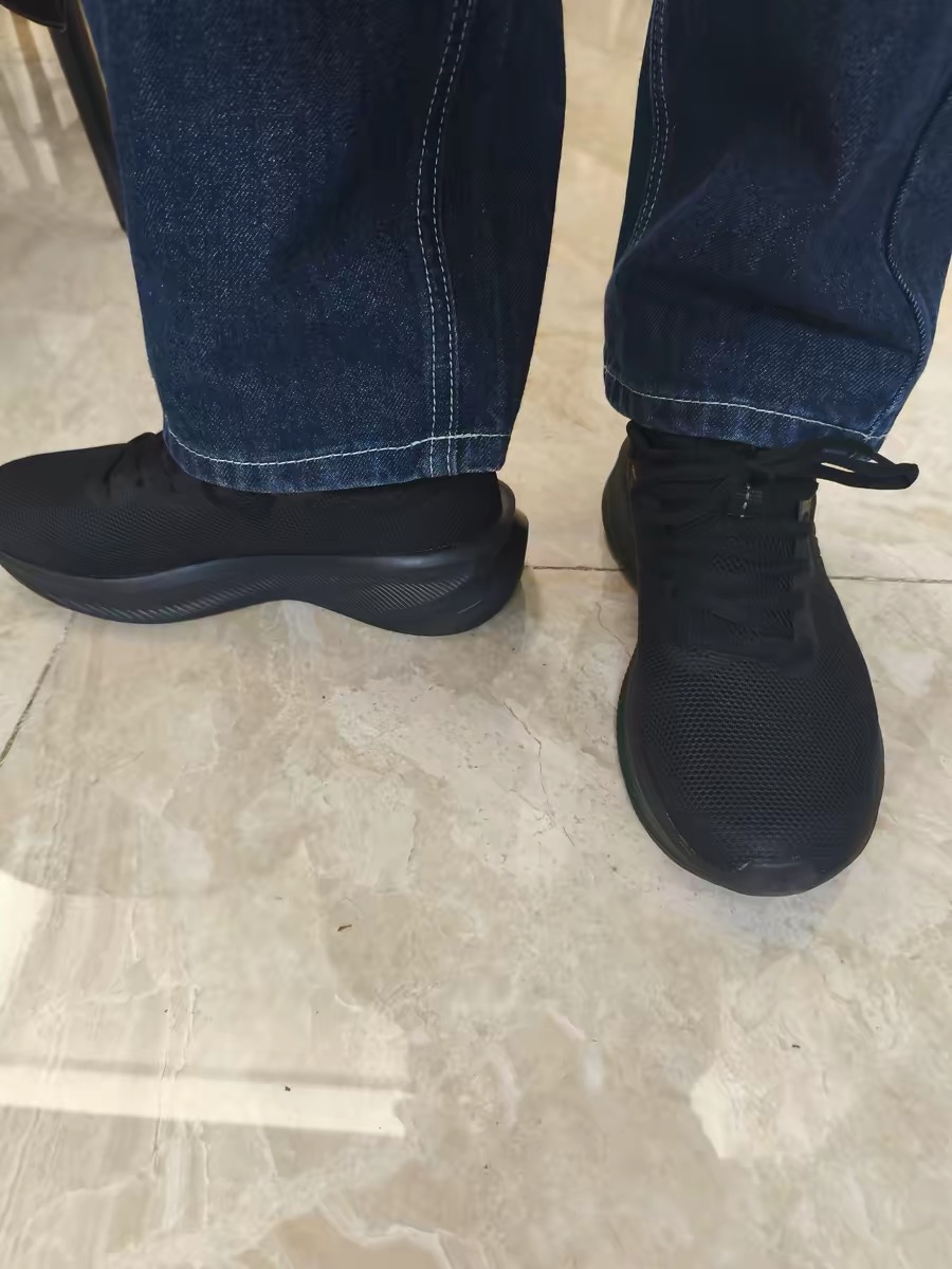 这双361°跑鞋把实用性拉满了。网面透气不闷脚,软底减震刚好适配日常慢跑和通勤走路,防滑耐磨的设计也能应对多变路况,防水流光的特性在秋冬更实用。 整体轻便包裹感强,纯黑配色低调耐脏,不管是健身健步还是日常出街都很合适,是一双兼顾舒适与实用性的高性价比选择。