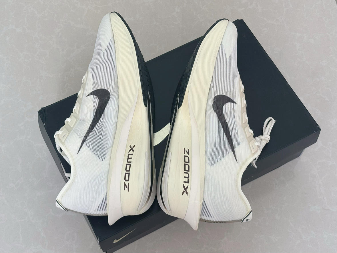 也算是跑上步了 鞋子很轻,推进力还可以,zoomx 泡棉很有弹性,对我这初跑者很友好 痩脚🦶选正码刚好,脚胖要选大一码 跑步不显累脚,透气还可以,春天不会闷脚,夏天估计会出汗,需要配薄款袜 配色也是干净清爽,很吸睛,颜值在线~
