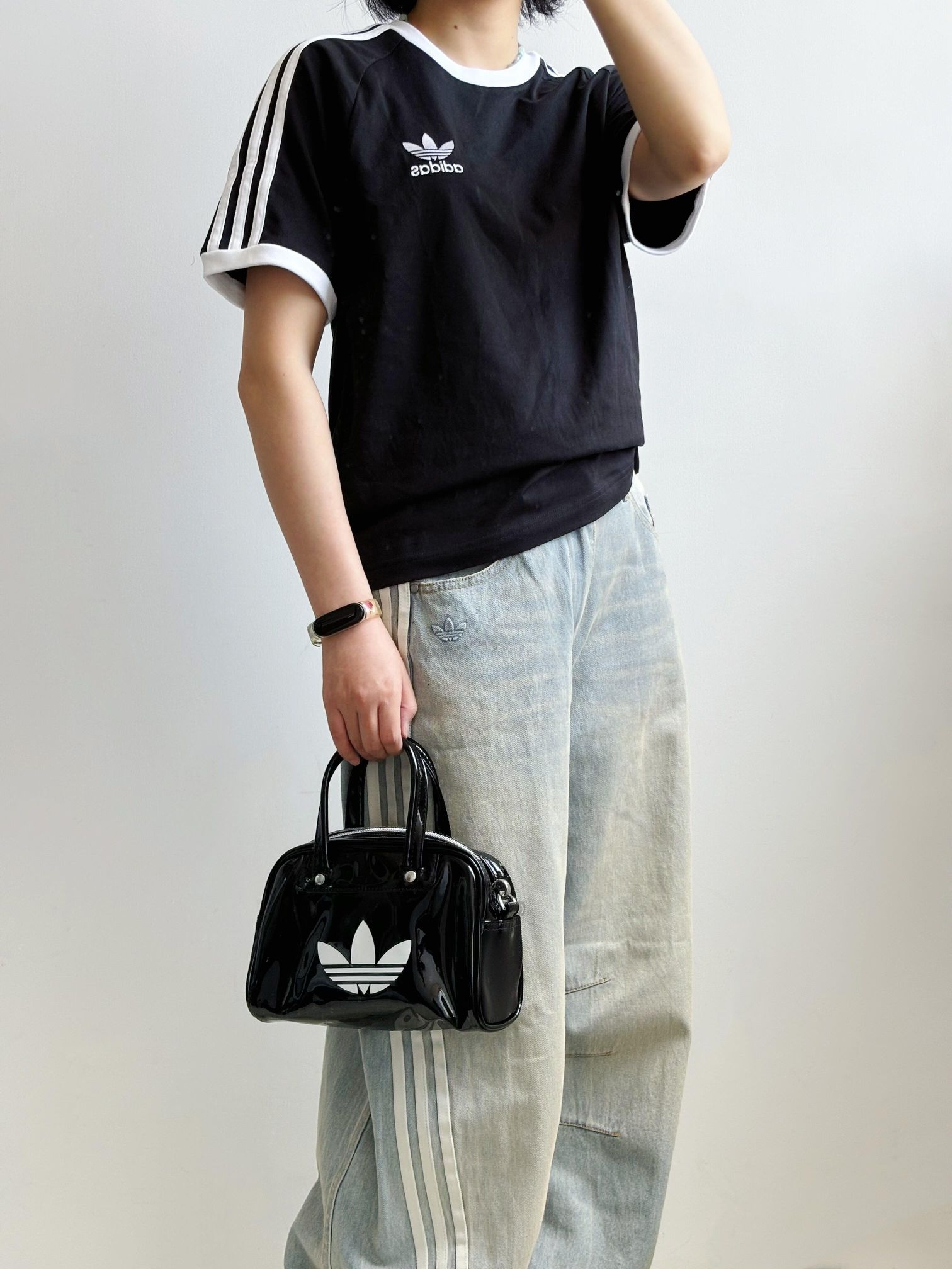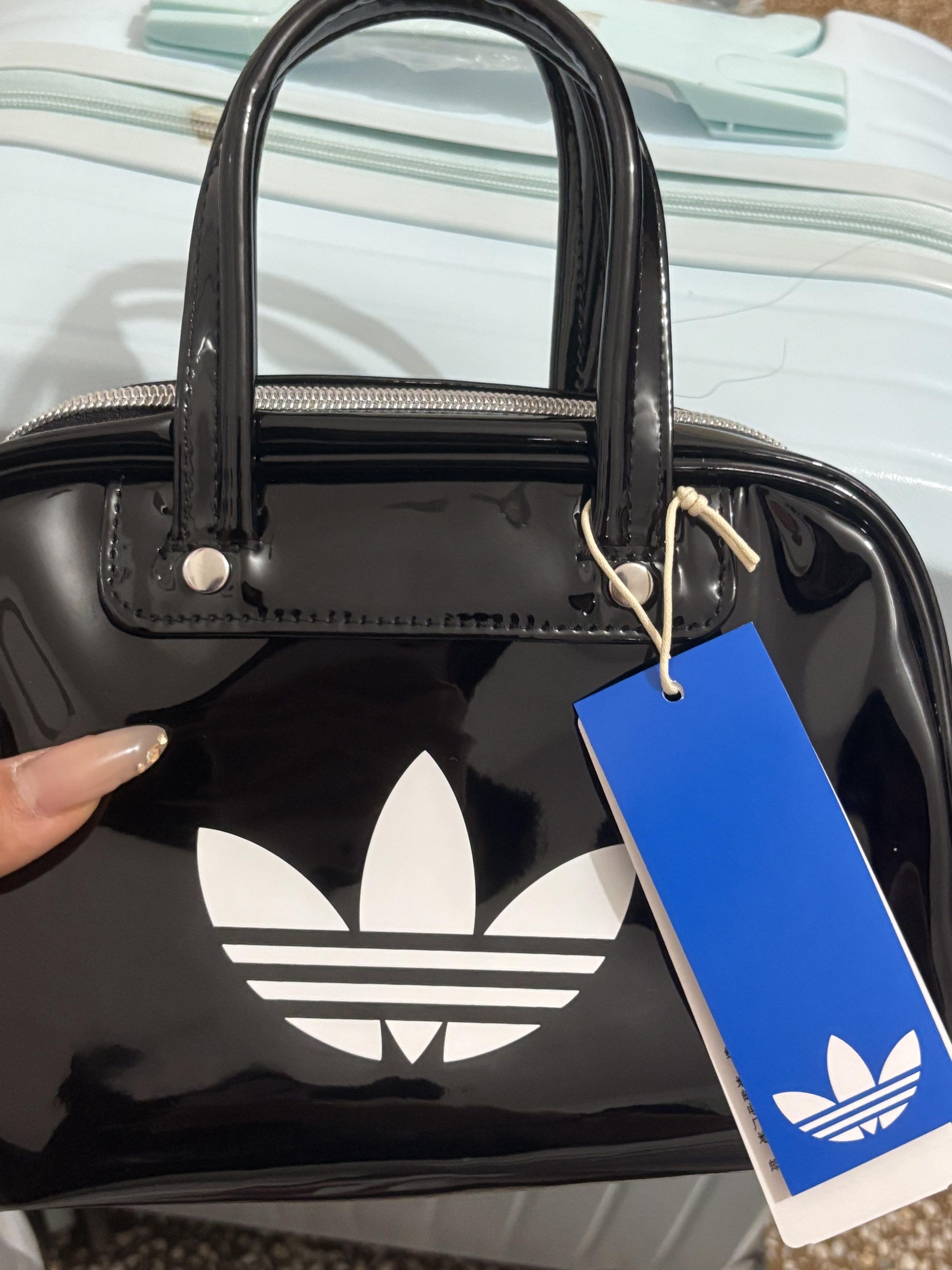 阿迪三叶草漆皮小拎包也太香了!巴掌大的包居然能塞下手机、口红、钥匙,漆皮亮面贼有质感,手提斜挎都好看,出门遛弯/逛街揣着超方便,完全不压肩~