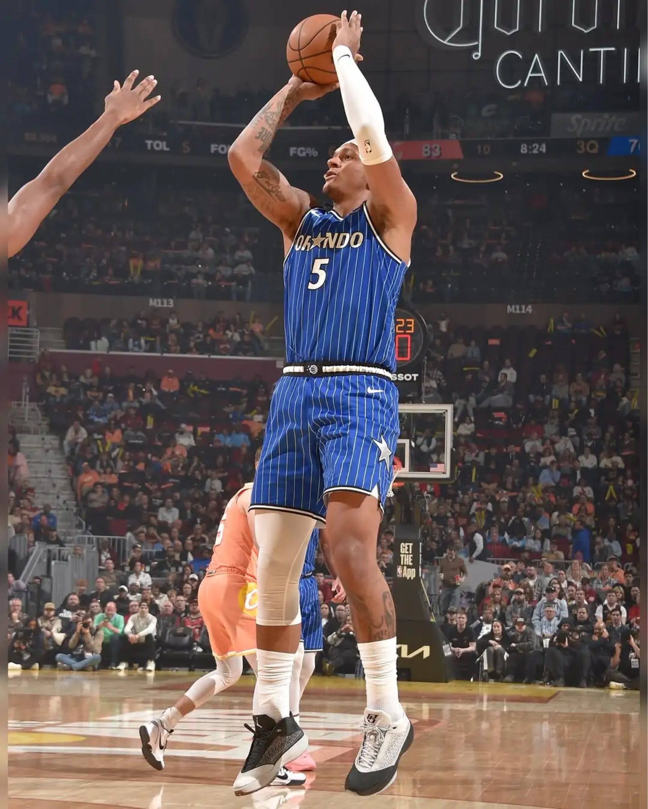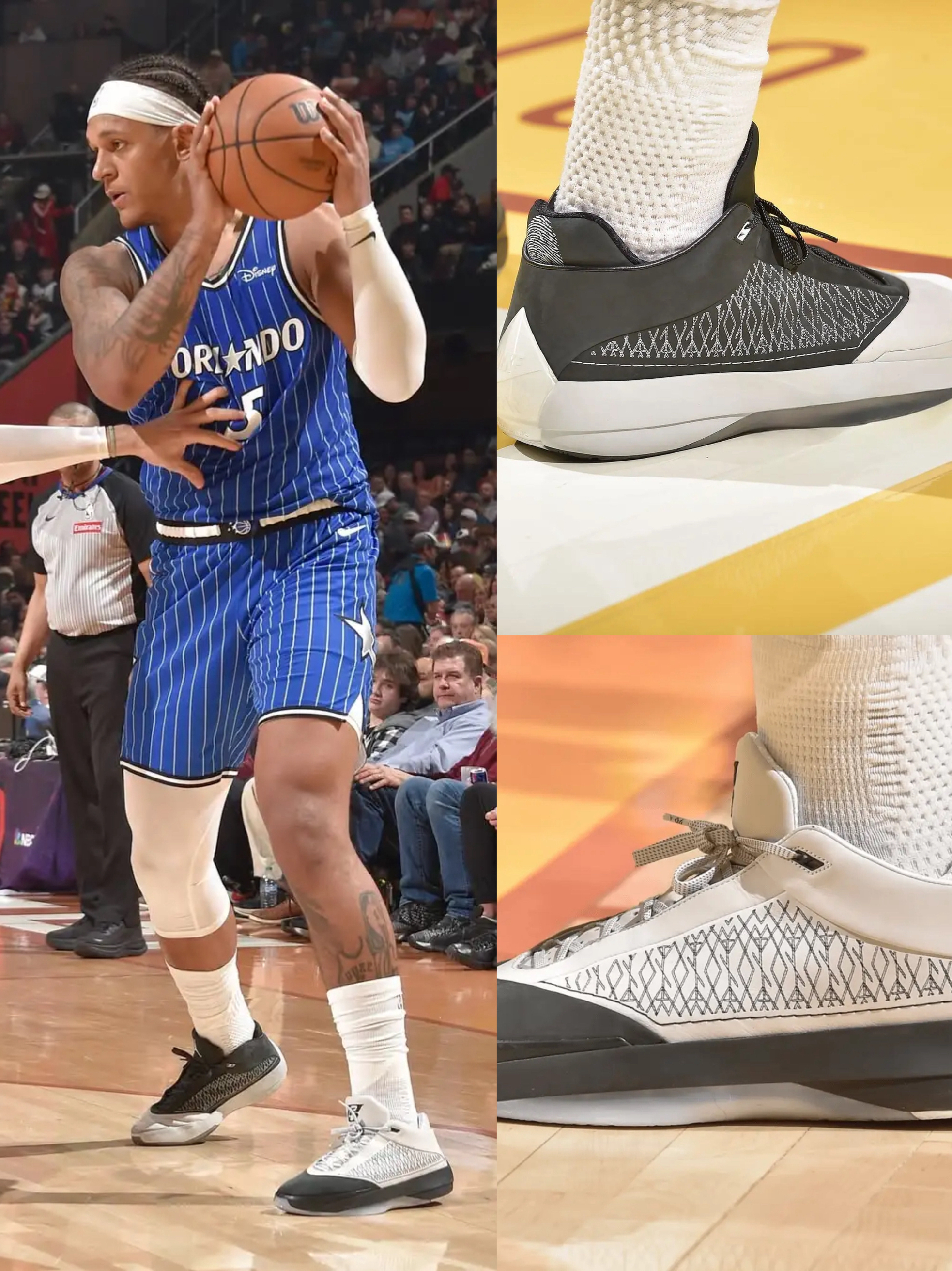 魔术状元上脚这双黑白配色真的杀疯了! 无鞋带设计+简约撞色鞋型,球场吸睛度直接拉满💥实战性能拉满的同时,日常搭球衣、运动装也超顶颜值与实力并存的实战神鞋,谁看了不迷糊啊家人们! 比赛中,班凯罗上脚个人专属配色Air Jordan 40/23 PE。出战40分钟,投篮19中10,三分球7中3,罚球15中13,空砍36分6篮板5助攻1抢断1盖帽。