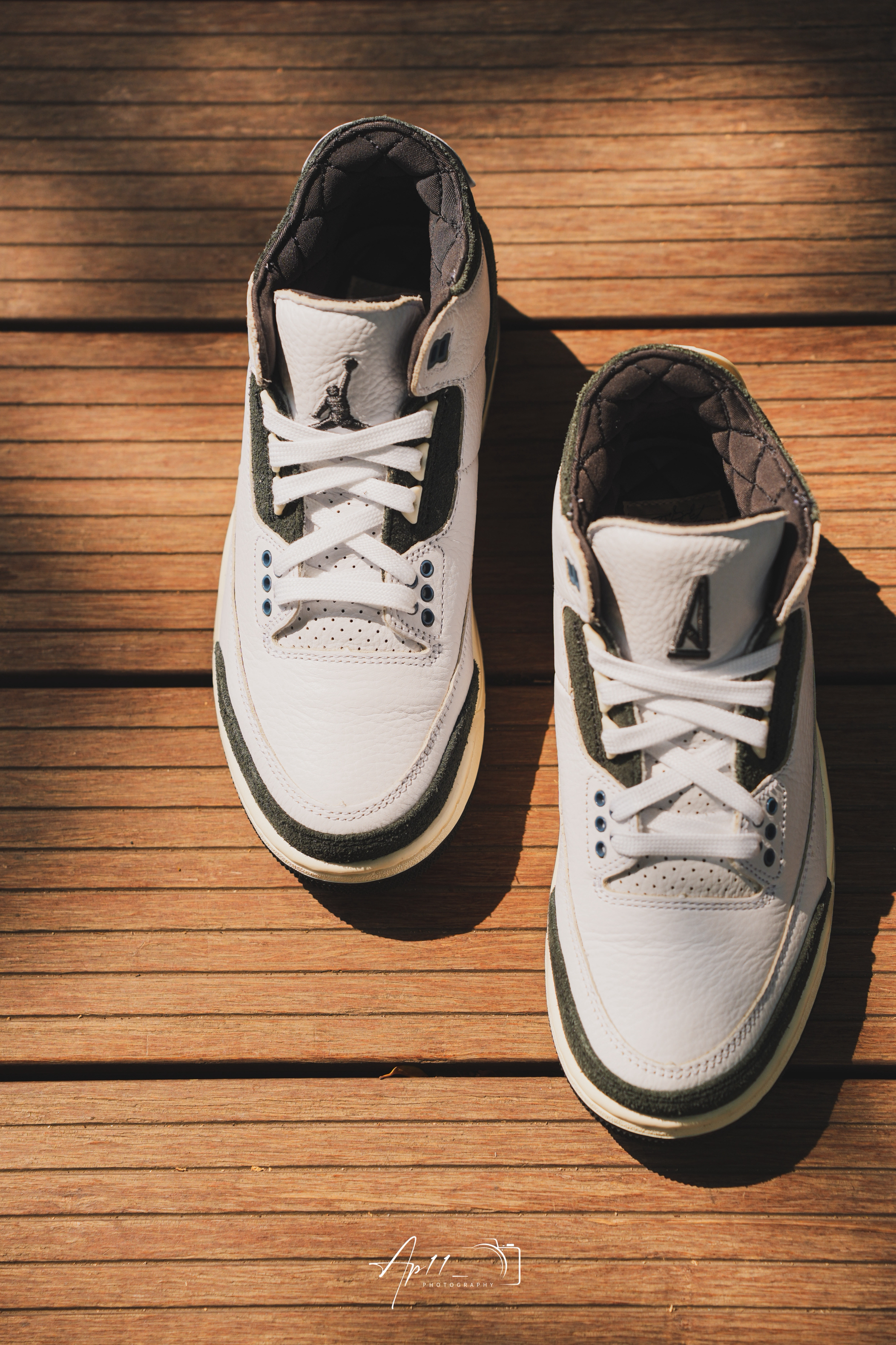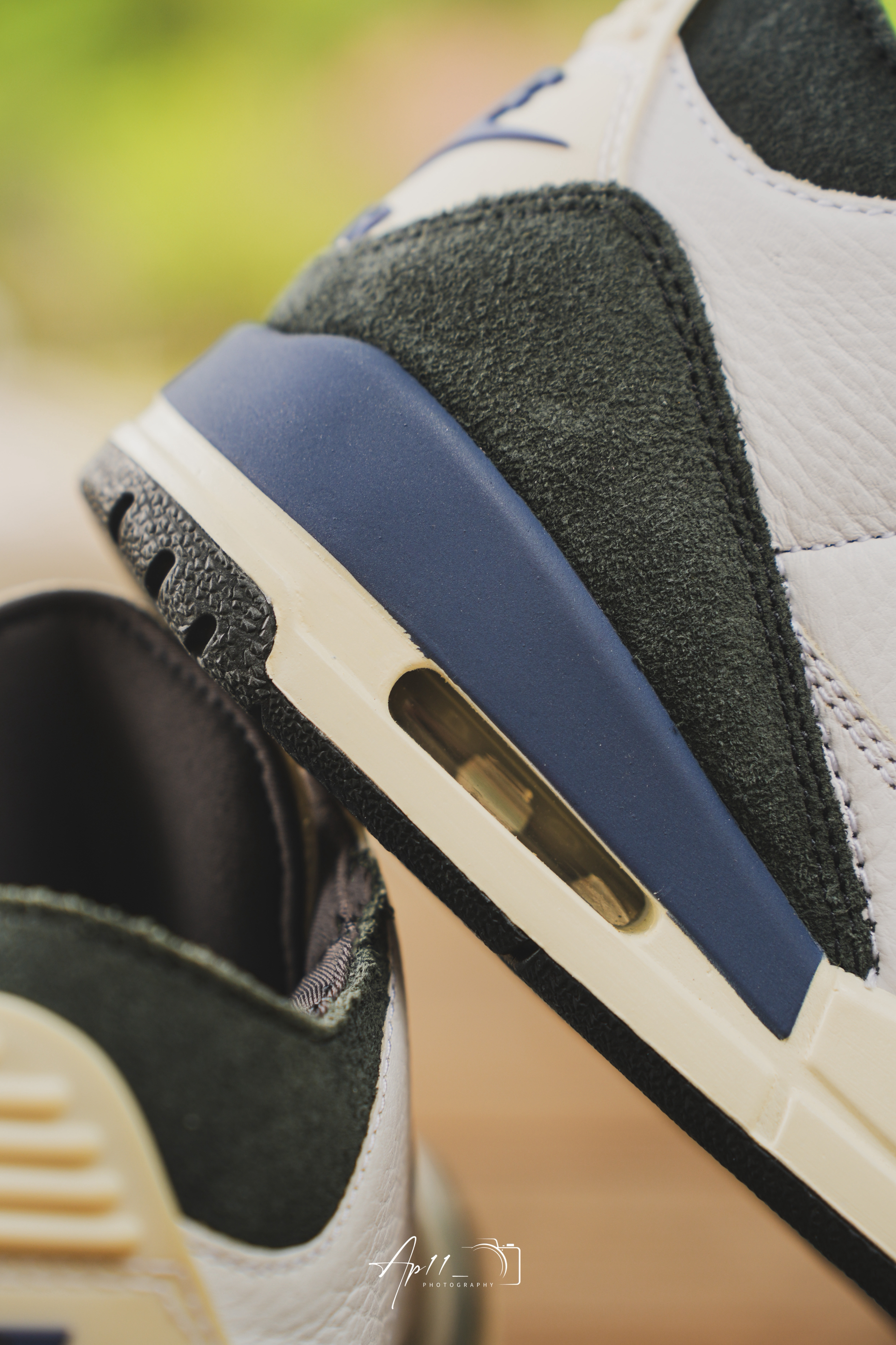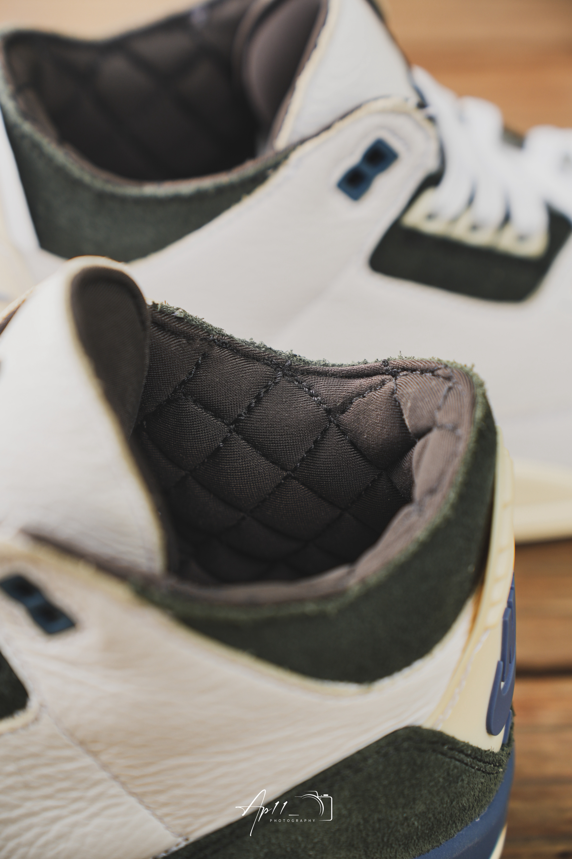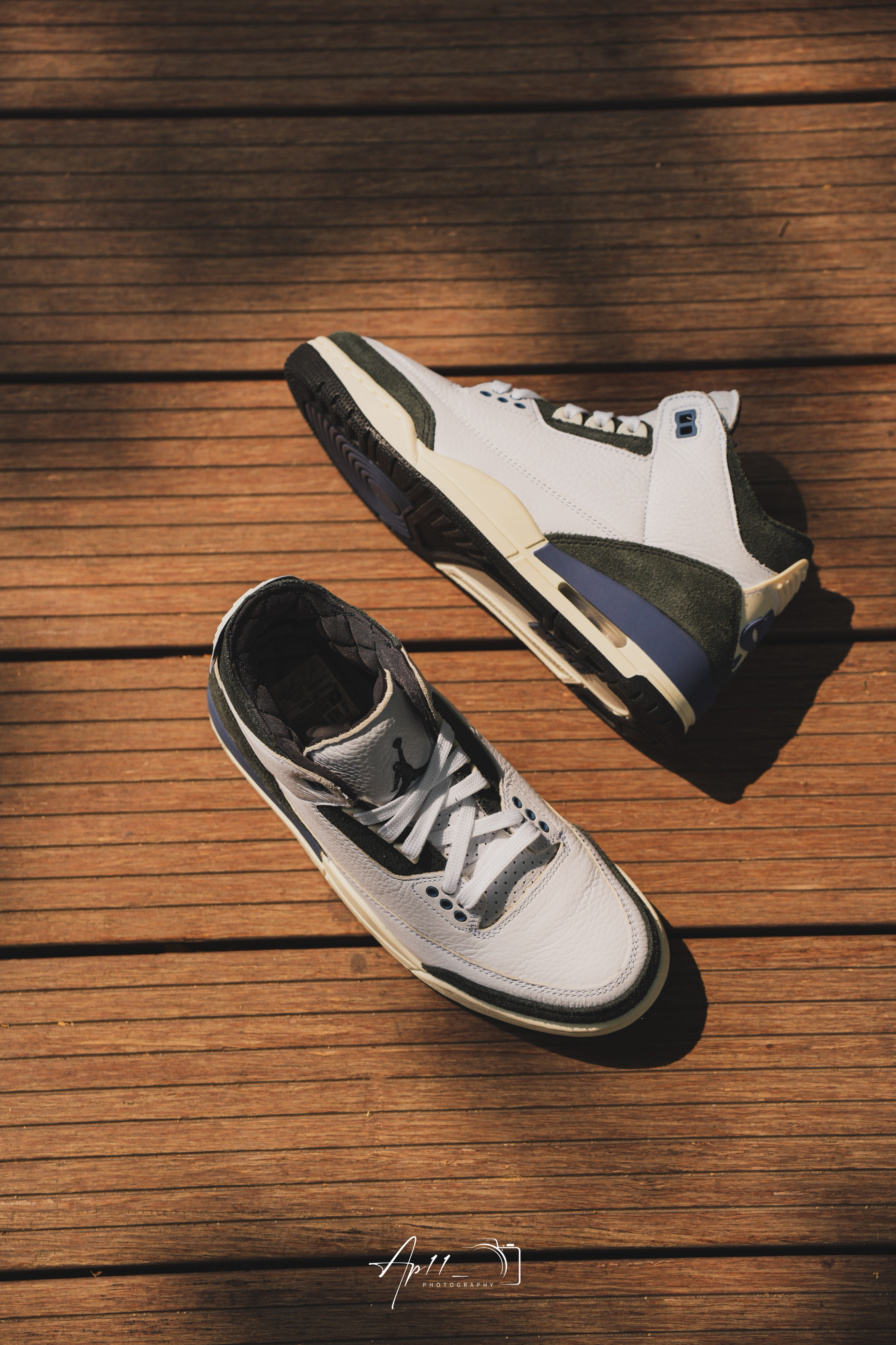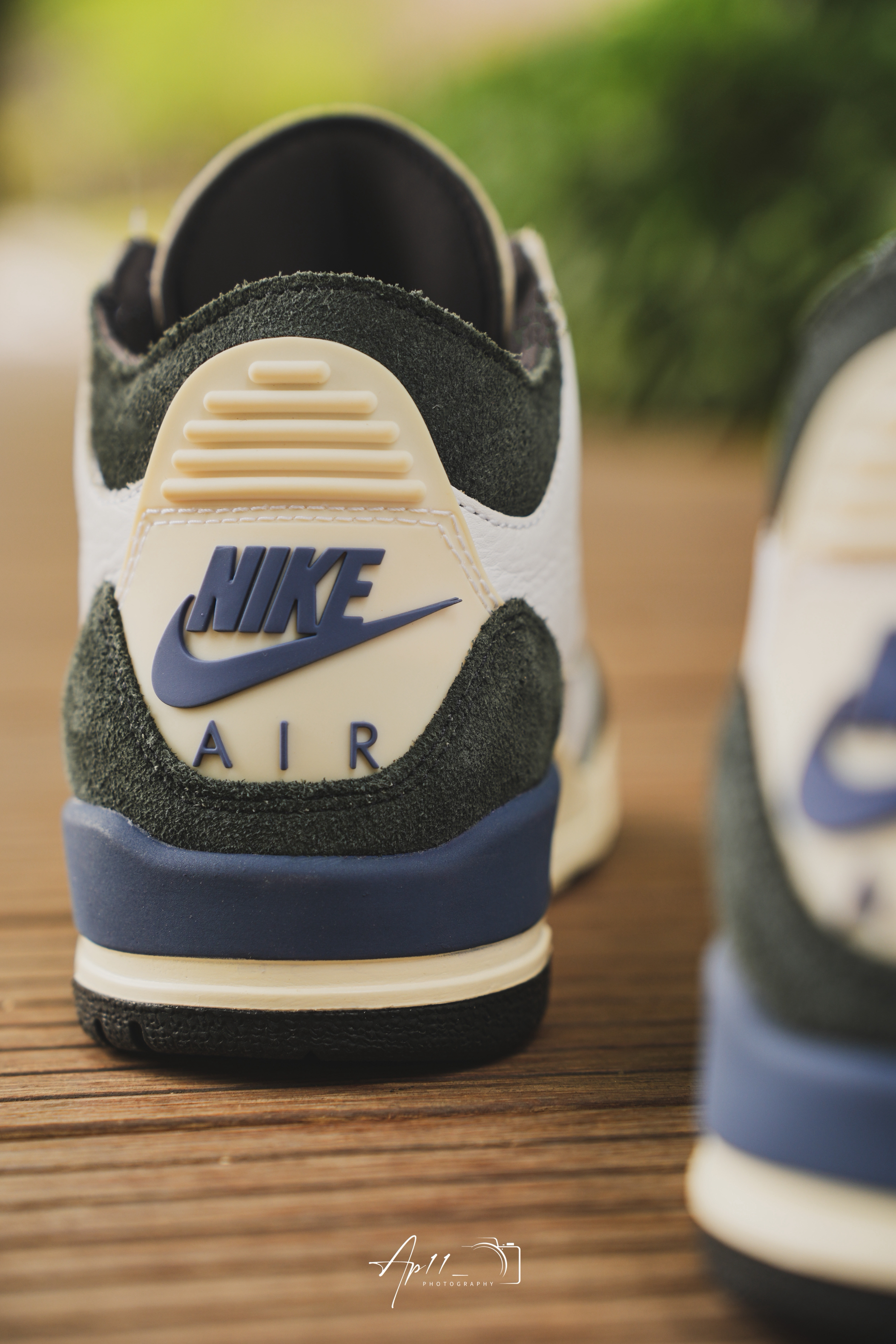 这次的这双 A Ma Maniere x Air Jordan 3 使用了经典简约的白色鞋面,而 “ Nike Air ” 后跟处以及中底这次选择了雾霾蓝色饰以点缀,提升了单色设计的层次感。 总的来说,这次的联名依旧是 AMM 独有的高级优雅风,不知道大家觉得这双鞋的颜值怎么样呢?