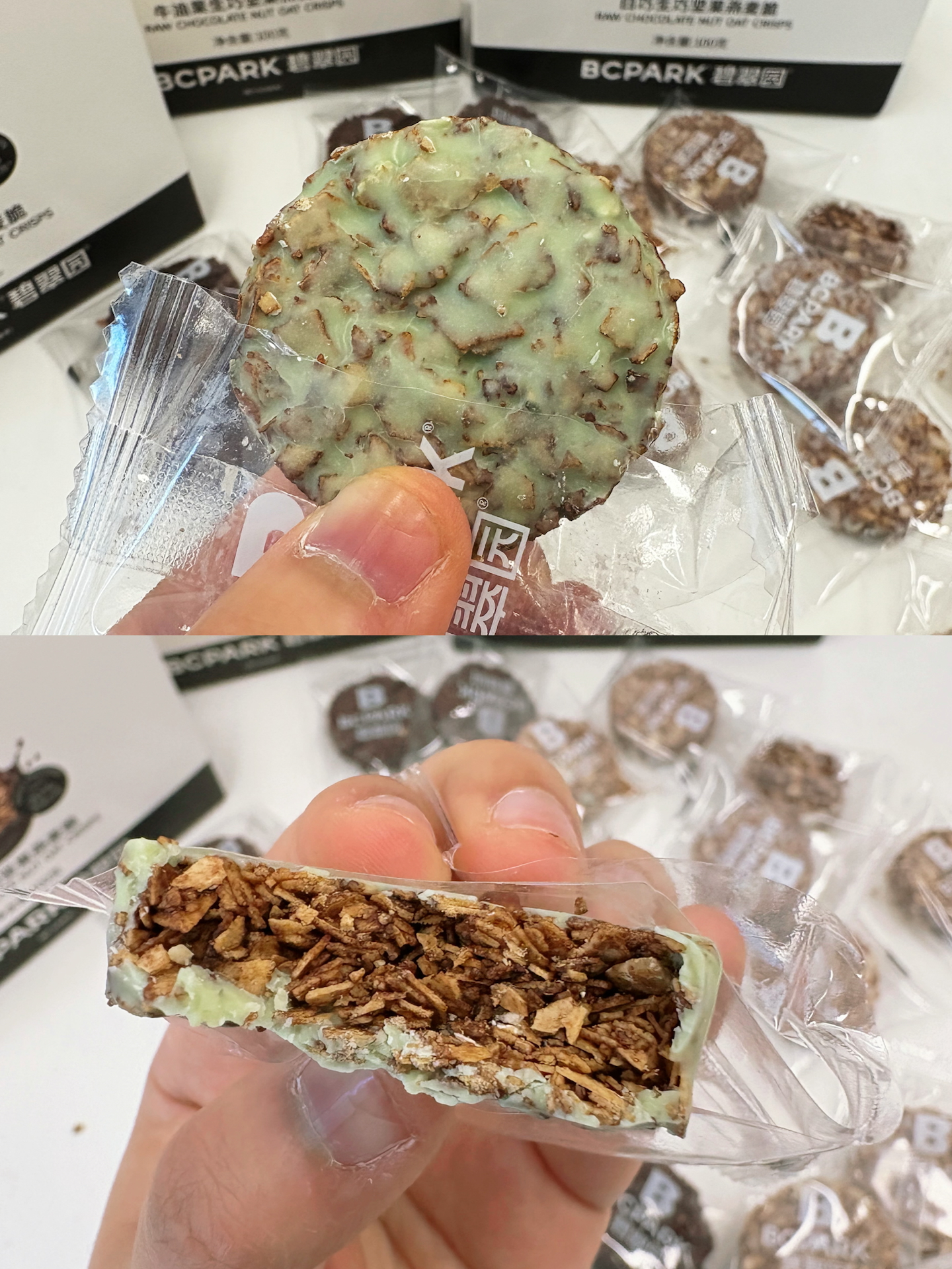 我感觉黑巧味的最对胃口,咬开全是燕麦脆,甜而不腻,下颚不舒服也能嚼。独立包装揣包里很方便,放公司很快就被同事分光了。就是一盒量有点少,没吃几次就见底了🥺