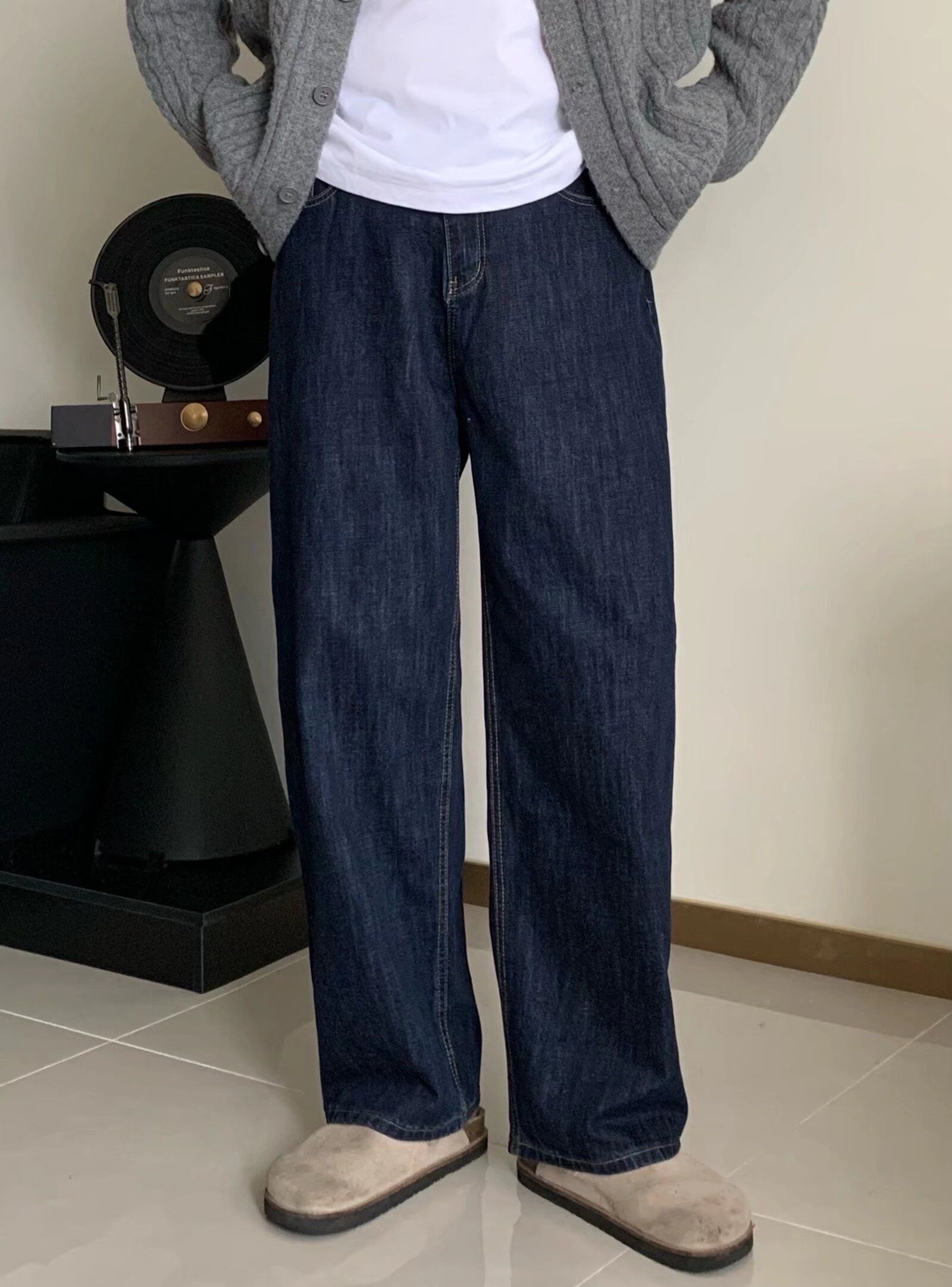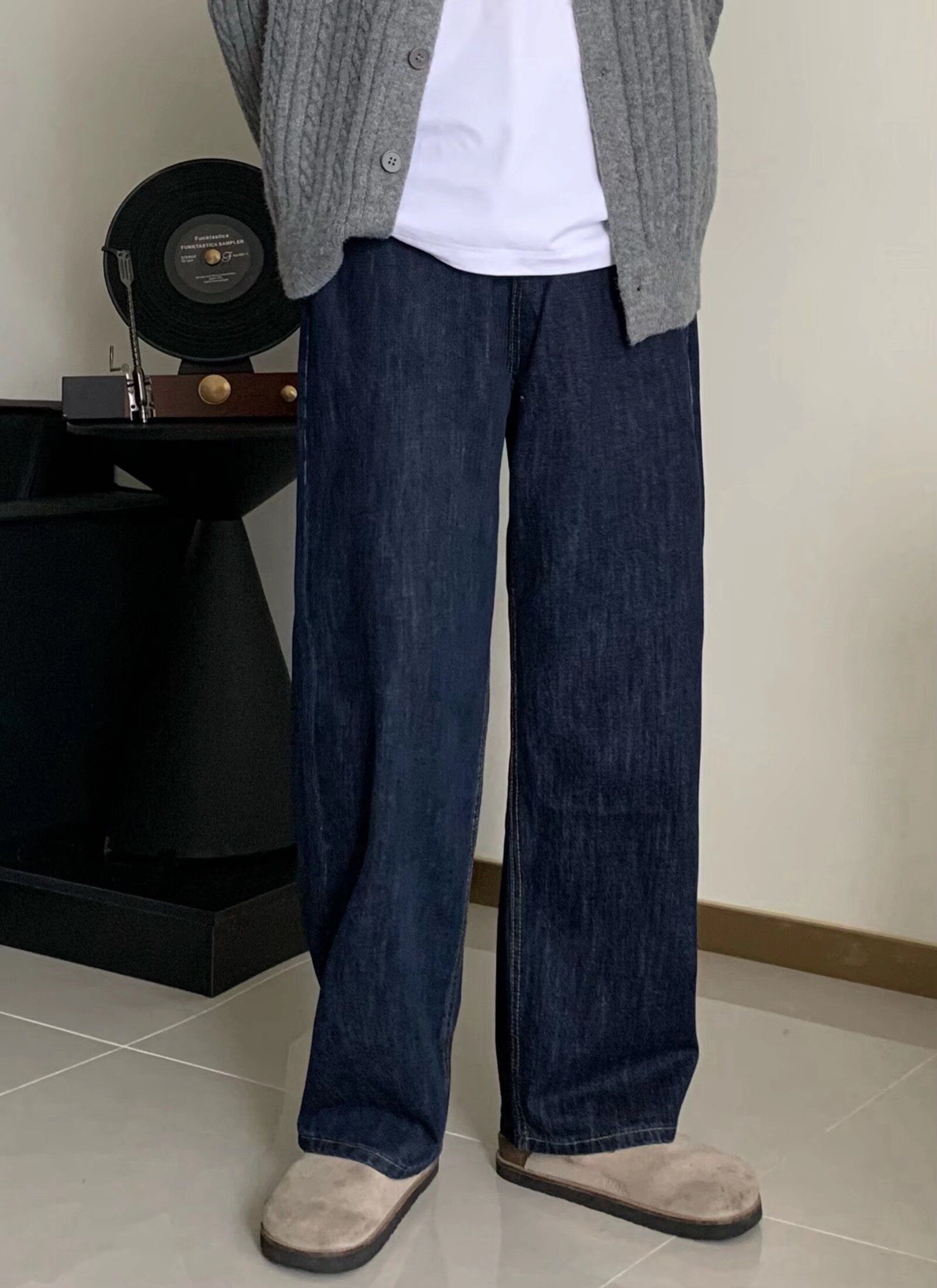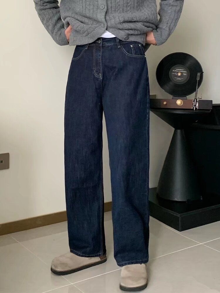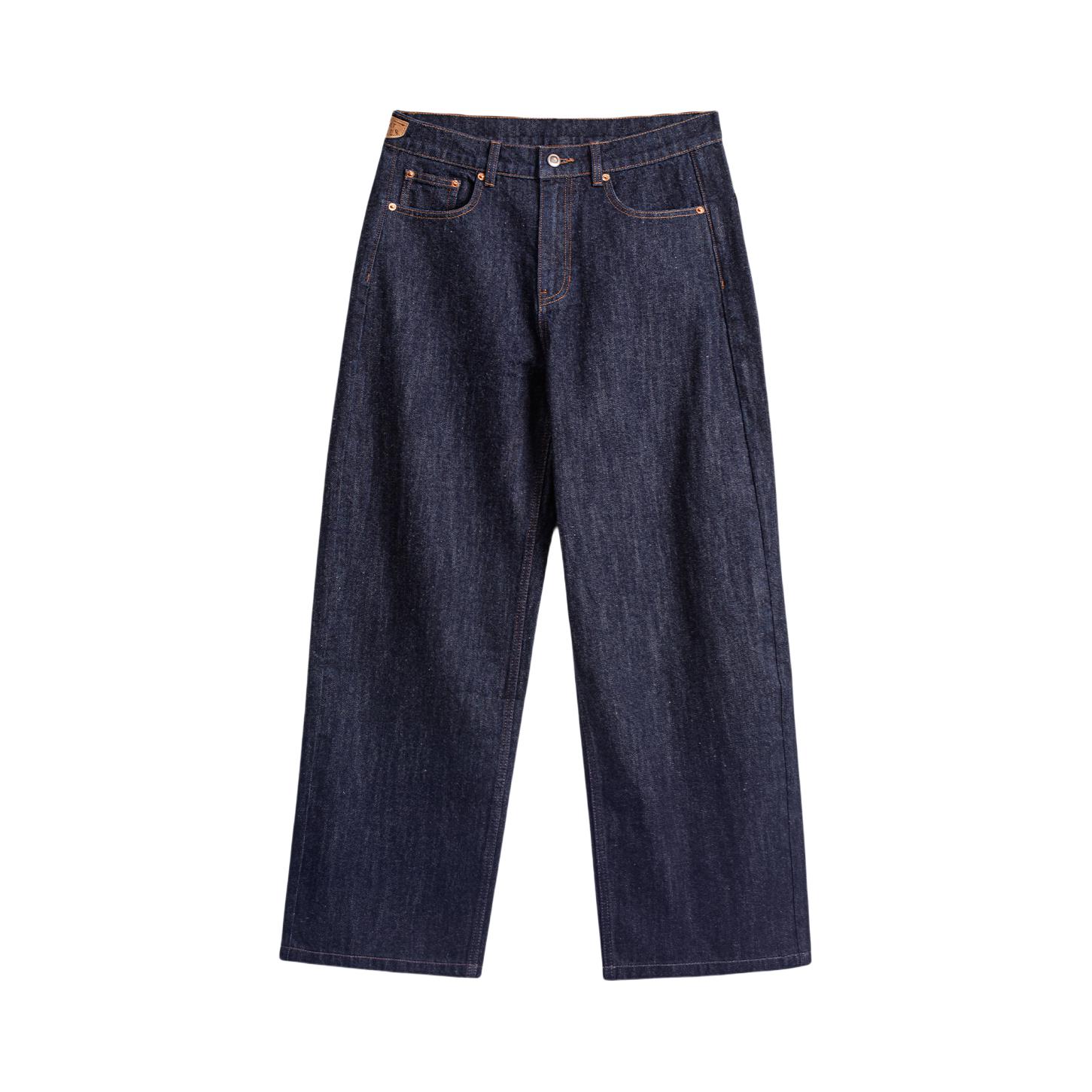深靛蓝水洗自带复古滤镜,没有多余装饰,越穿越有味道,高腰直筒版型把腿型修饰得又直又顺,搭毛衣、卫衣、棒球服都超和谐。 配勃肯鞋/板鞋就是慵懒松弛感,面料厚实挺括,冬天加秋裤也不臃肿。 识货入手性价比拉满,闭眼冲不亏!