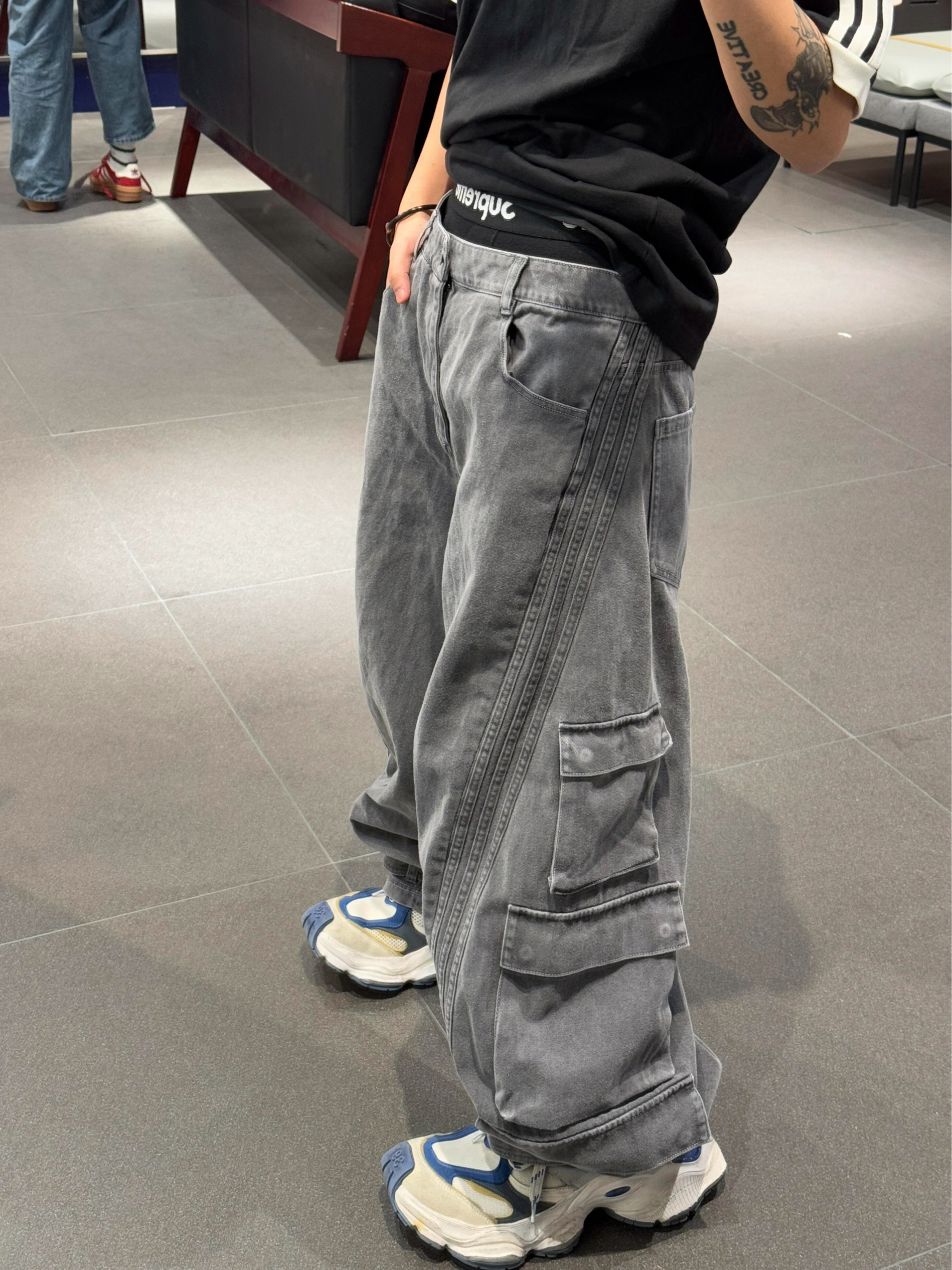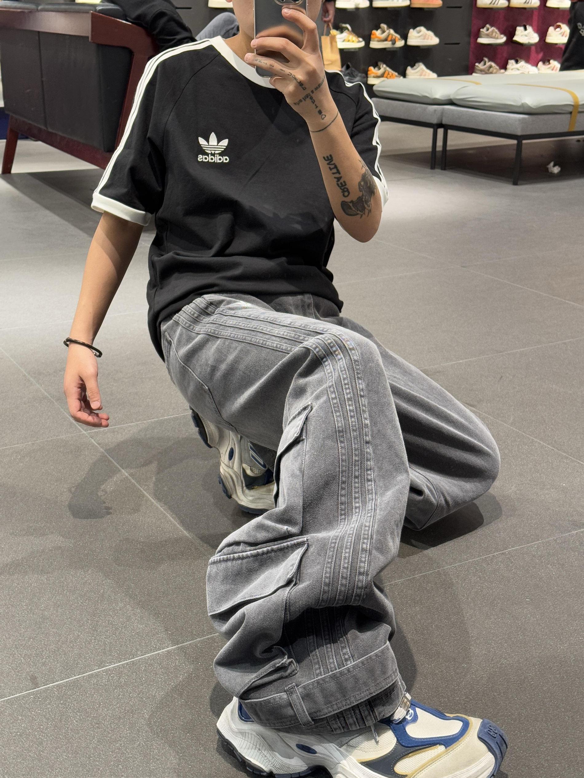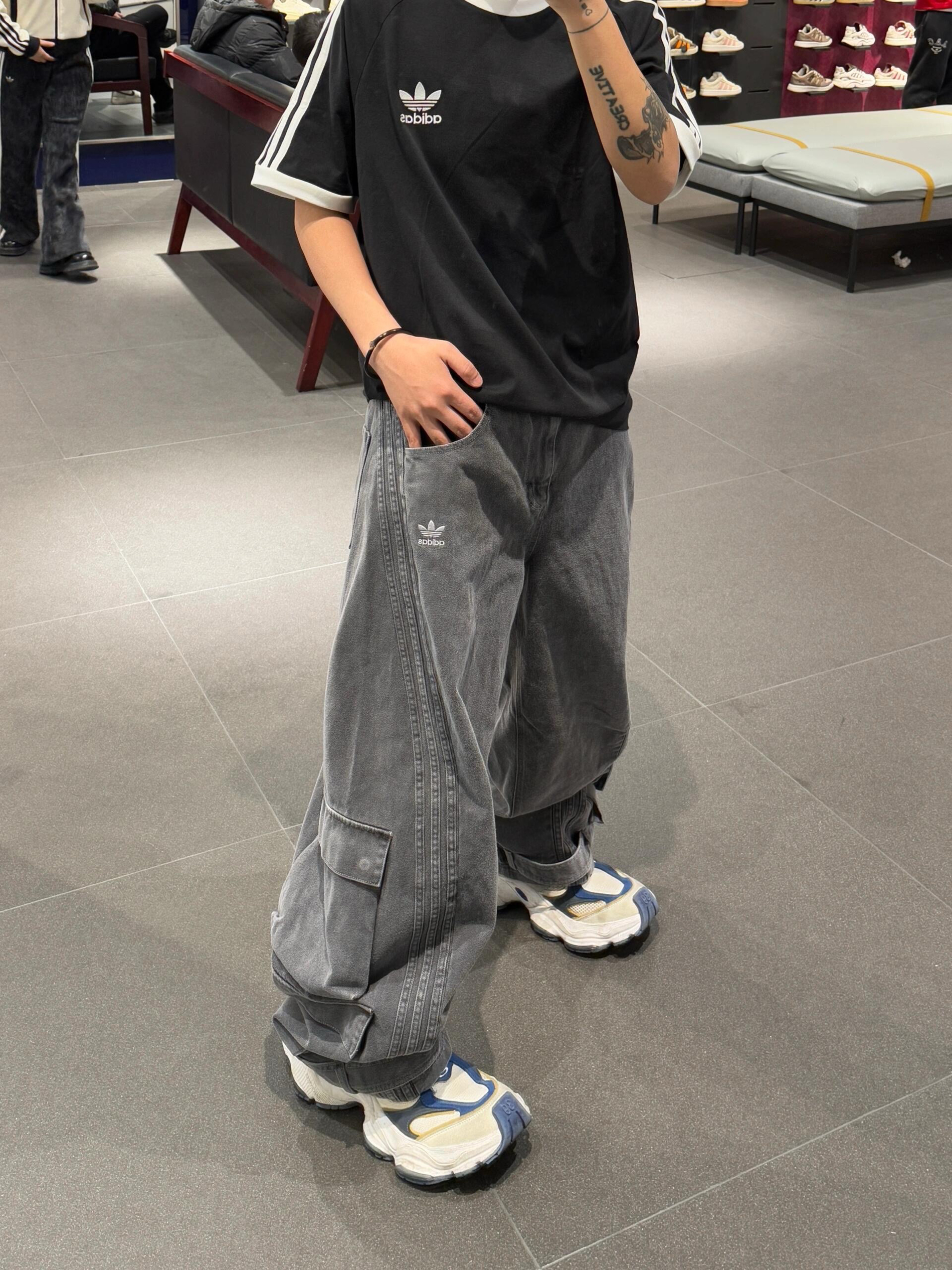 无所谓,我会为阿迪这条牛仔裤疯狂打call📣 工装硬朗 + 废土氛围感 + 复古水洗质感 一次性完美融合,上脚直接帅到炸场💥 多口袋工装设计,实用又有层次感, 裤脚纽扣可随意调节松紧,想束脚想宽松都自由。 不管搭卫衣、T恤、夹克还是外套, 随便一套就是街头氛围感大片, 真正不用动脑、随手一穿就出片的神裤!