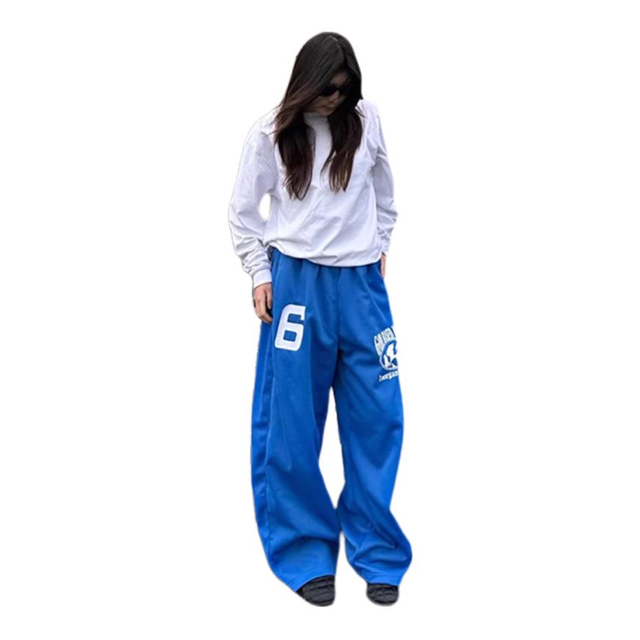 这条卫裤的核心是「慵懒感与复古感的平衡」——我们想做一条能适配春日出街、校园通勤、居家躺平的全能裤型。 • 从90年代美式街头运动风汲取灵感,用醒目的数字「6」印花+地球刺绣标识,强化复古运动氛围,让基础款也有记忆点。 • 弯刀阔腿版型是关键:既保留卫裤的松弛感,又能修饰腿型,对各种身材都友好,走路带风的同时不会显拖沓。 • 三色选(藏青/正红/宝蓝)是特意调配的复古色调,低饱和却有视觉冲击...