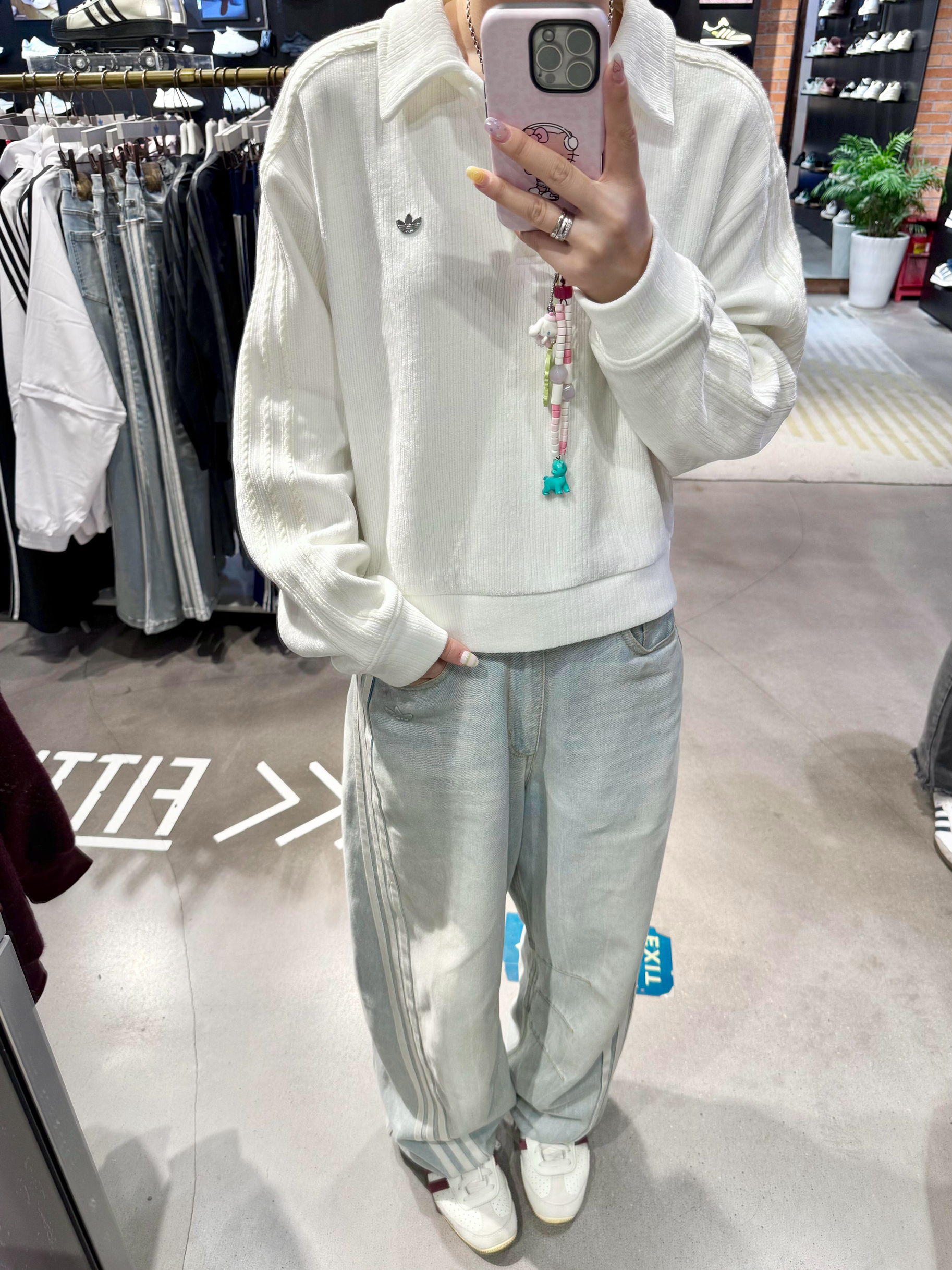 阿迪这一整套look,上身真的简单又高级~🤍 当复古翻领遇上经典三叶草, 早秋那股温柔氛围感直接被狠狠拿捏住了✨ 这件米白色翻领卫衣, 面料纹理细腻,软糯又有质感, 宽松落肩版型,藏肉显瘦还特别随性。 下身配一条浅色牛仔阔腿裤, 复古做旧质感拉满, 垂感好又显腿长,走路都带风。 没有多余花哨设计, 靠版型和细节赢麻了, 整套干净、简约、超有高级感。 日常出街、通勤、约会穿都很吸睛, 懒人...