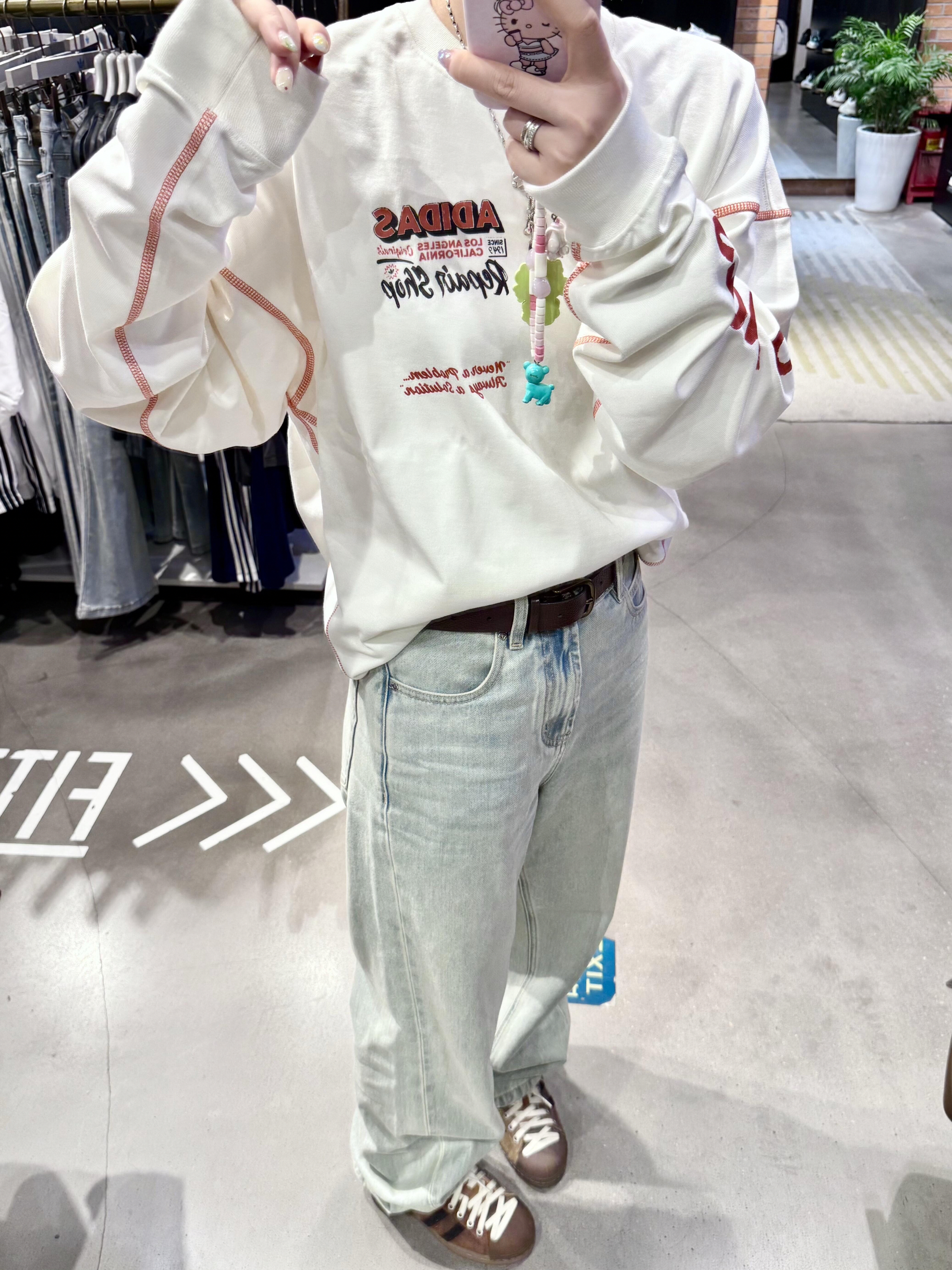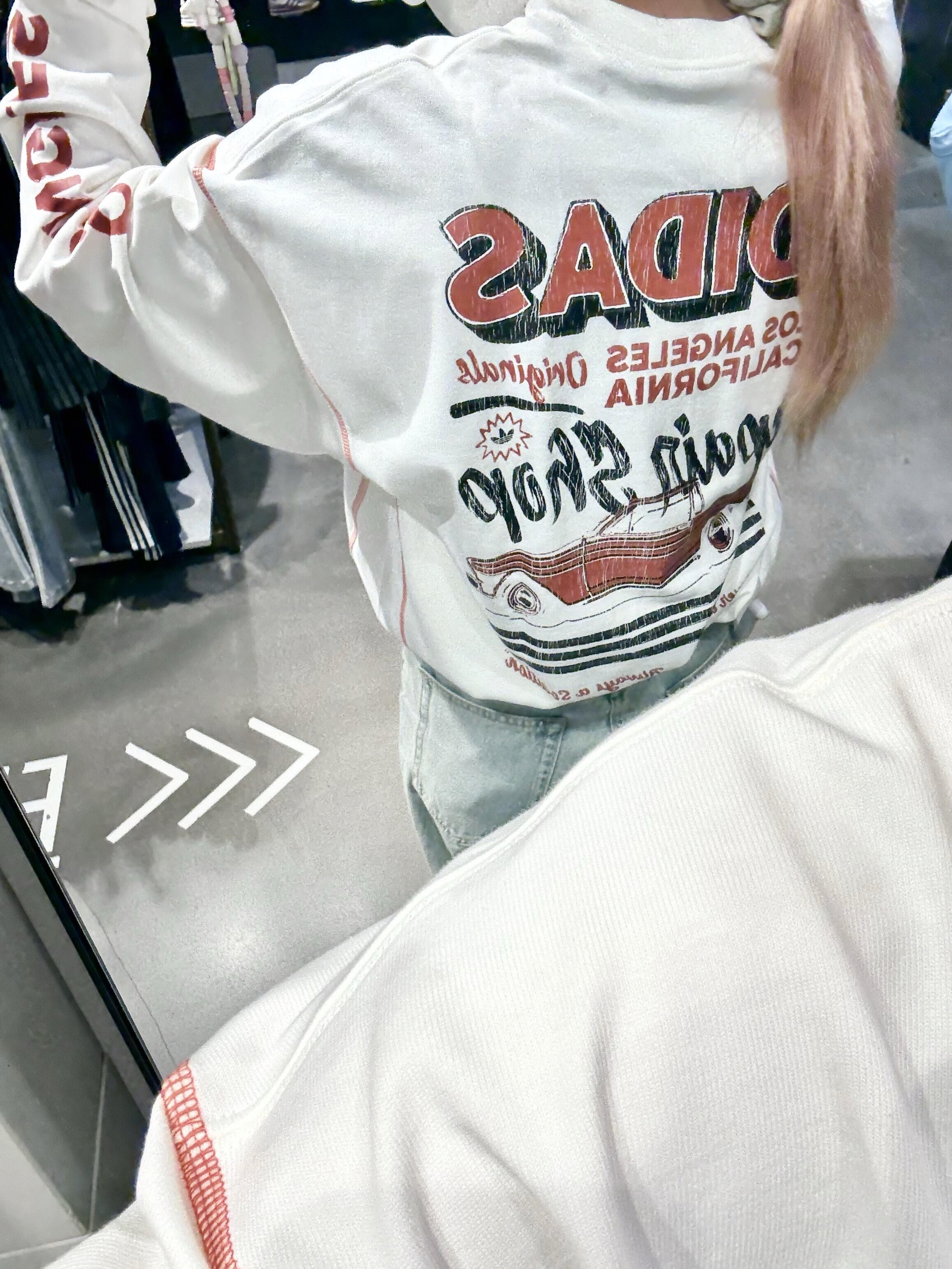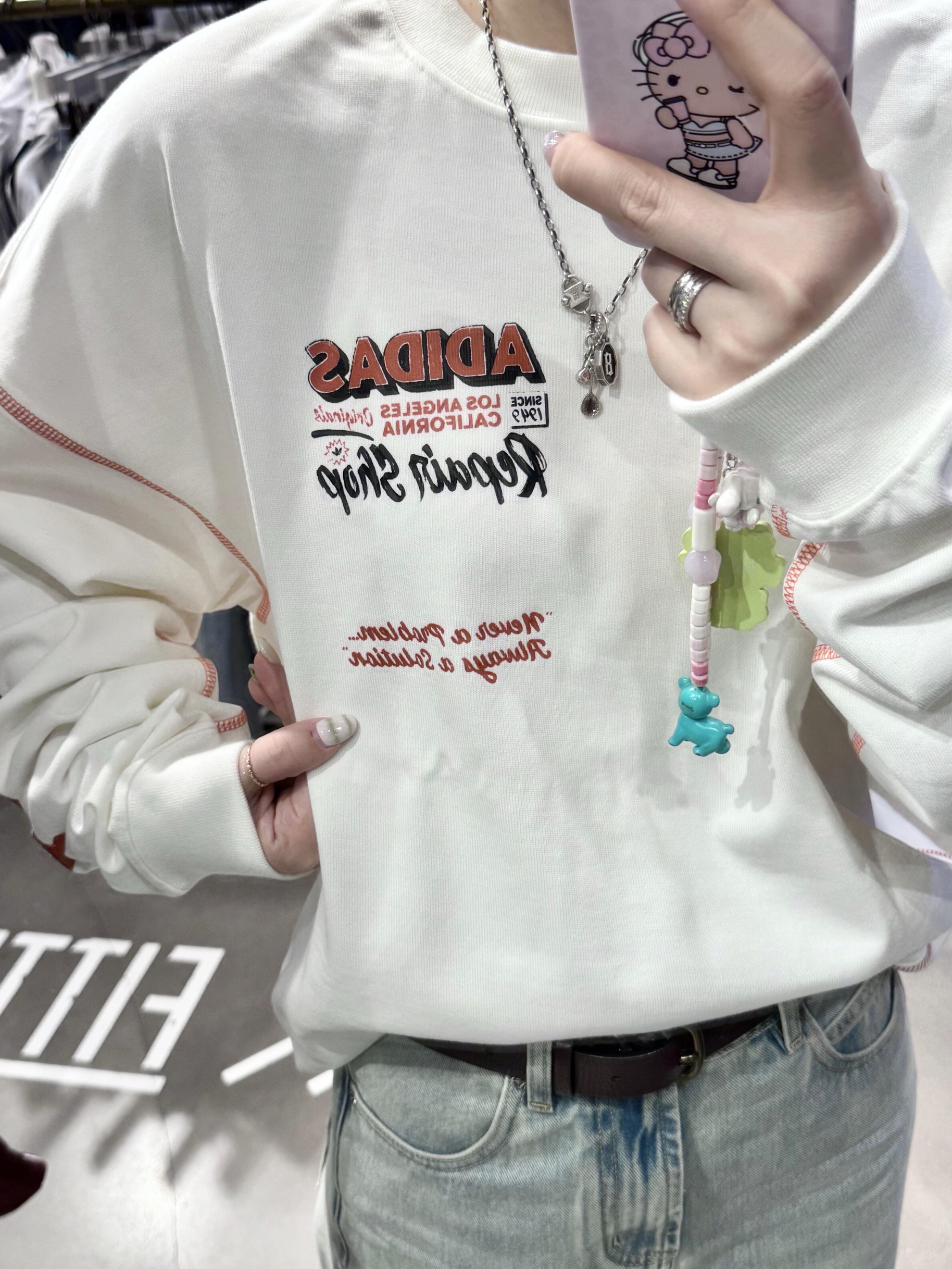 阿迪L.A系列🧡这件复古卫衣再不冲真的要断货! 刚上新的米白色款,温柔又高级, 反转字母印花+多元标语设计, 直接把洛杉矶街头的松弛潮感穿在身上。 袖口与侧边红色线条点睛, 让简约版型多了满满设计巧思, 不浮夸却很有辨识度。 面料软乎乎亲肤透气, 上身舒服还特别显白提气质。 搭配做旧牛仔裤+复古球鞋, 不用费心搭配,随便一套, 就是毫不费力的美式休闲潮人范儿, 闭眼入都不会错!